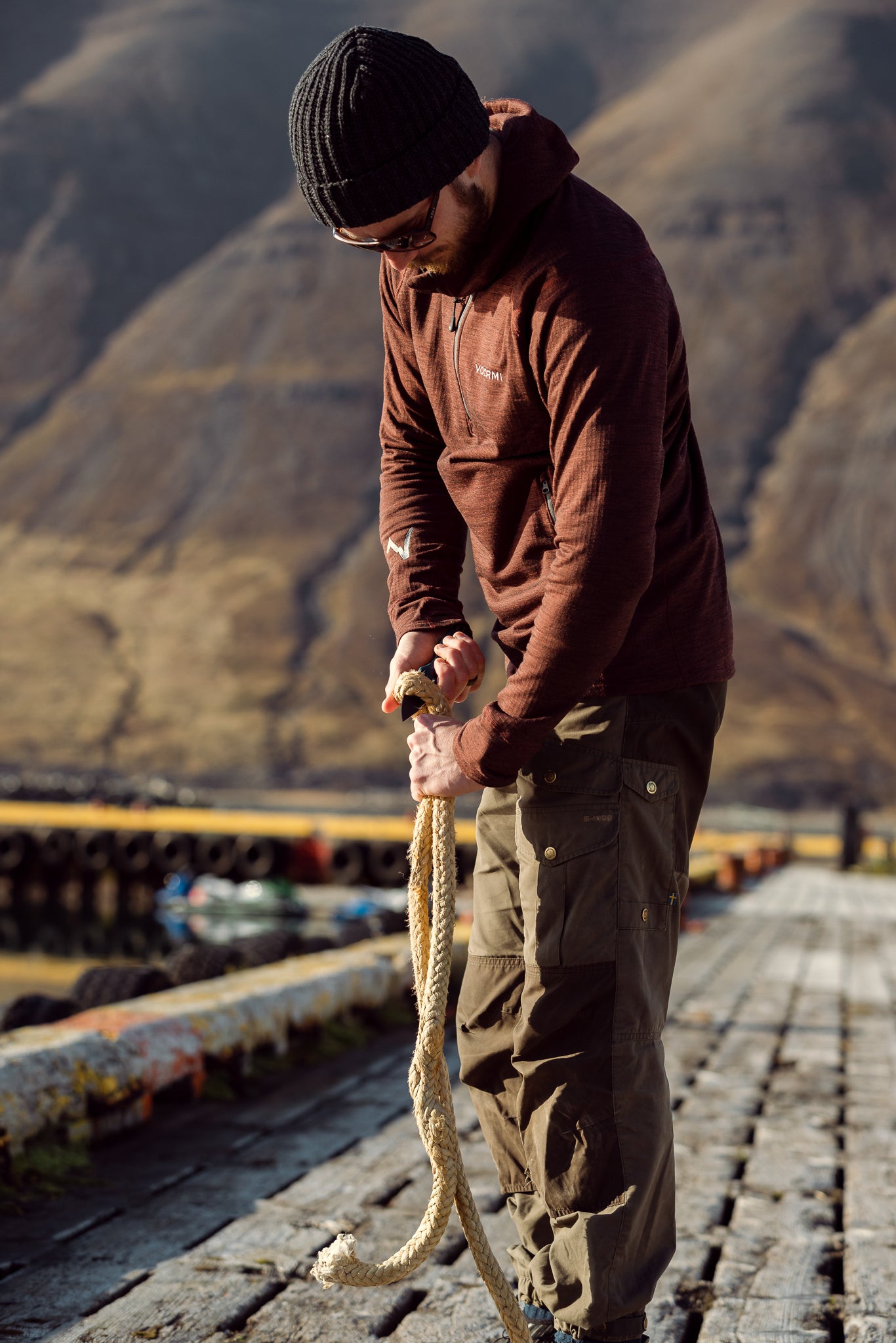 The legendary High-E Hoodie from VOORMI isn't your average sweatshirt. This versatile piece transitions from a breathable midlayer to a weather-protective outer layer, making it a true all-condition companion. Built with innovative SURFACE HARDENED™ Thermal Wool, it keeps you comfortable and dry, while the relaxed fit allows for easy layering.