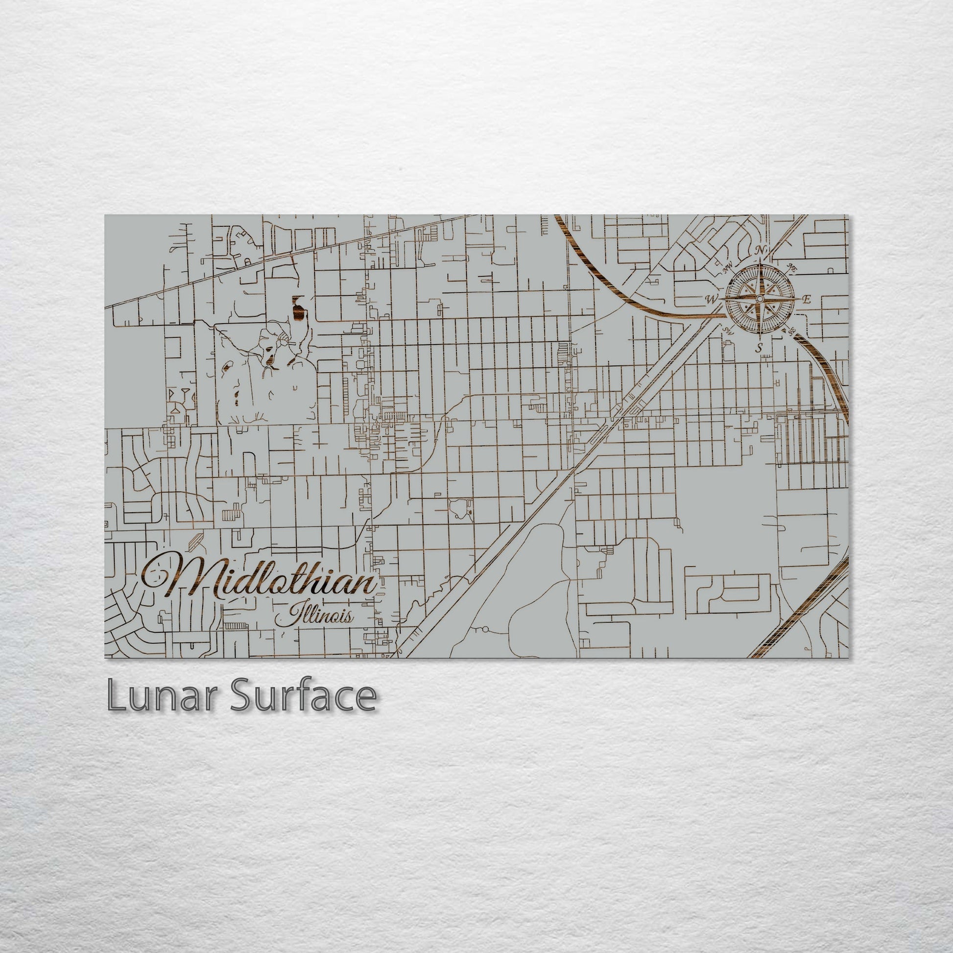 This is a street map of Midlothian, IL designed by Fire & Pine artists.