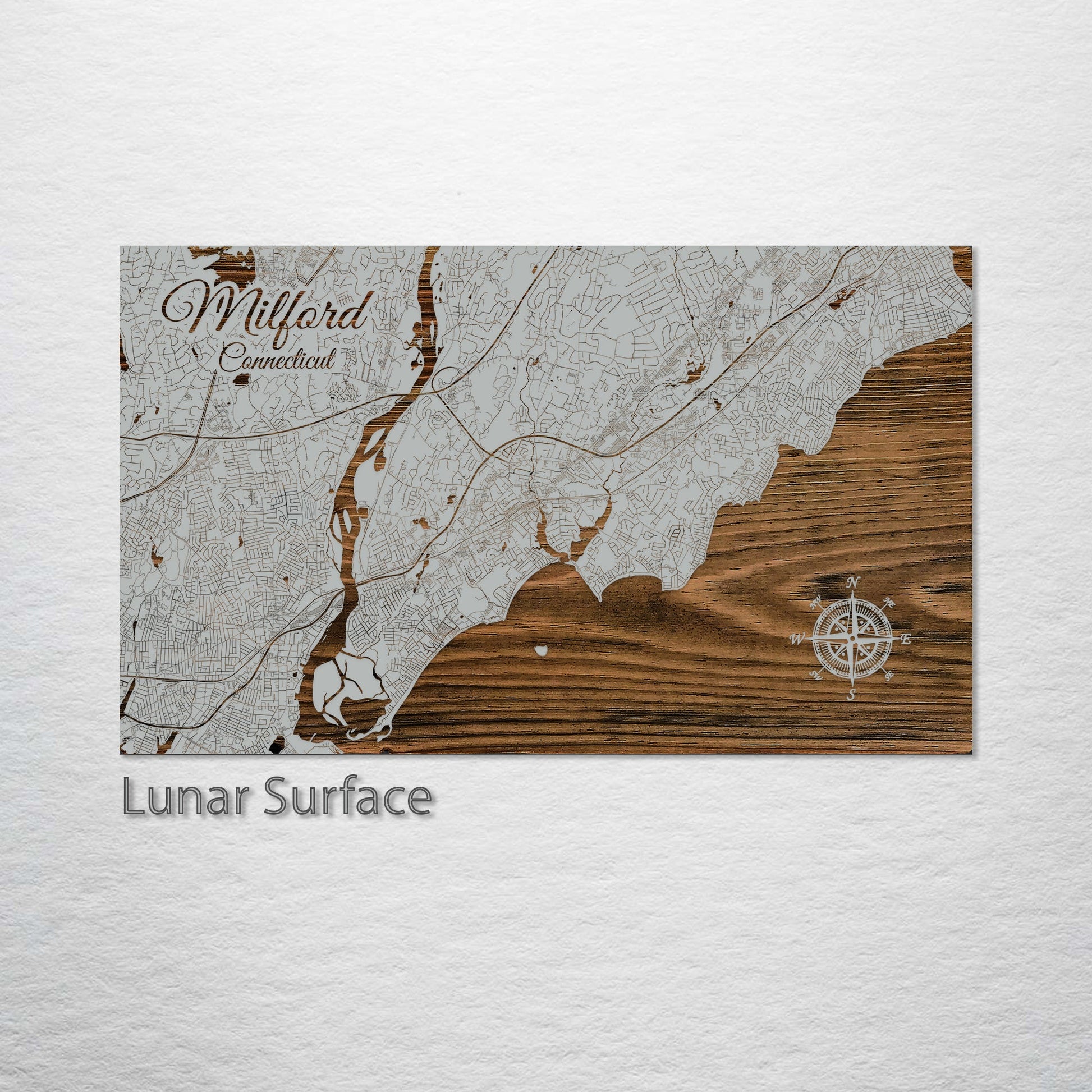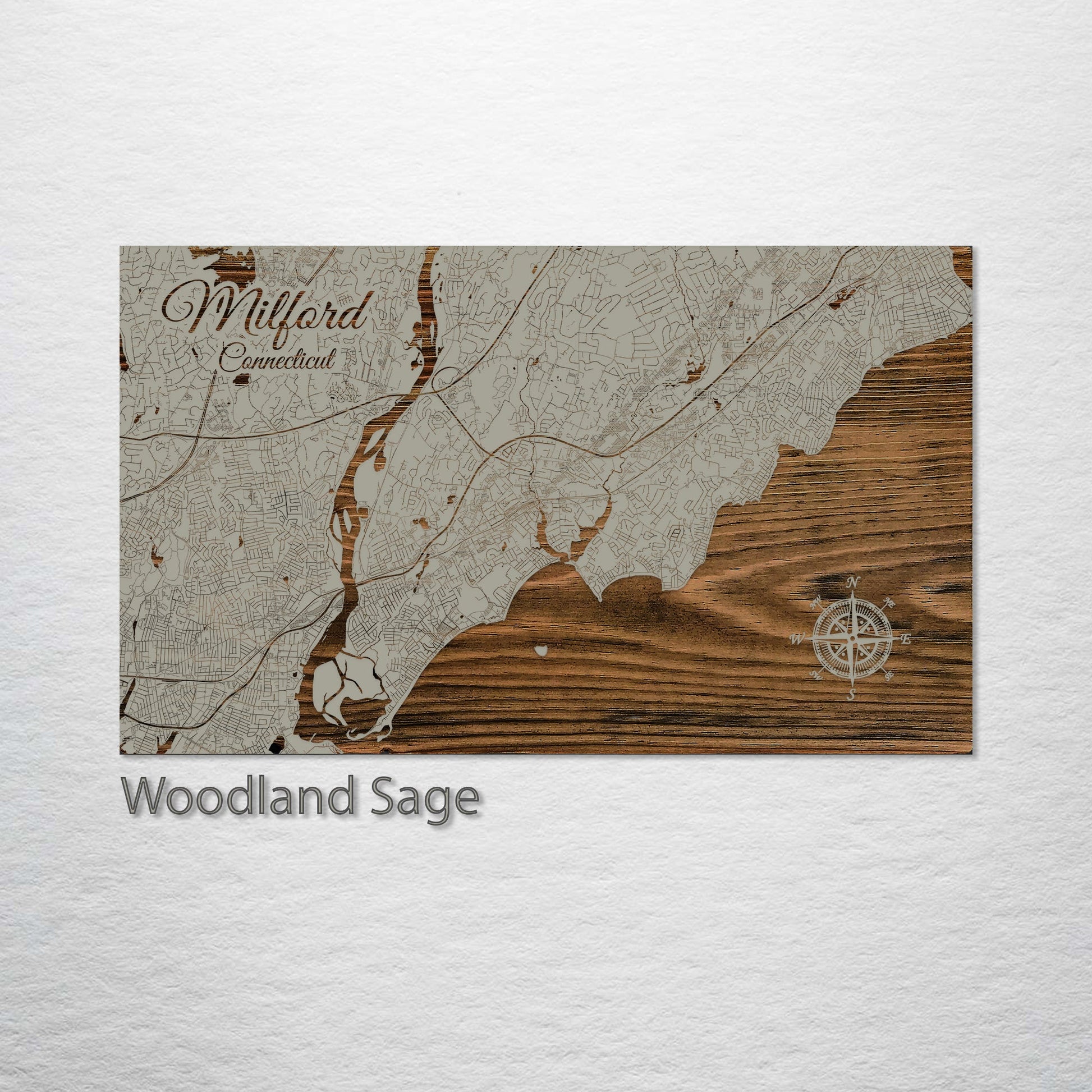 This is a street map of Milford, CT designed by Fire & Pine artists.