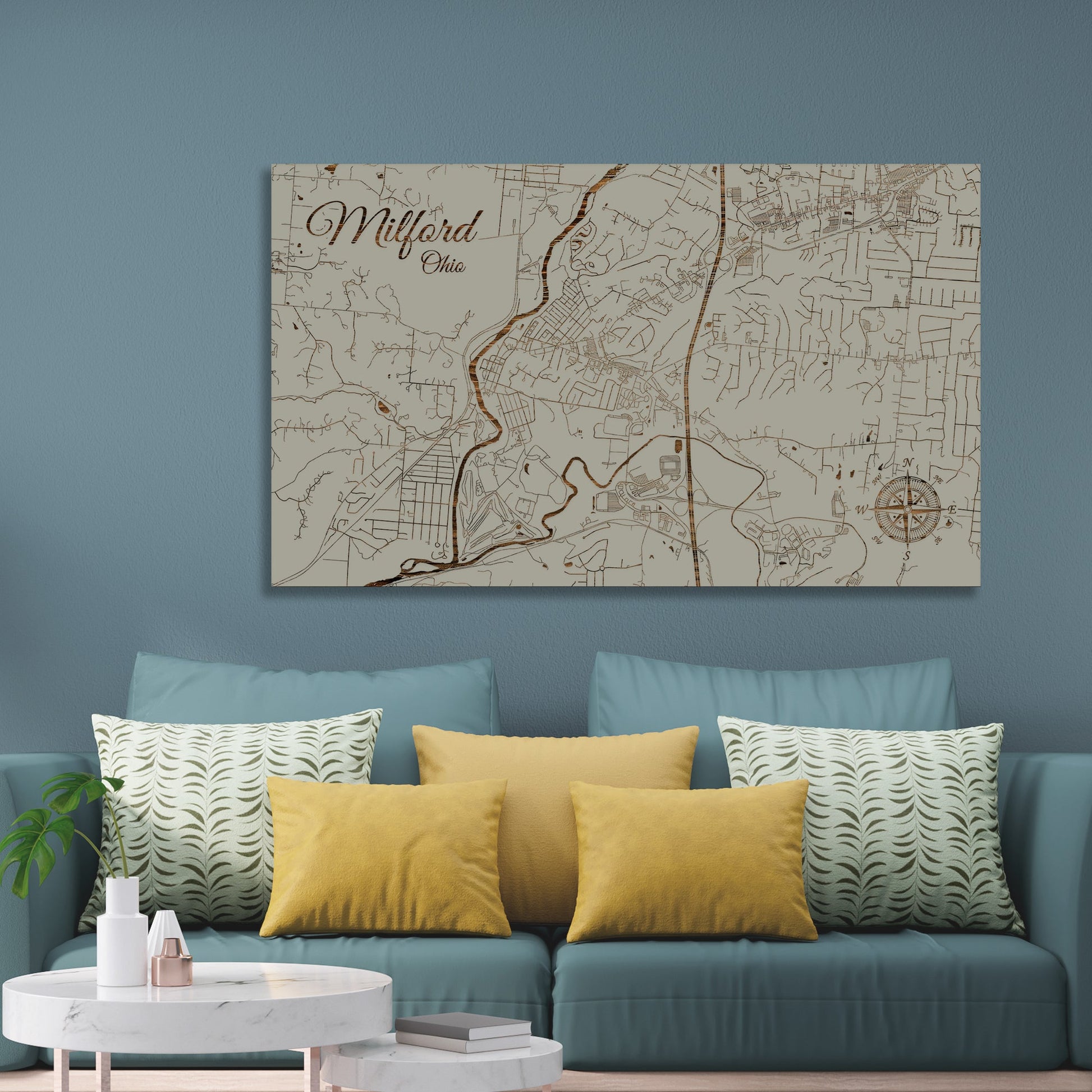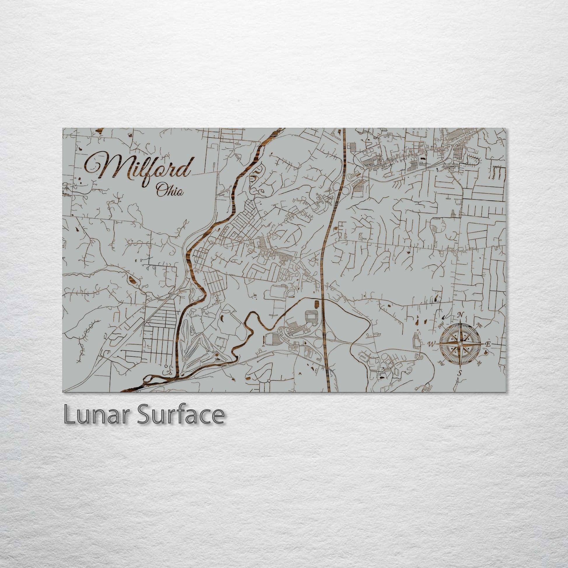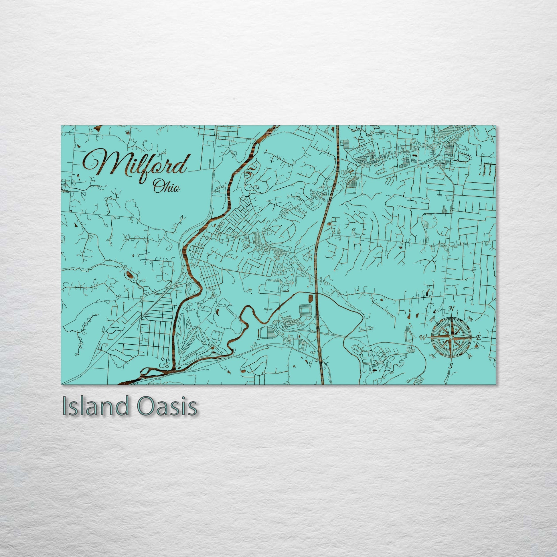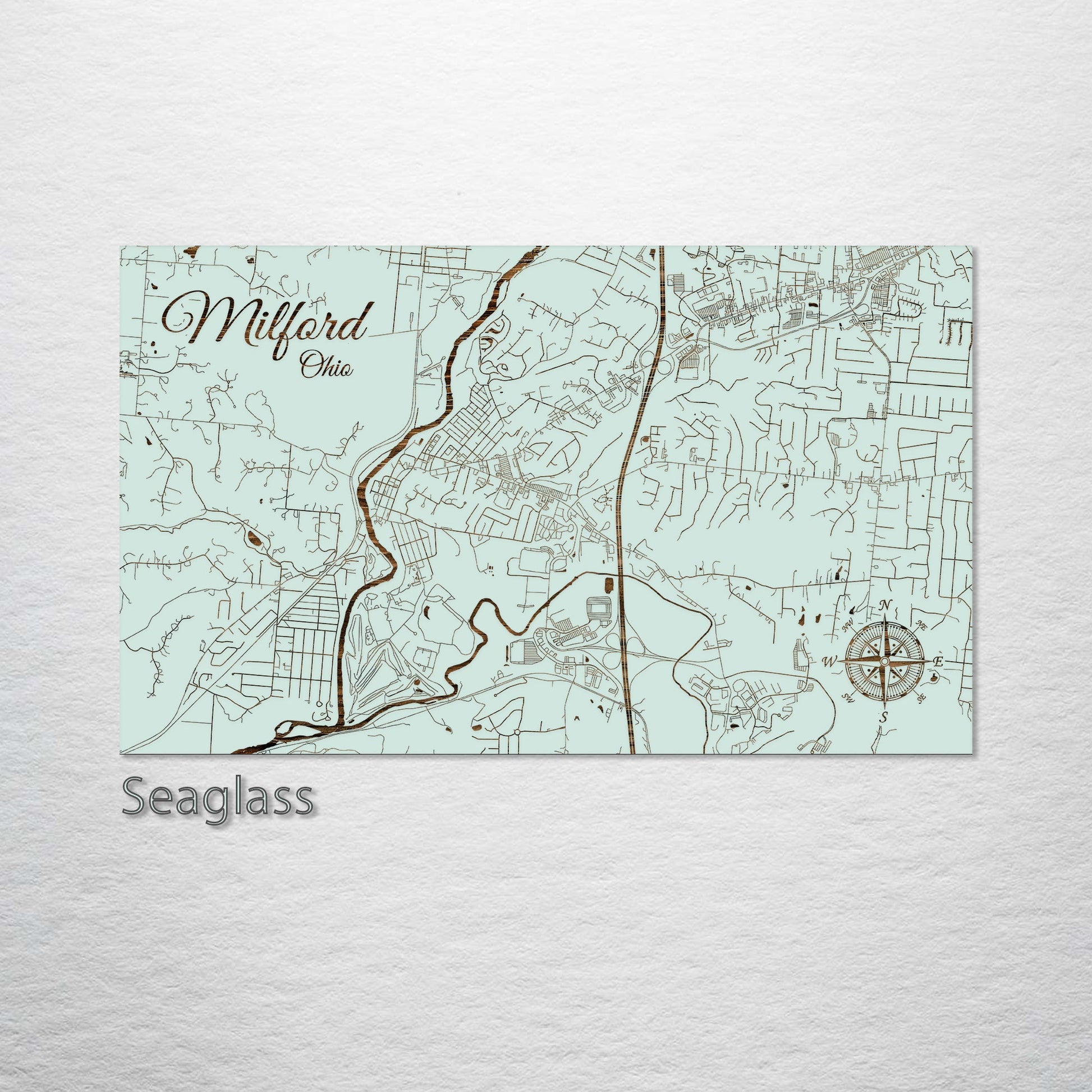 This is a street map of Milford, OH designed by Fire & Pine artists.