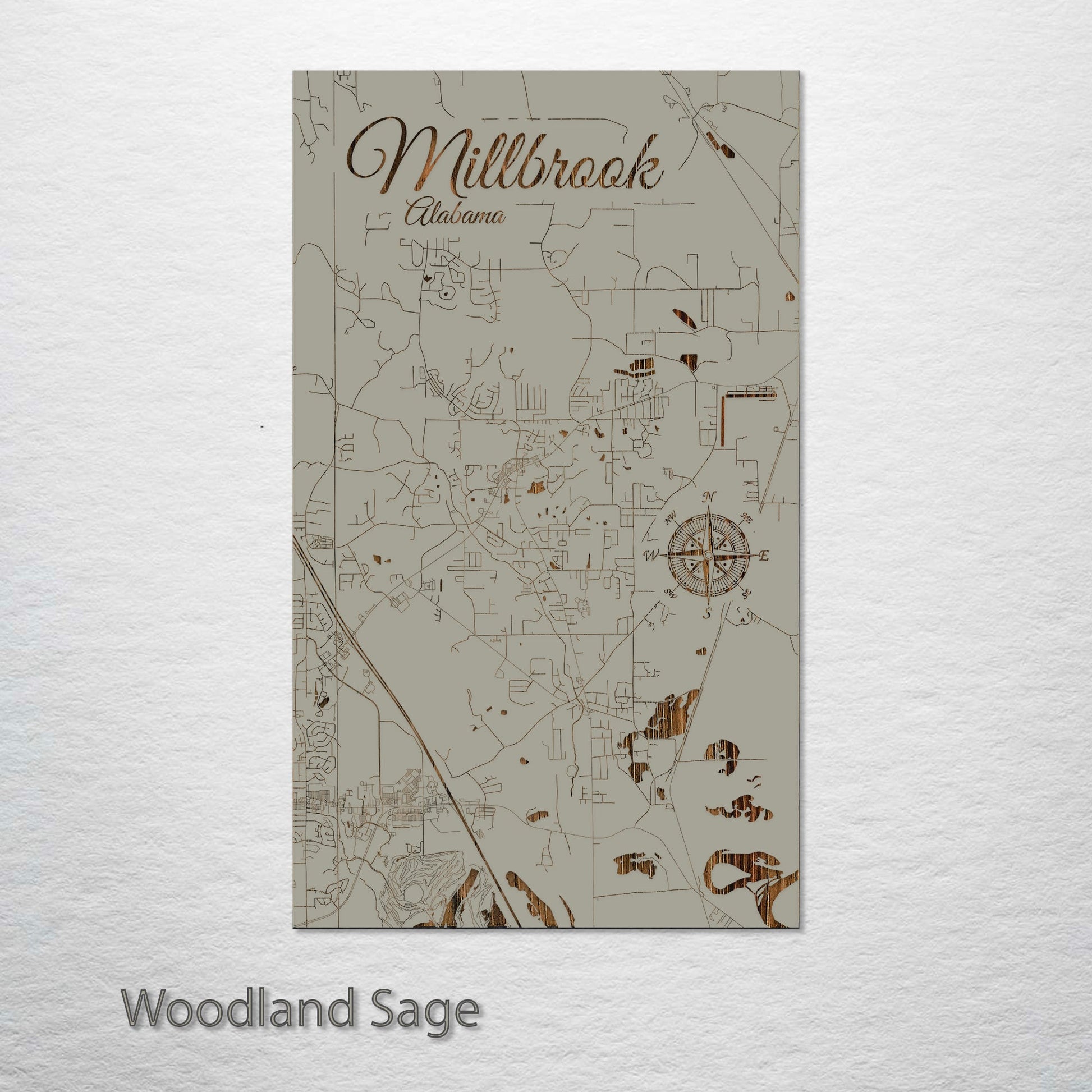 This is a street map of Millbrook, AL designed by Fire & Pine artists.