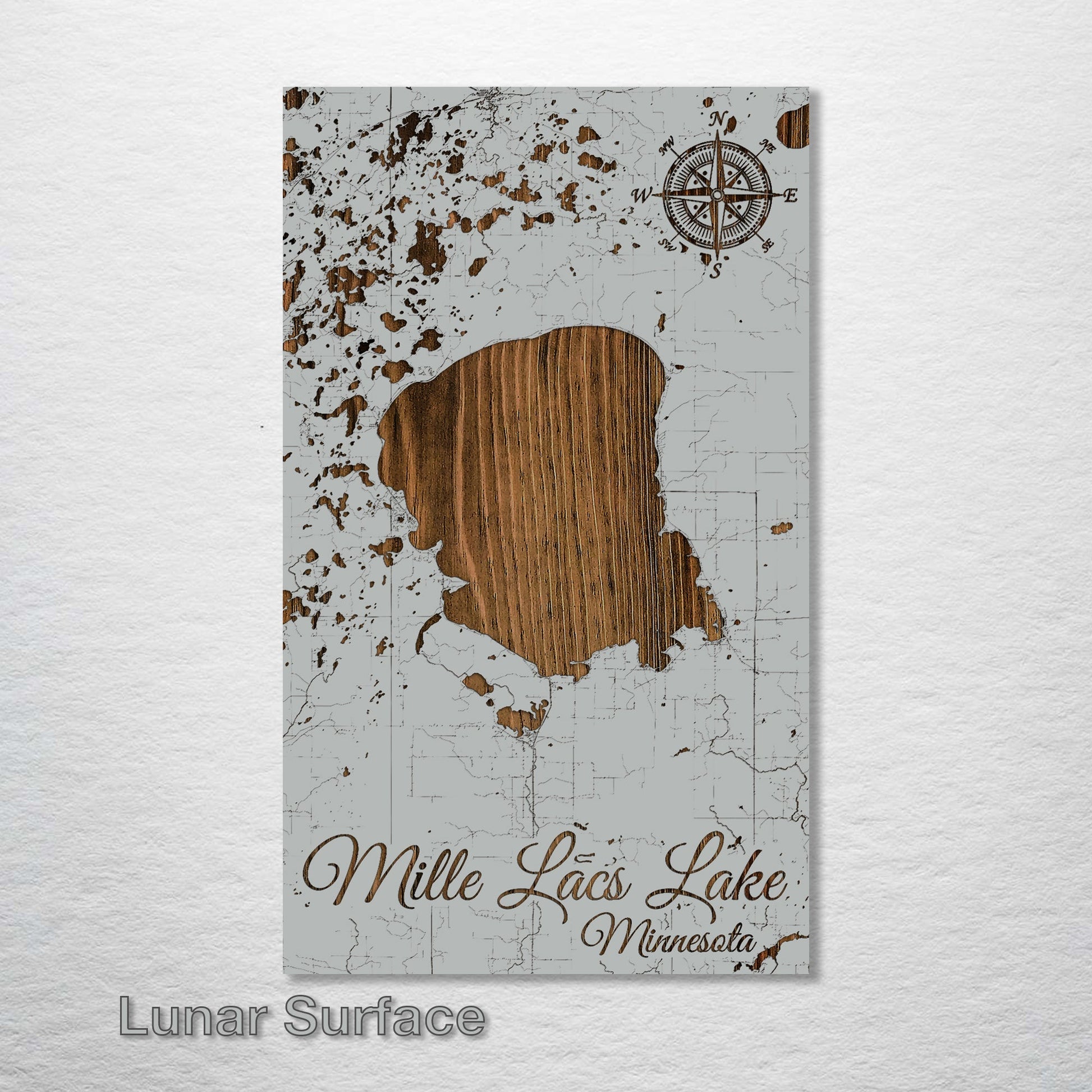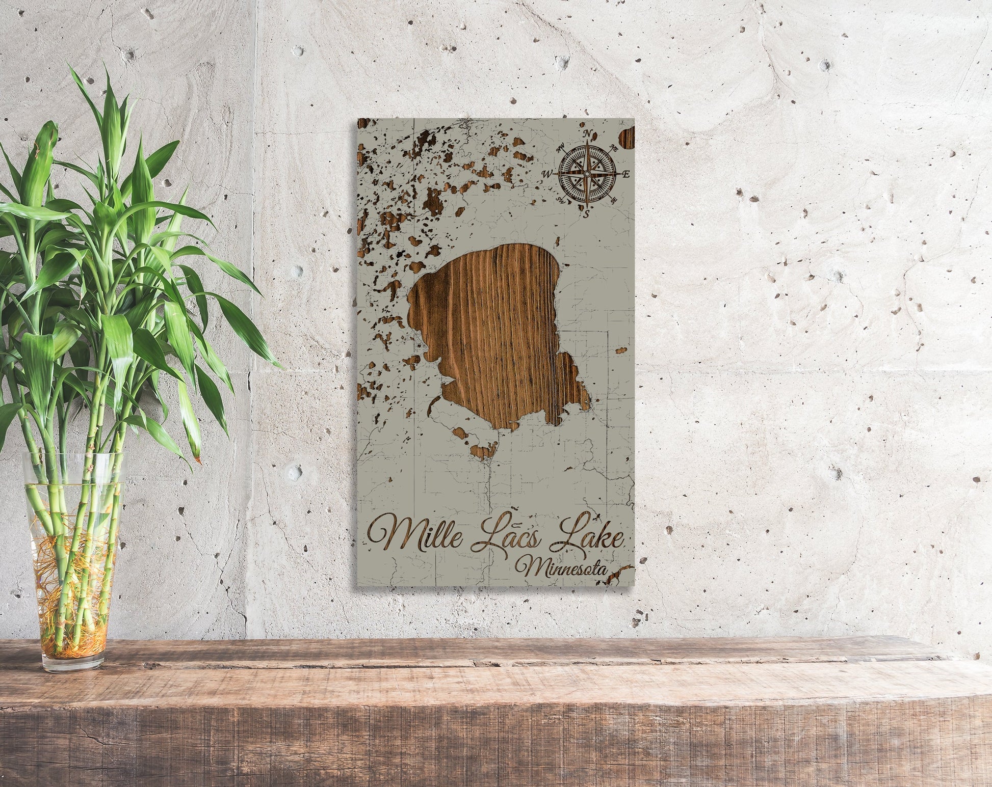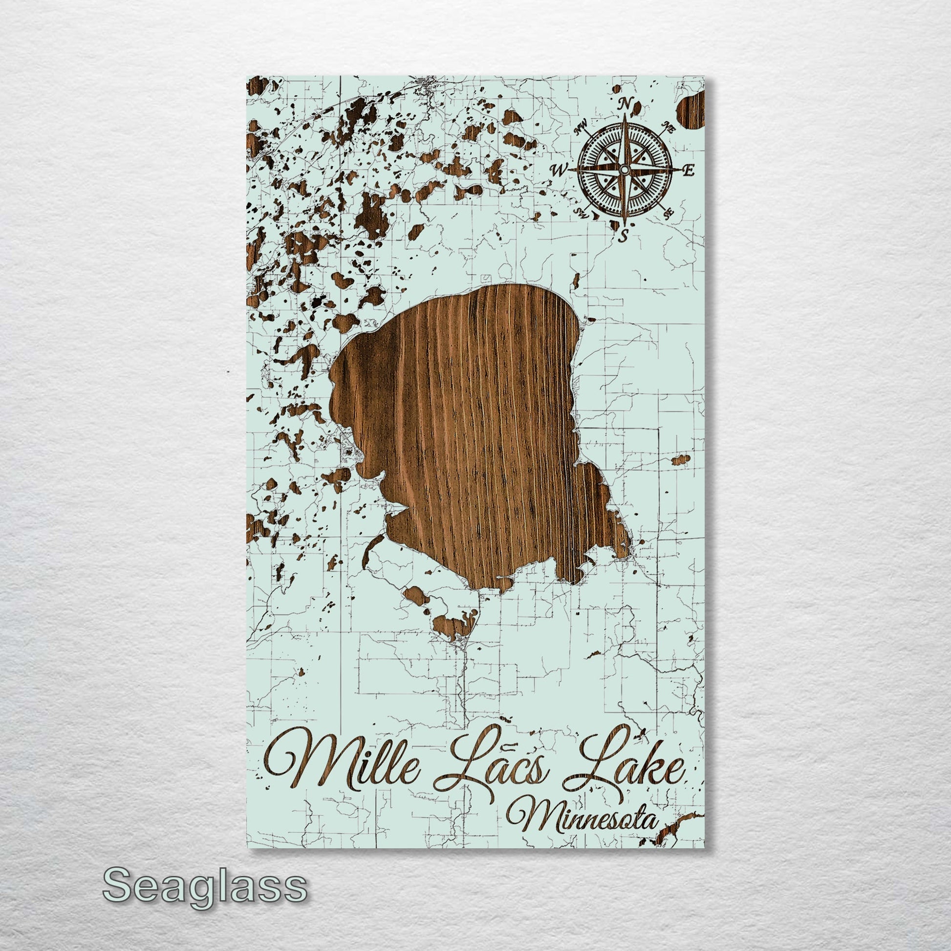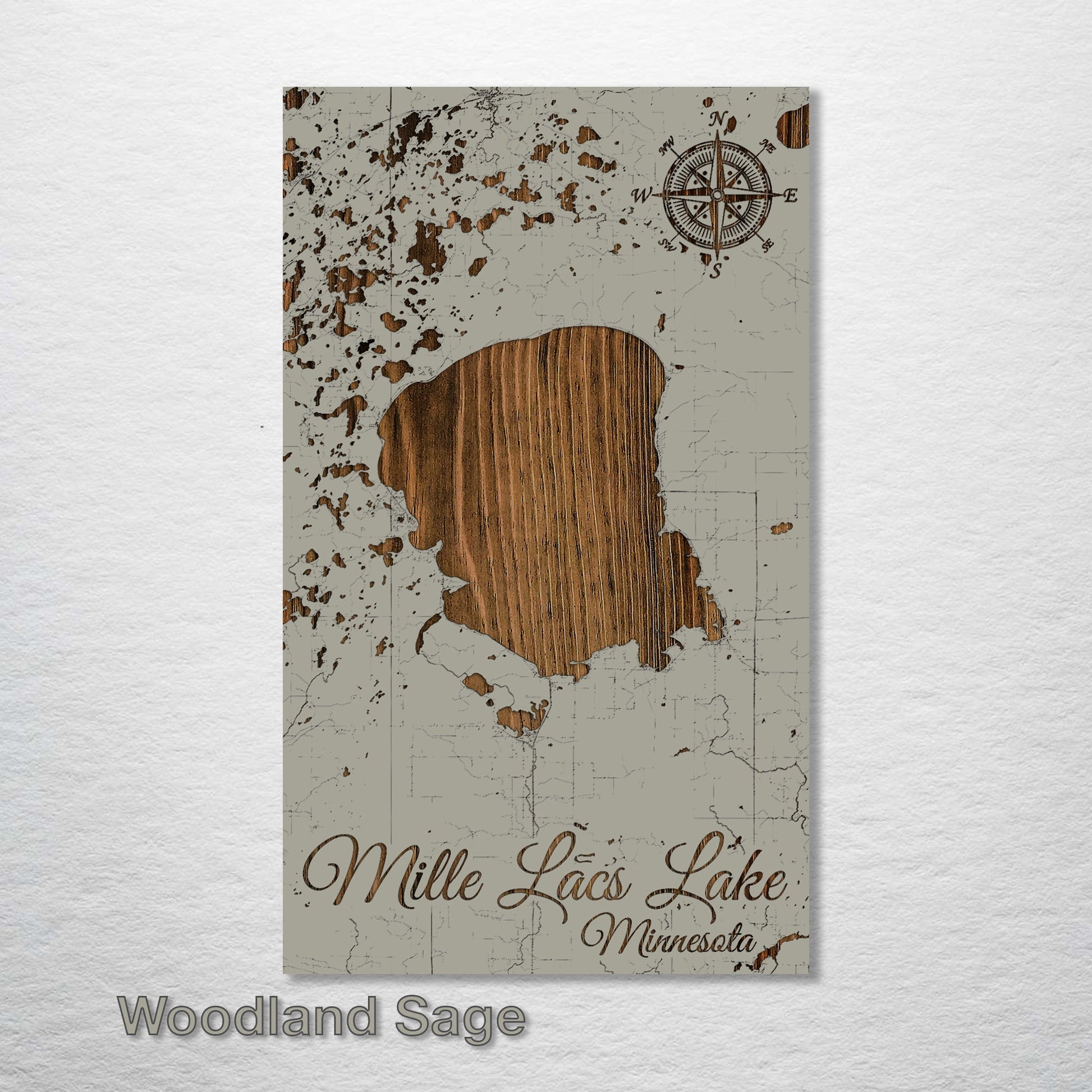 This is a map showing Mille Lacs Lake in Minnesota designed by Fire & Pine artists.