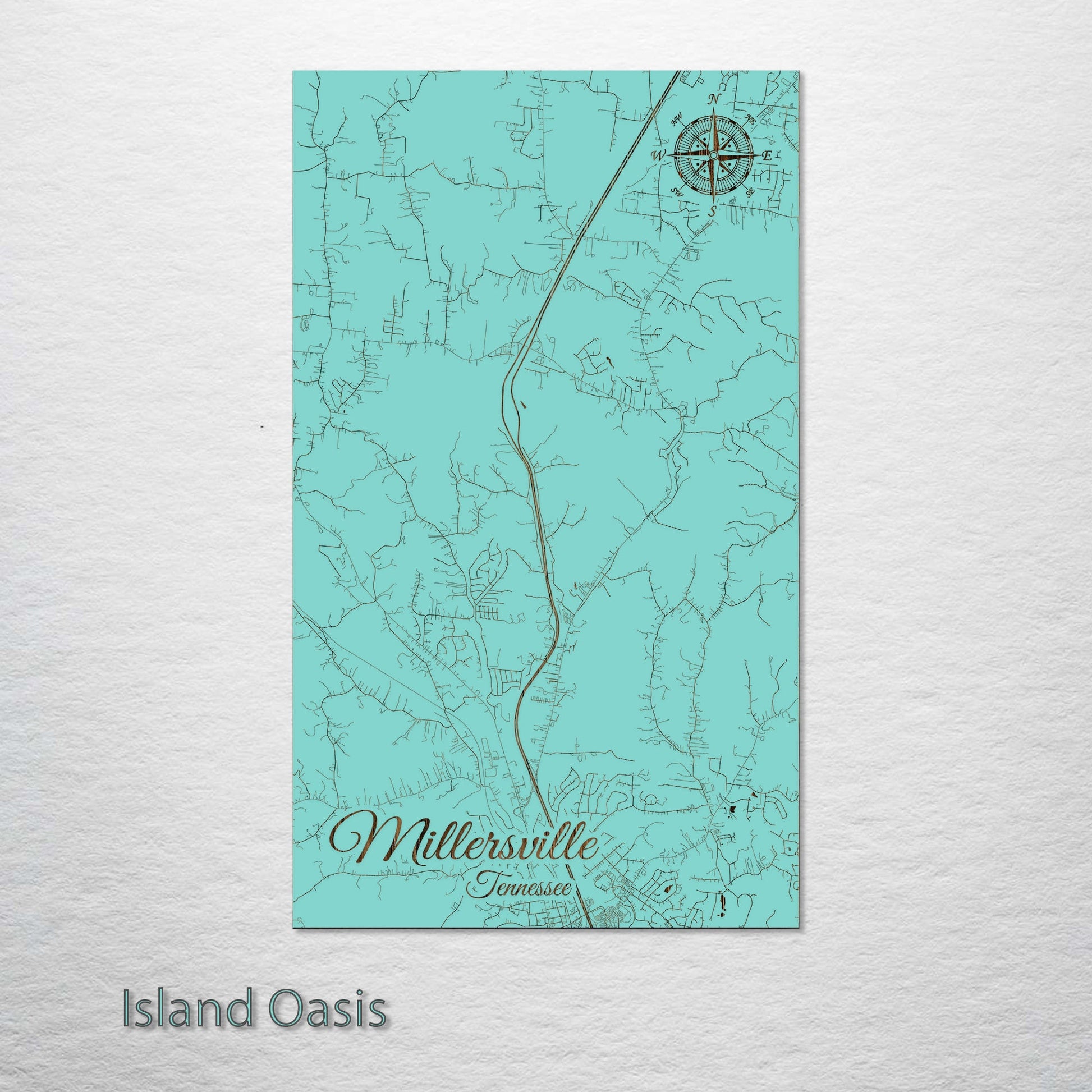 This is a street map of Millersville, TN designed by Fire & Pine artists.