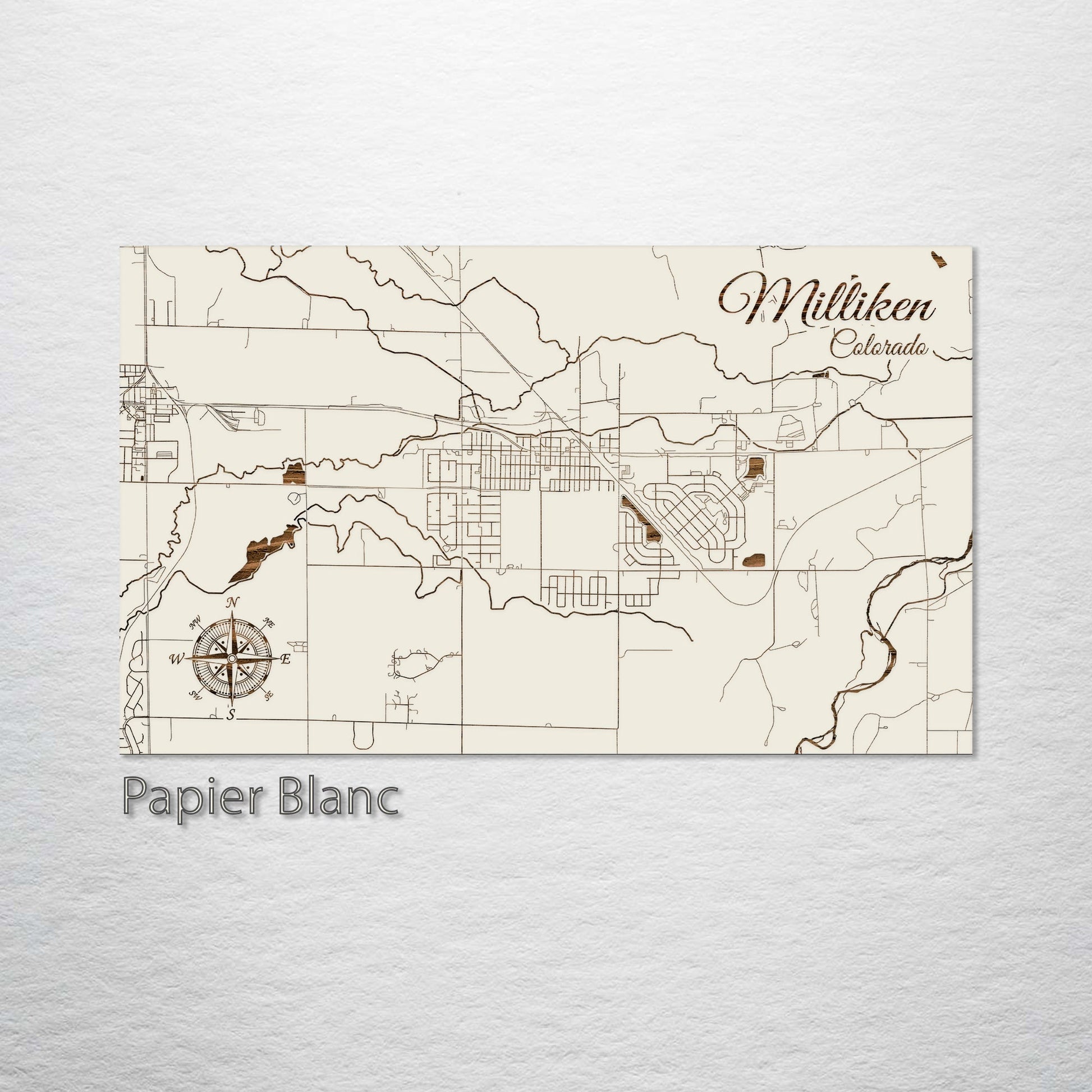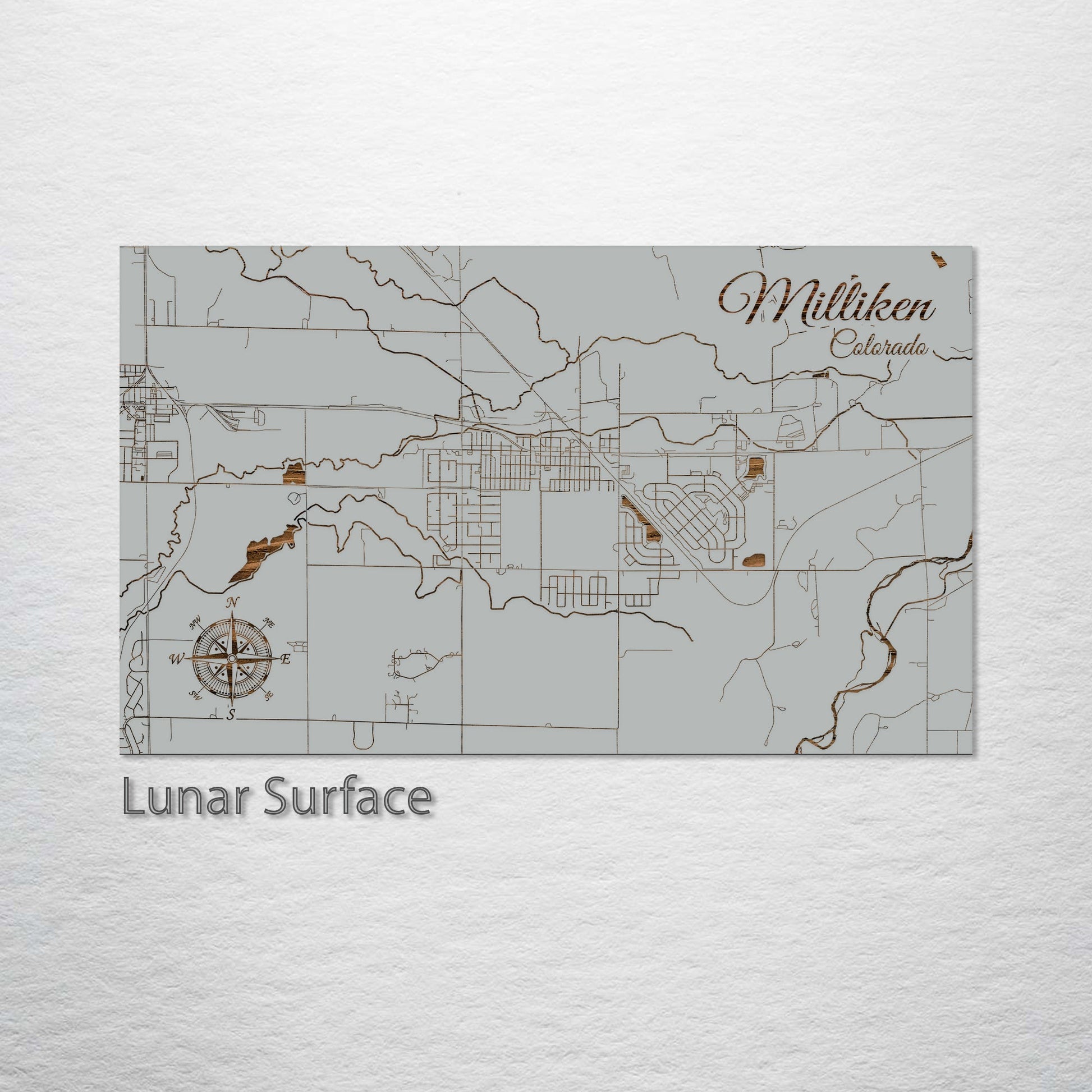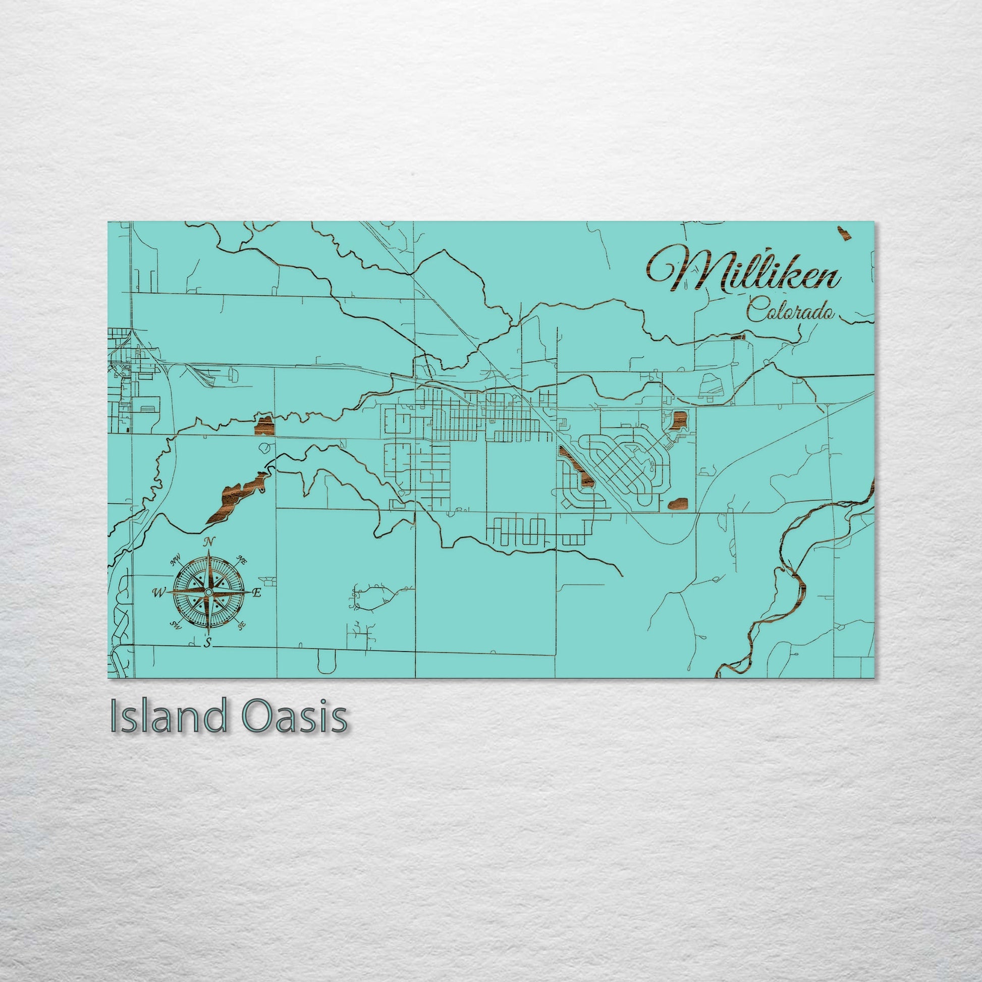 This is a street map of Milliken, CO designed by Fire & Pine artists.