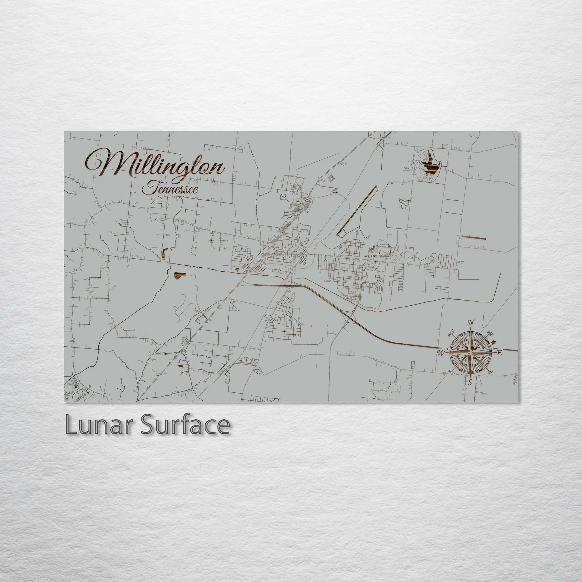 This is a street map of Millington, TN designed by Fire & Pine artists.