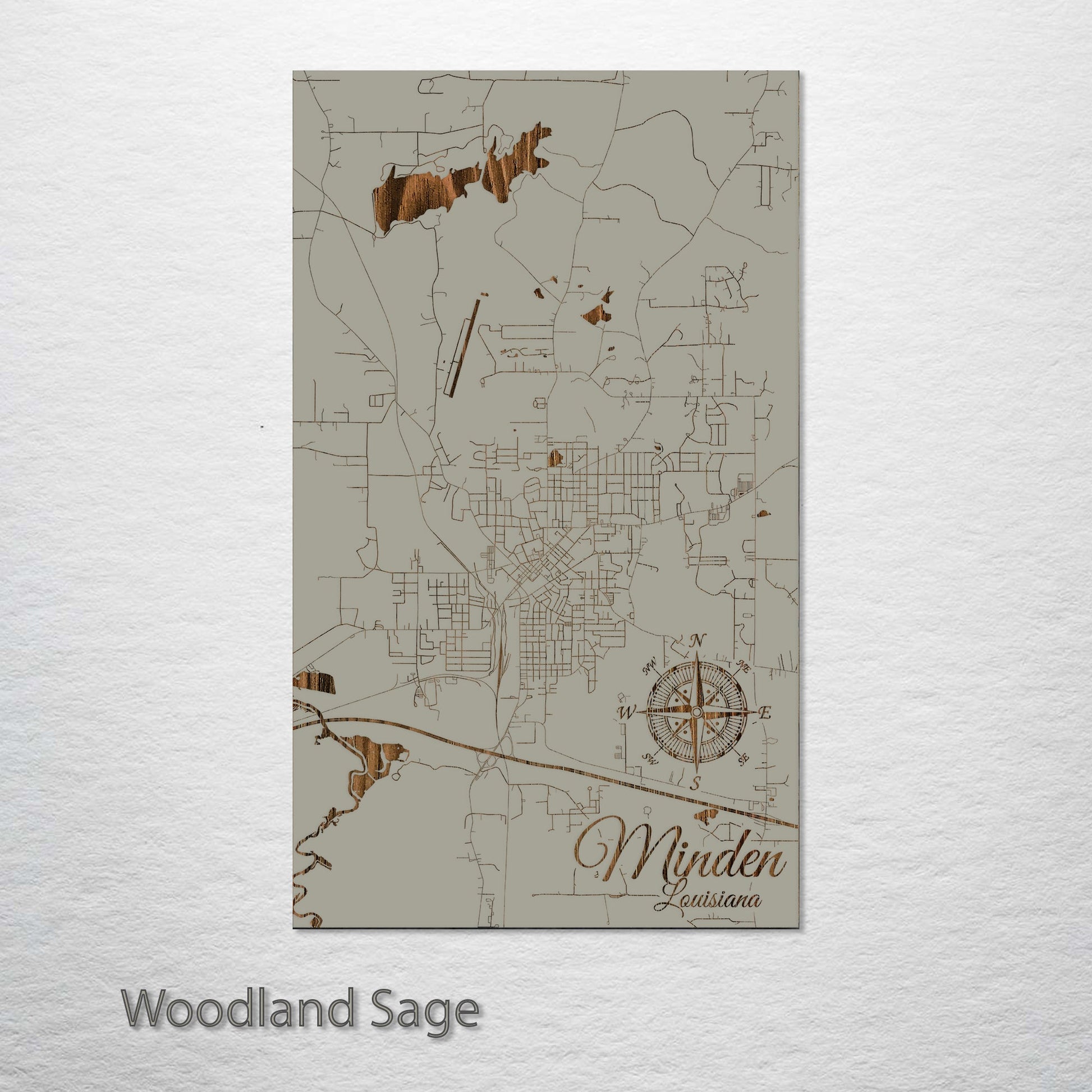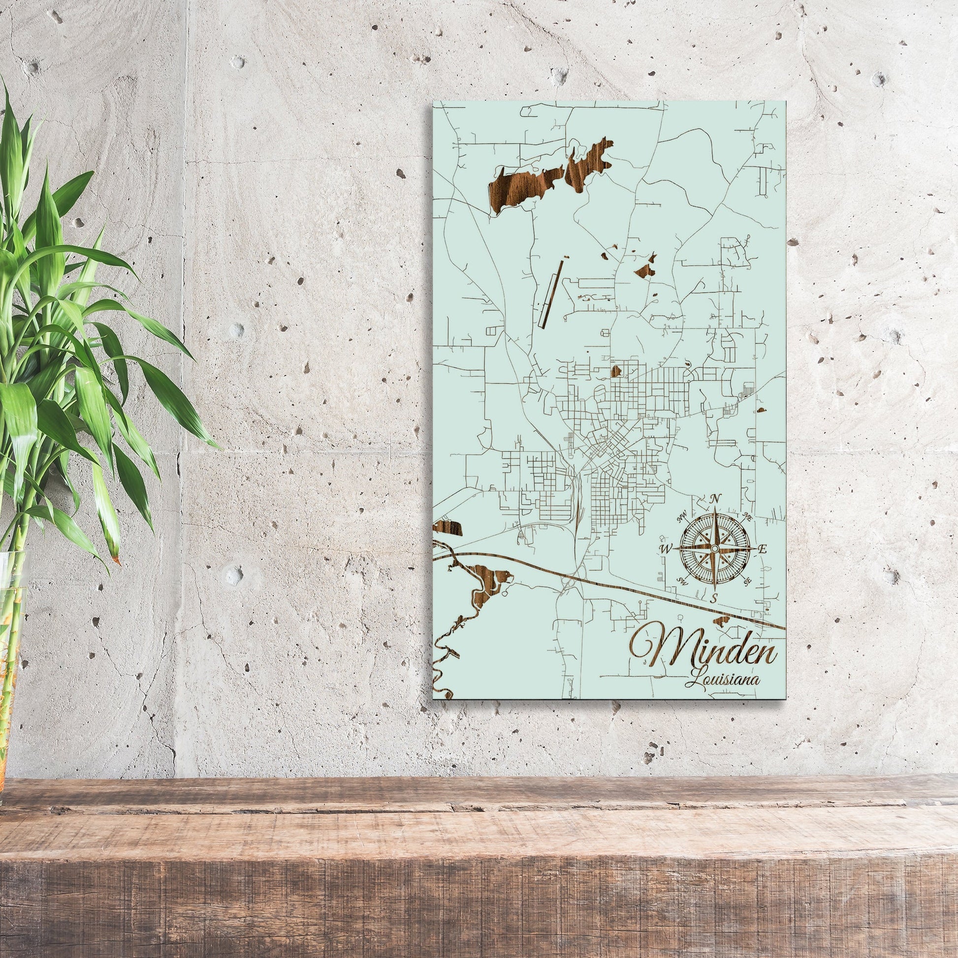 This is a street map of Minden, LA designed by Fire & Pine artists.