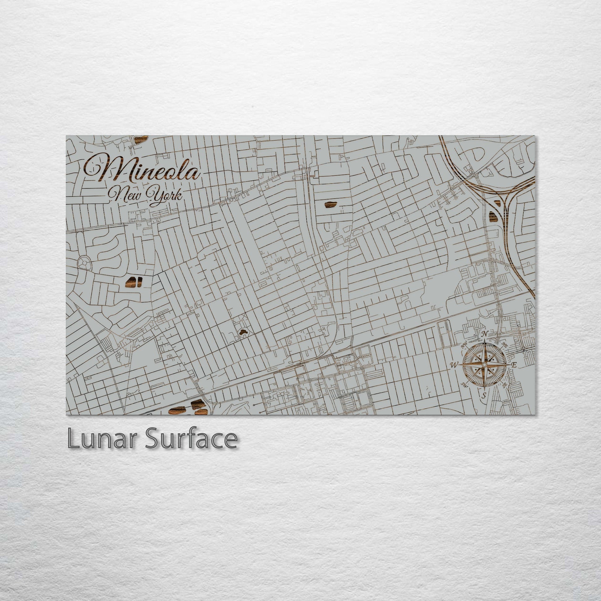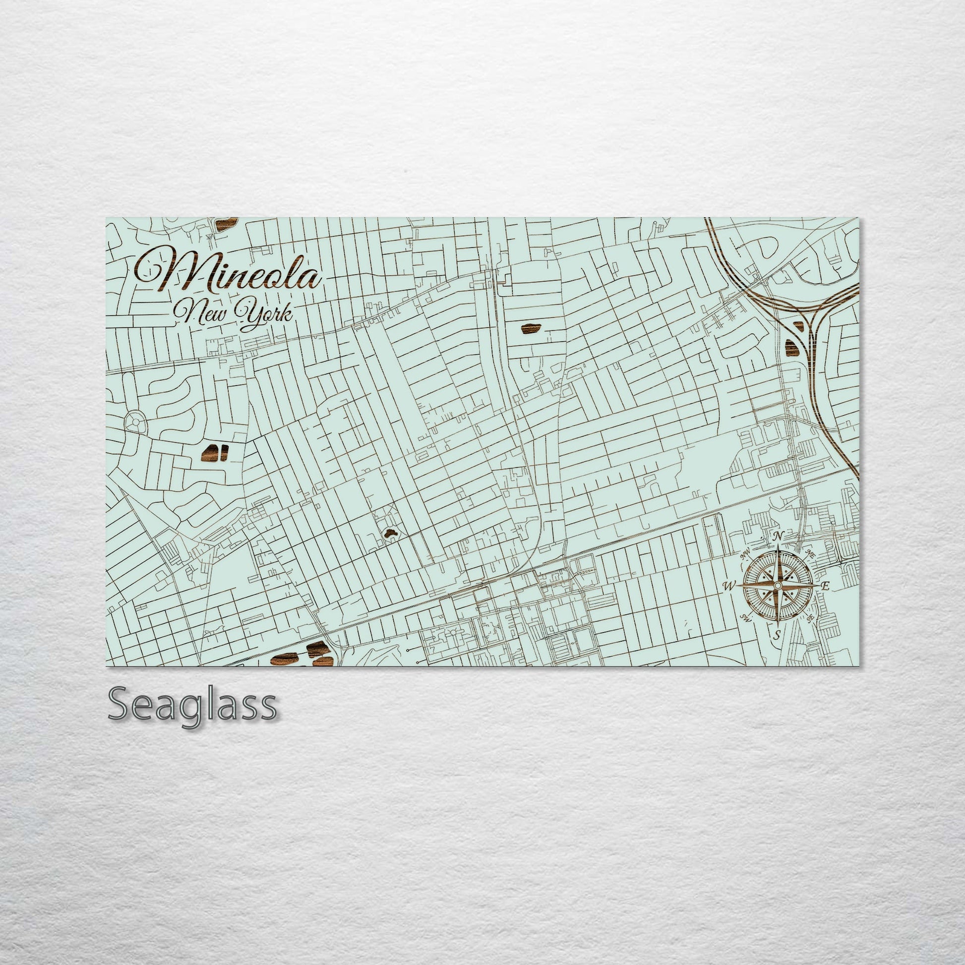 This is a street map of Mineola, NY designed by Fire & Pine artists.