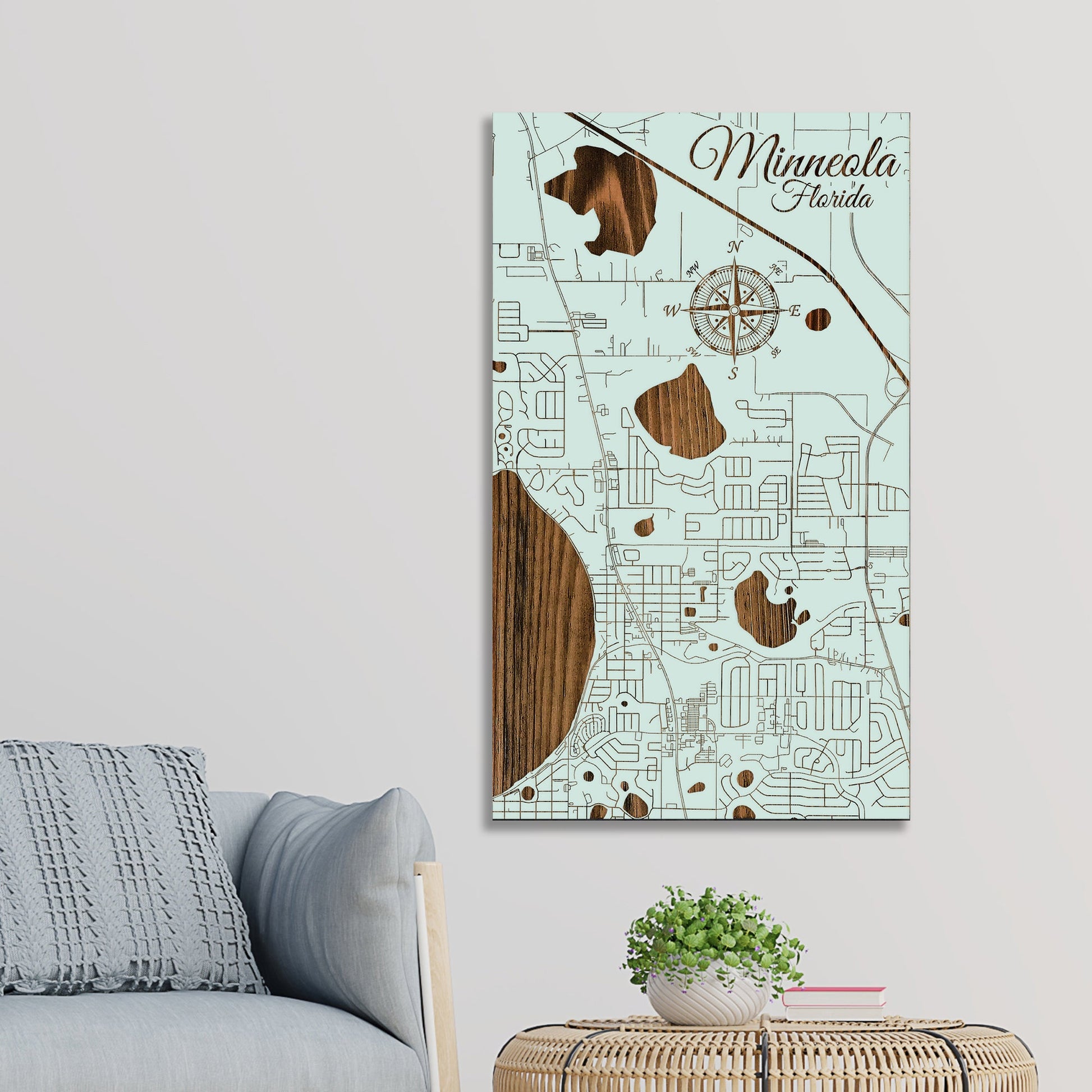 PROUDLY AMERICAN-MADE: Handcrafted with meticulous care in the United States, this Minneola street map is a testament to the exceptional skill of American artisans. It stands shoulder to shoulder with other high-end decorative pieces in terms of sophistication and lasting appeal, exemplifying the superiority of American-made products.