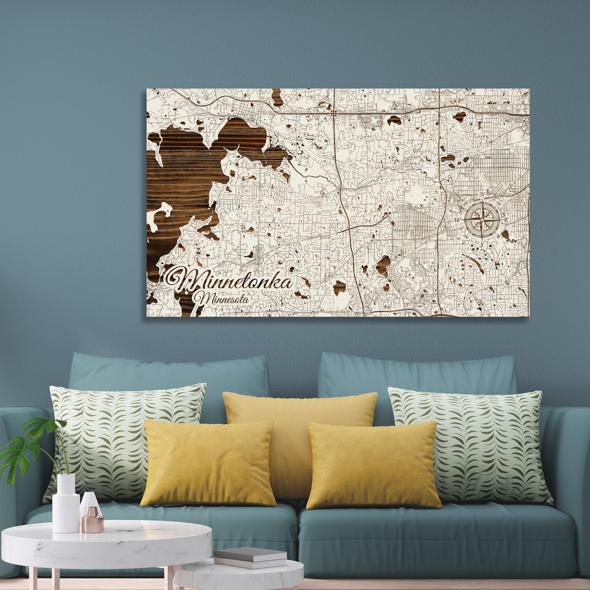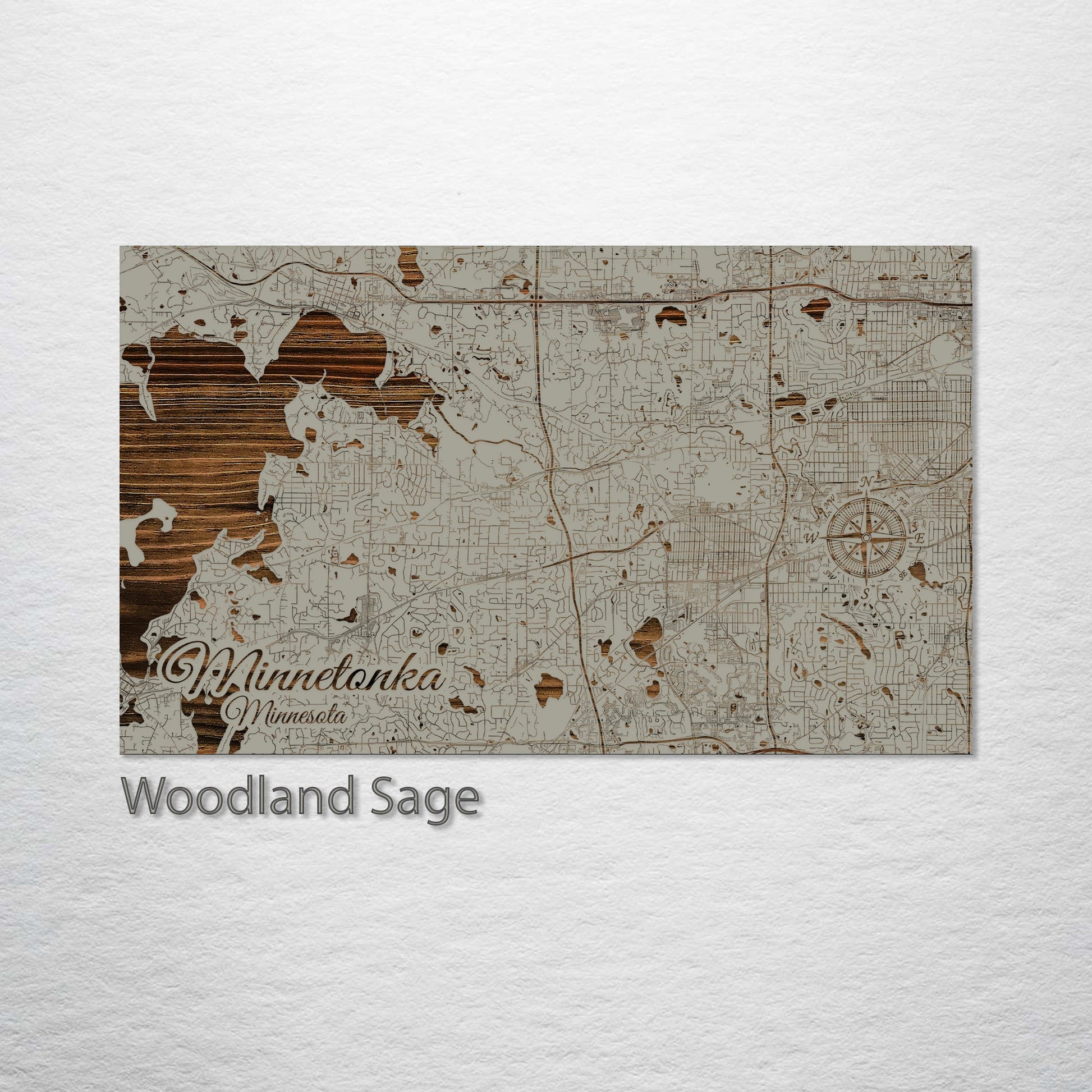 This is a street map of Minnetonka, MN designed by Fire & Pine artists.