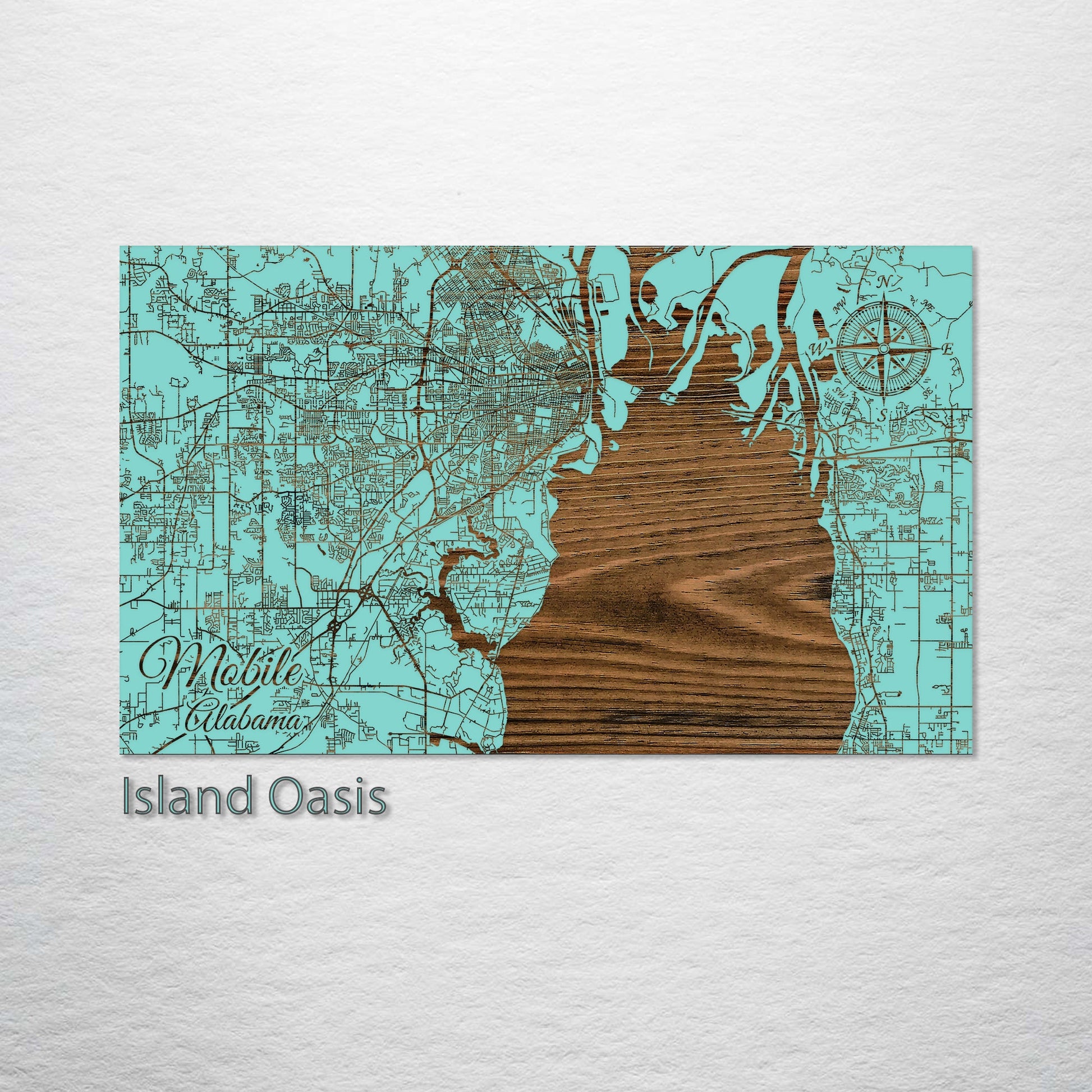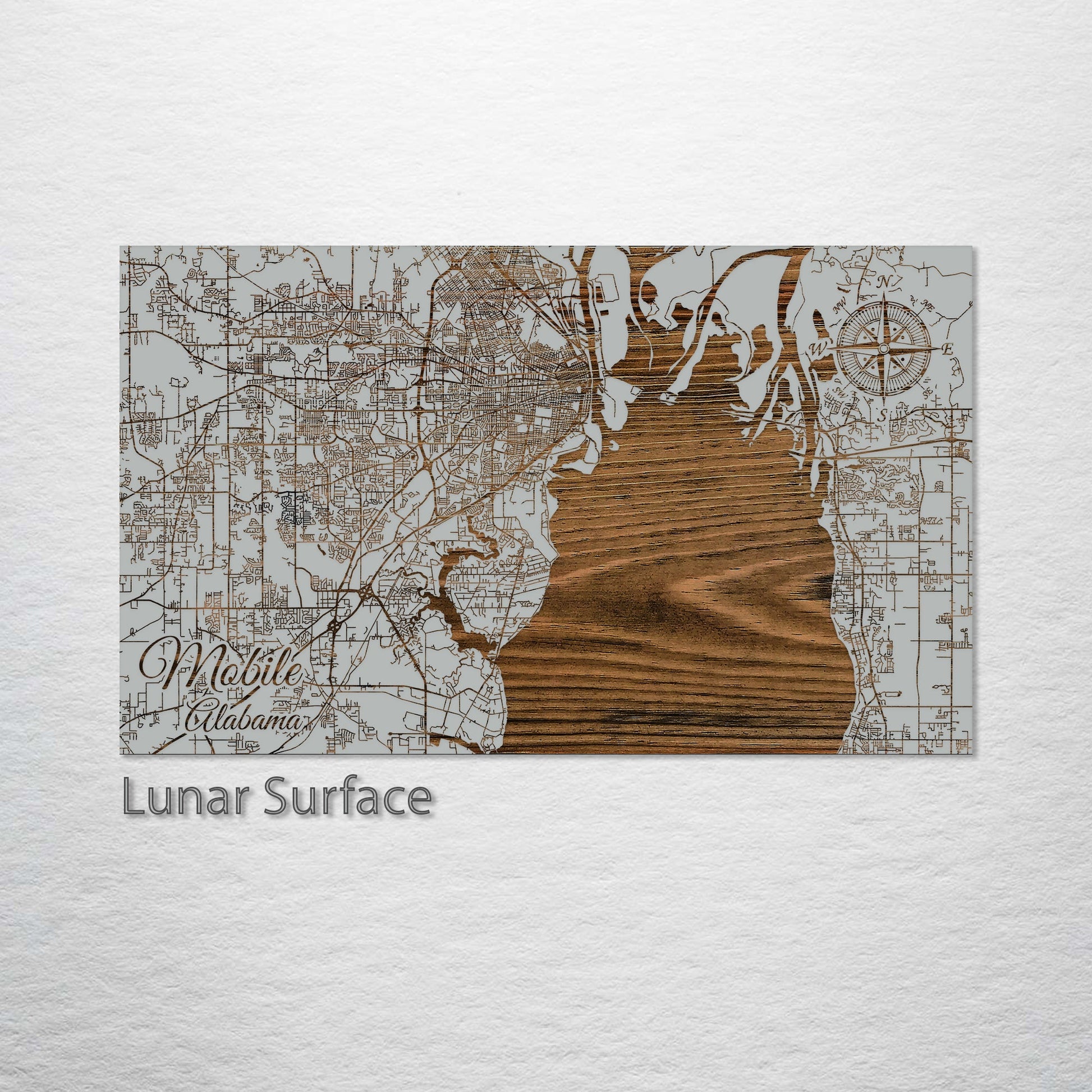 This wood-engraved map of Mobile, Alabama, is a must-have for anyone who cherishes the historic charm and vibrant streets of this Southern city. Painstakingly crafted from the finest pine wood, the map showcases the intricate street patterns of Mobile, making it a standout piece of art.