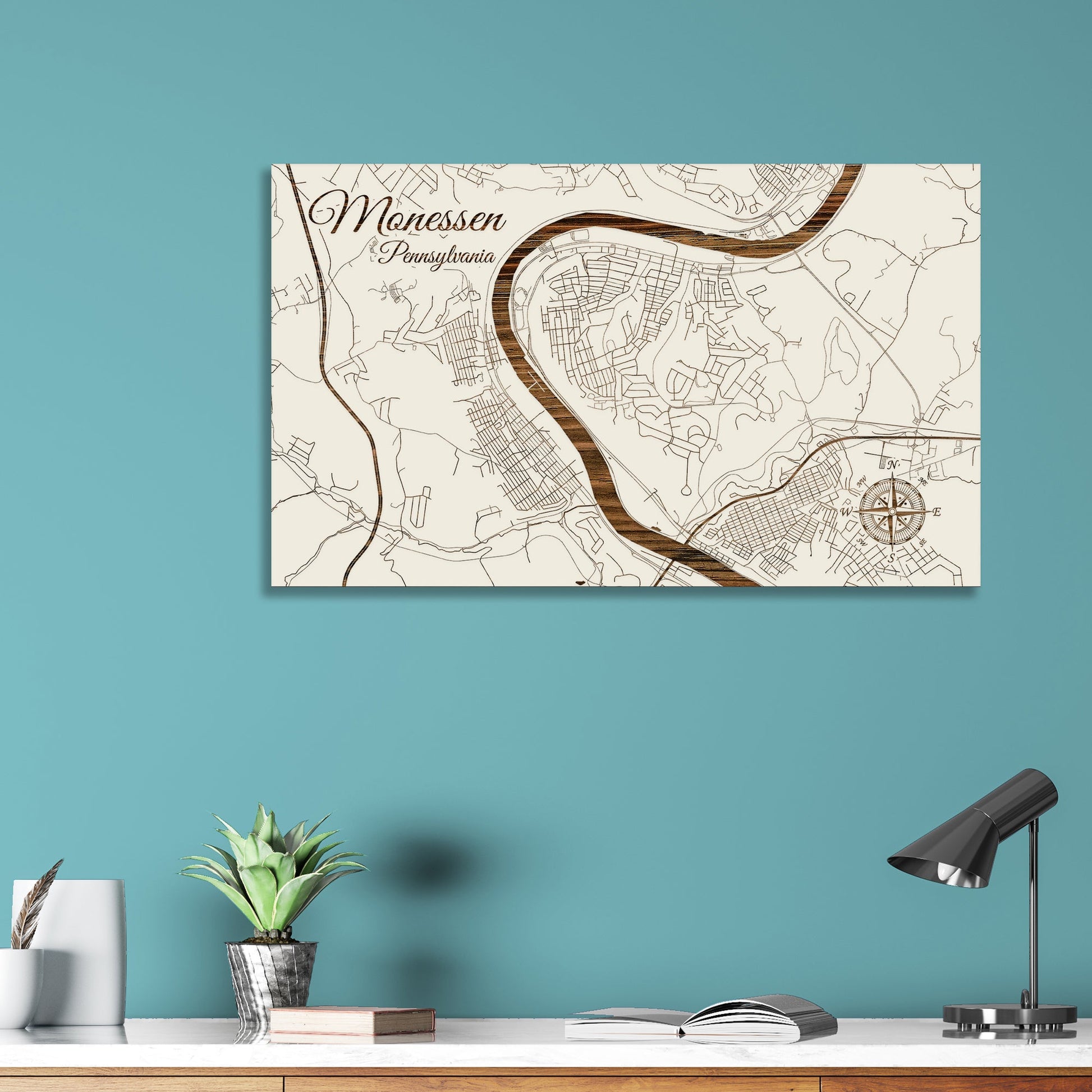 This is a street map of Monessen, PA designed by Fire & Pine artists.