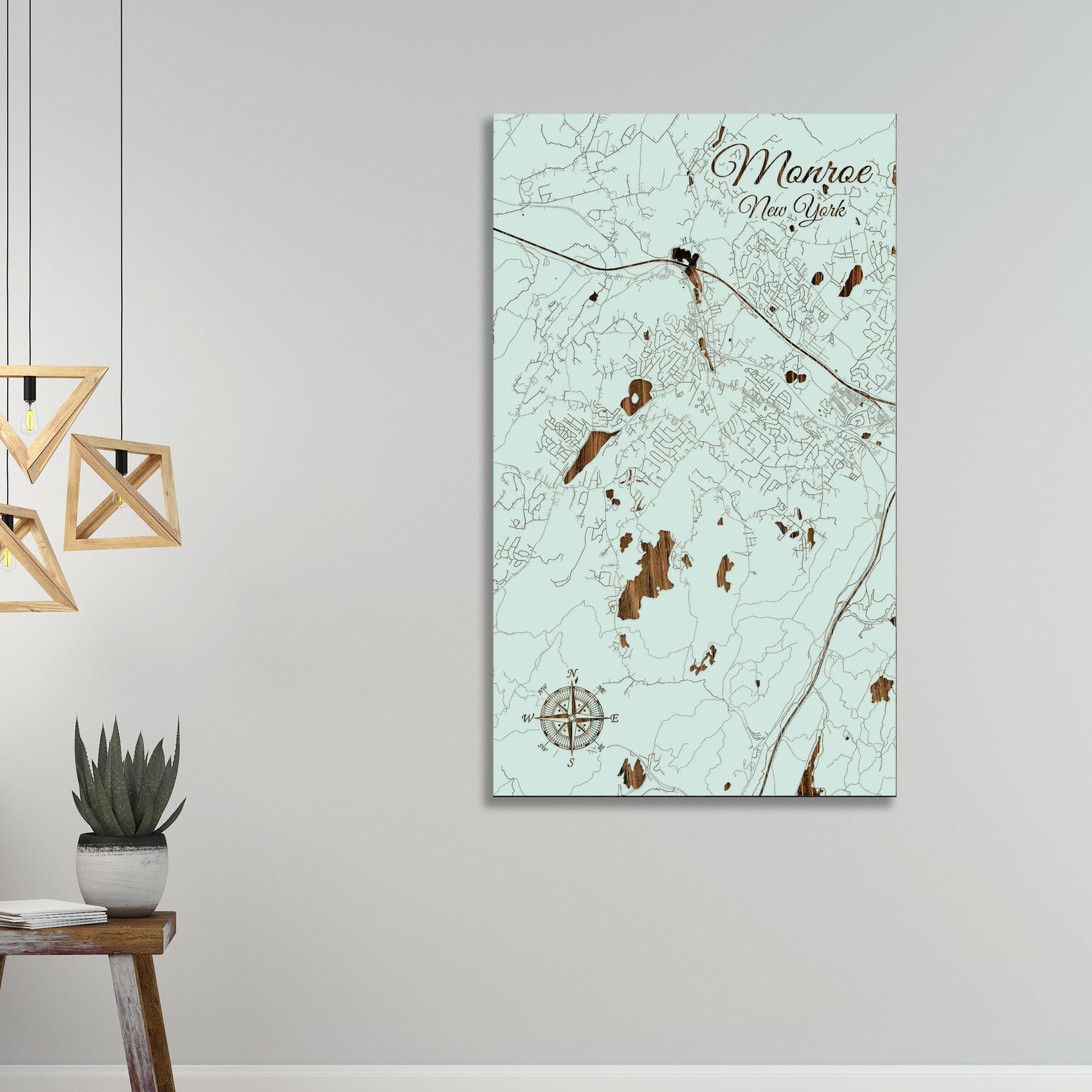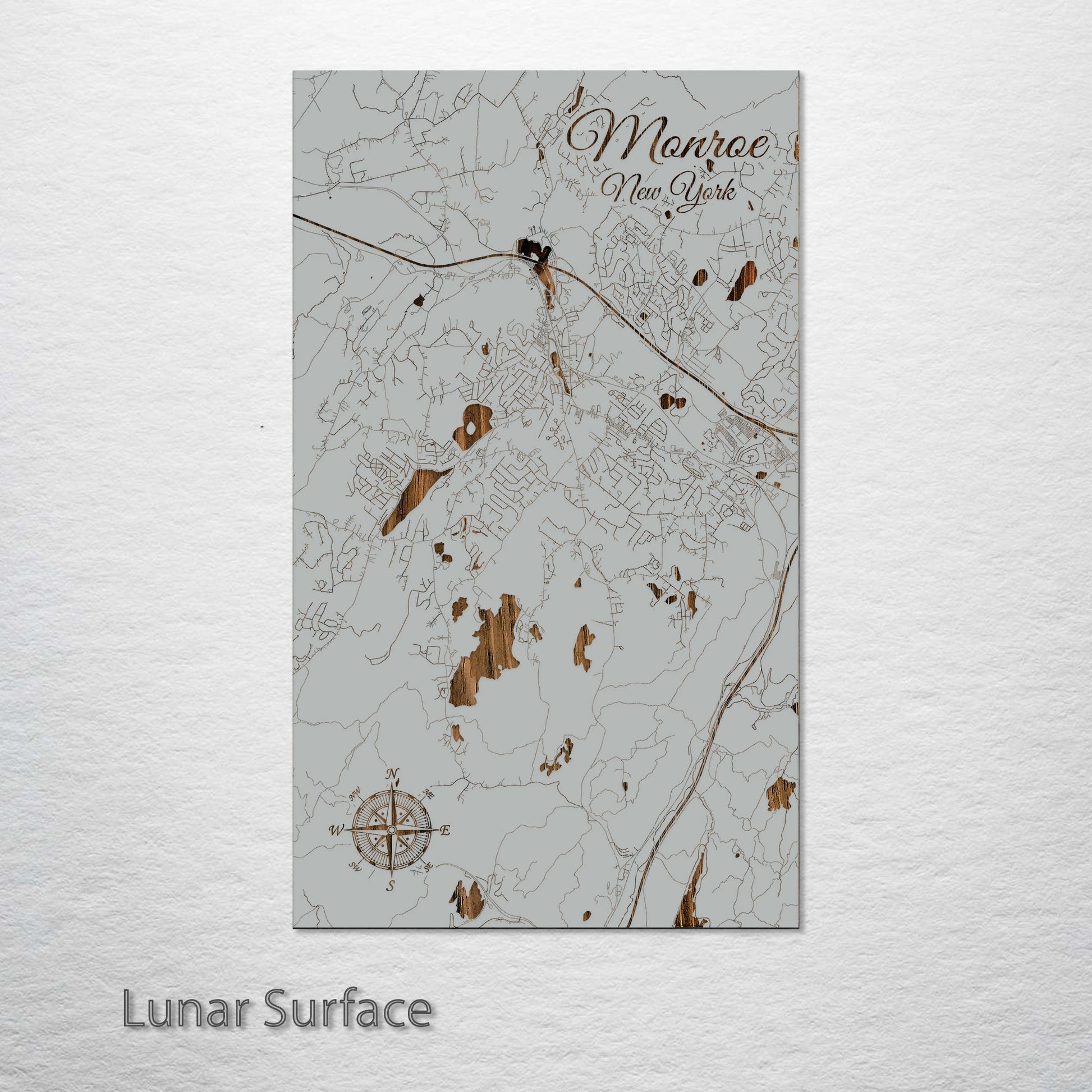 This is a street map of Monroe, NY designed by Fire & Pine artists.