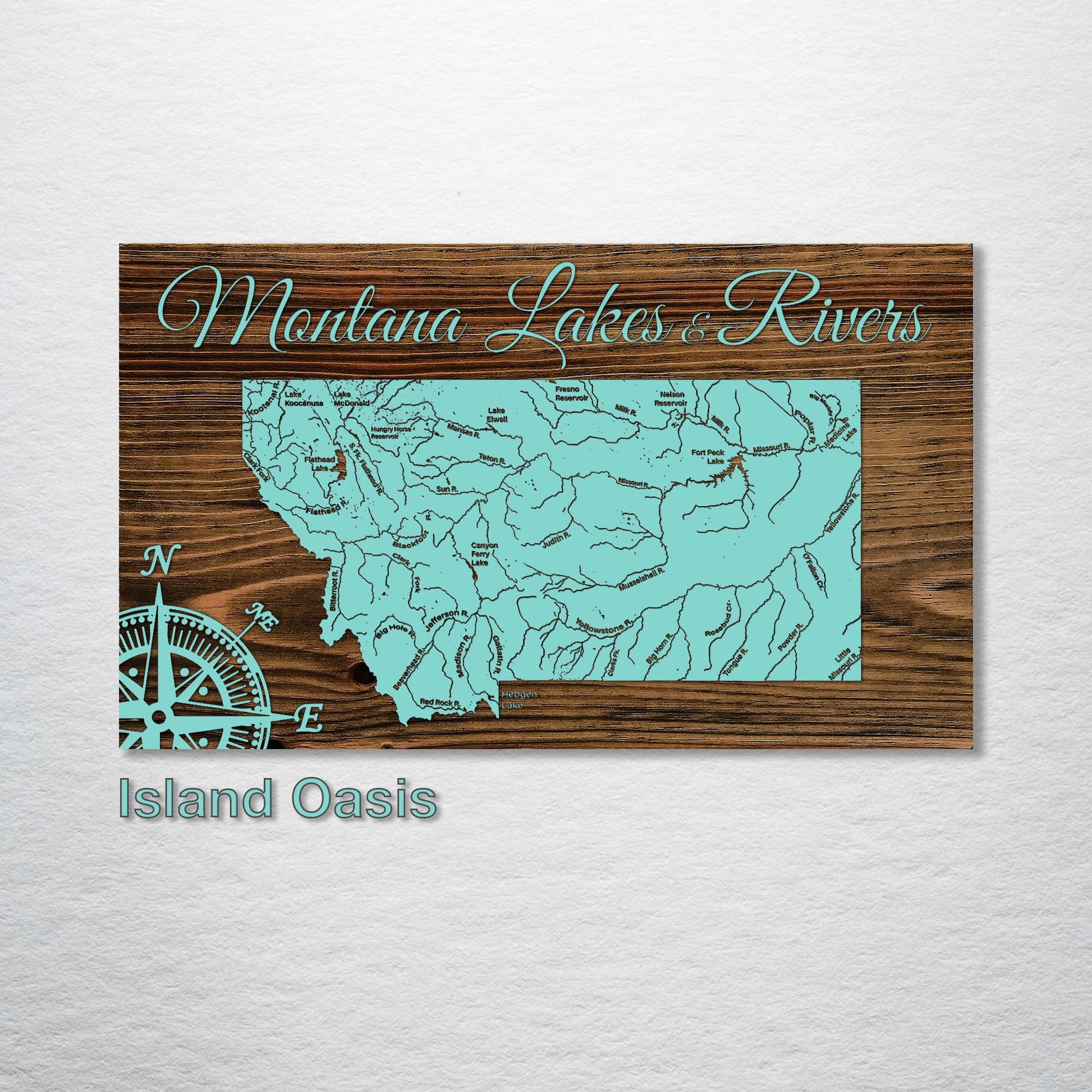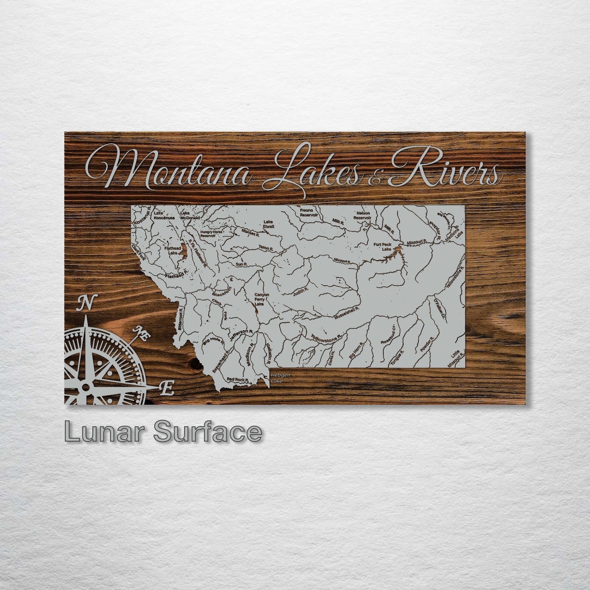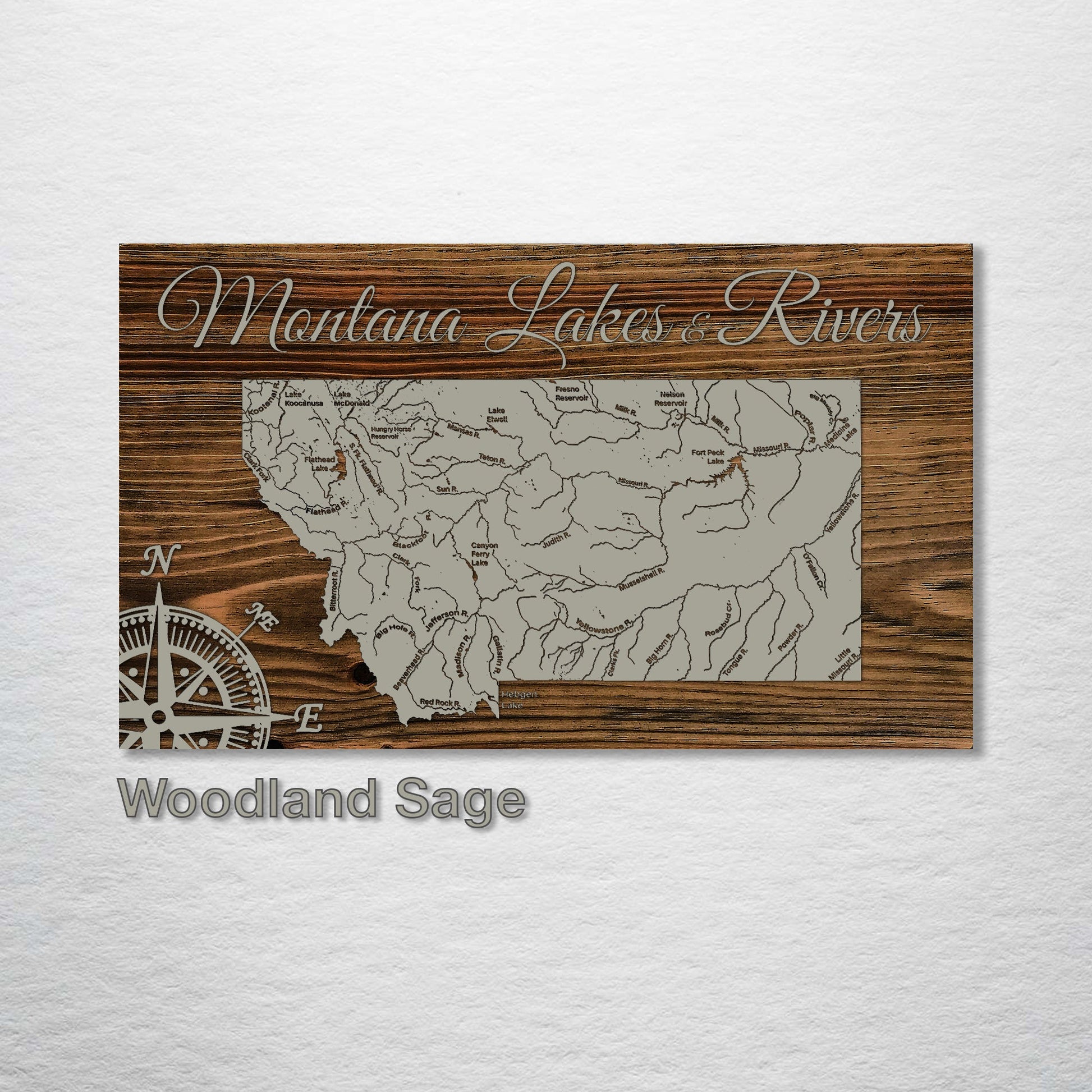 This is a map of the major lakes and rivers of Montana designed by Fire & Pine artists.