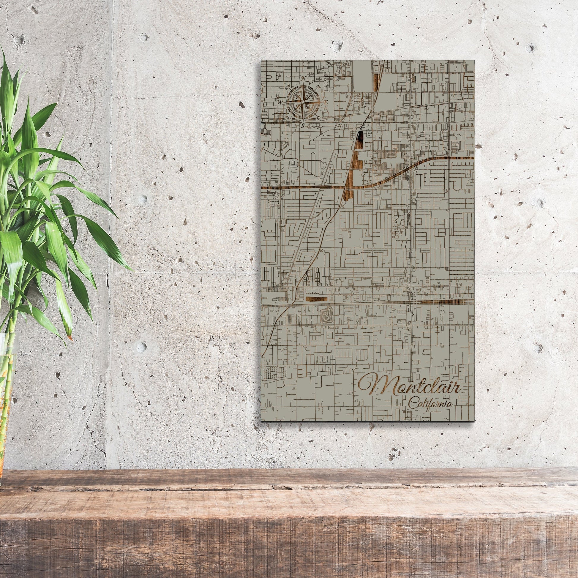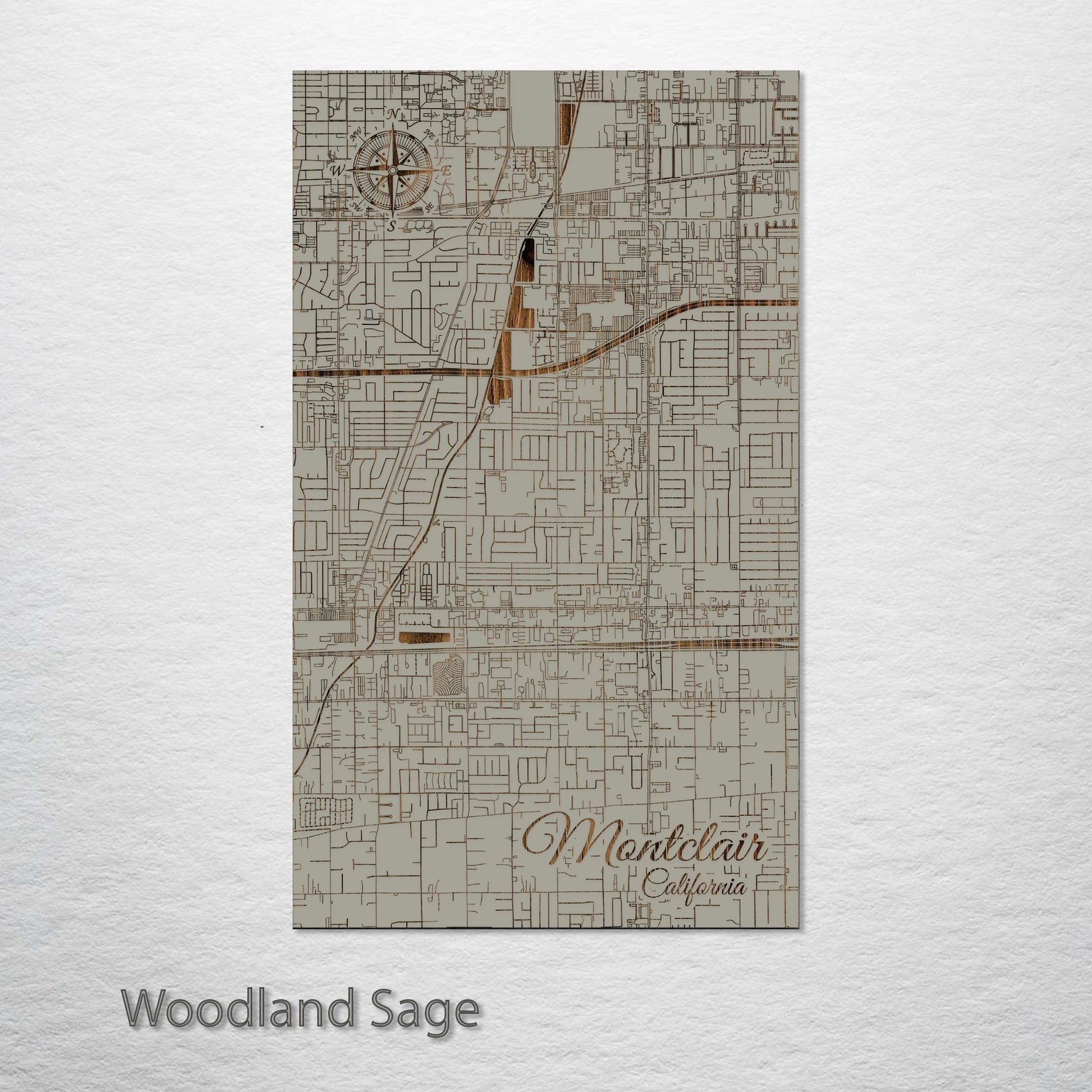 This is a street map of Montclair, CA designed by Fire & Pine artists.