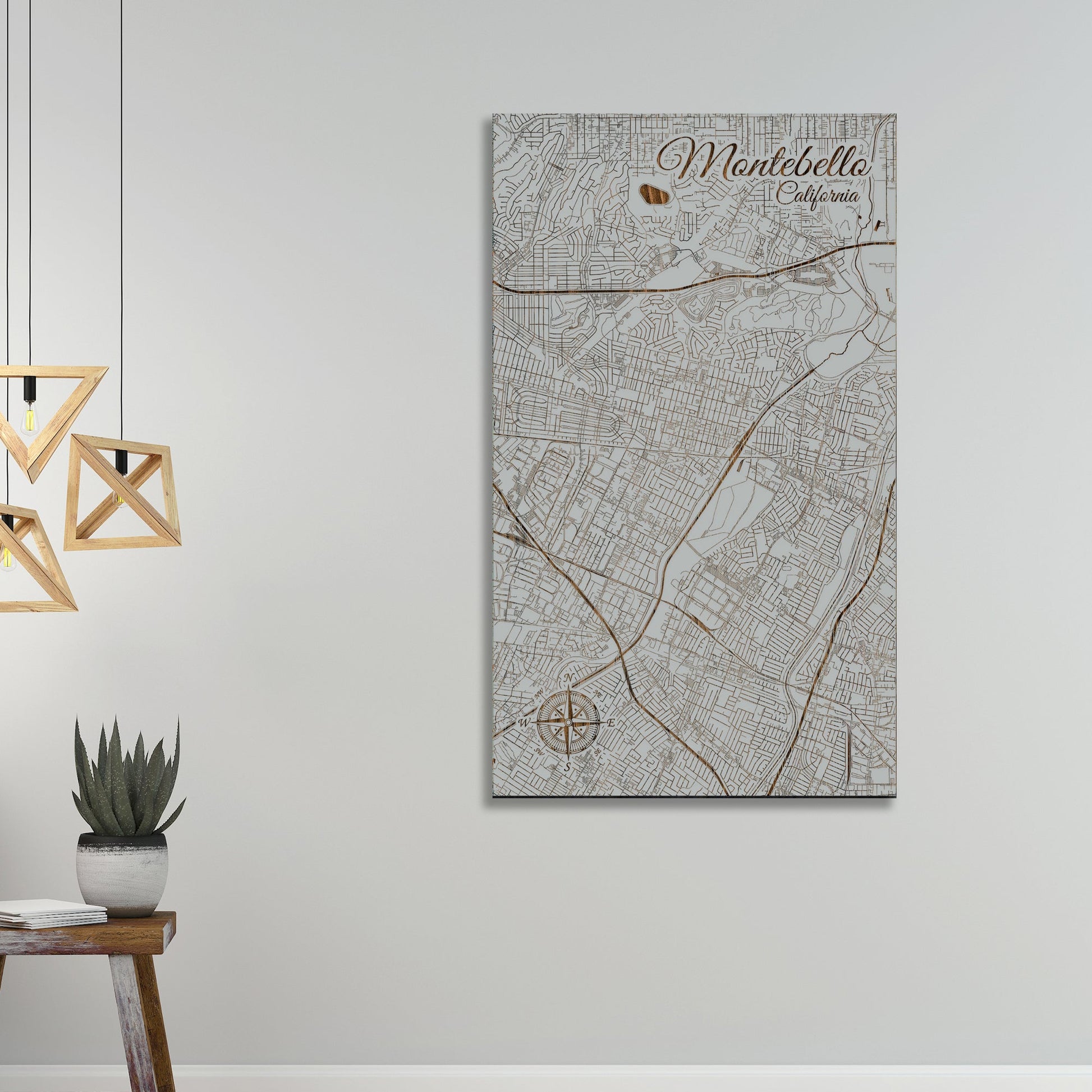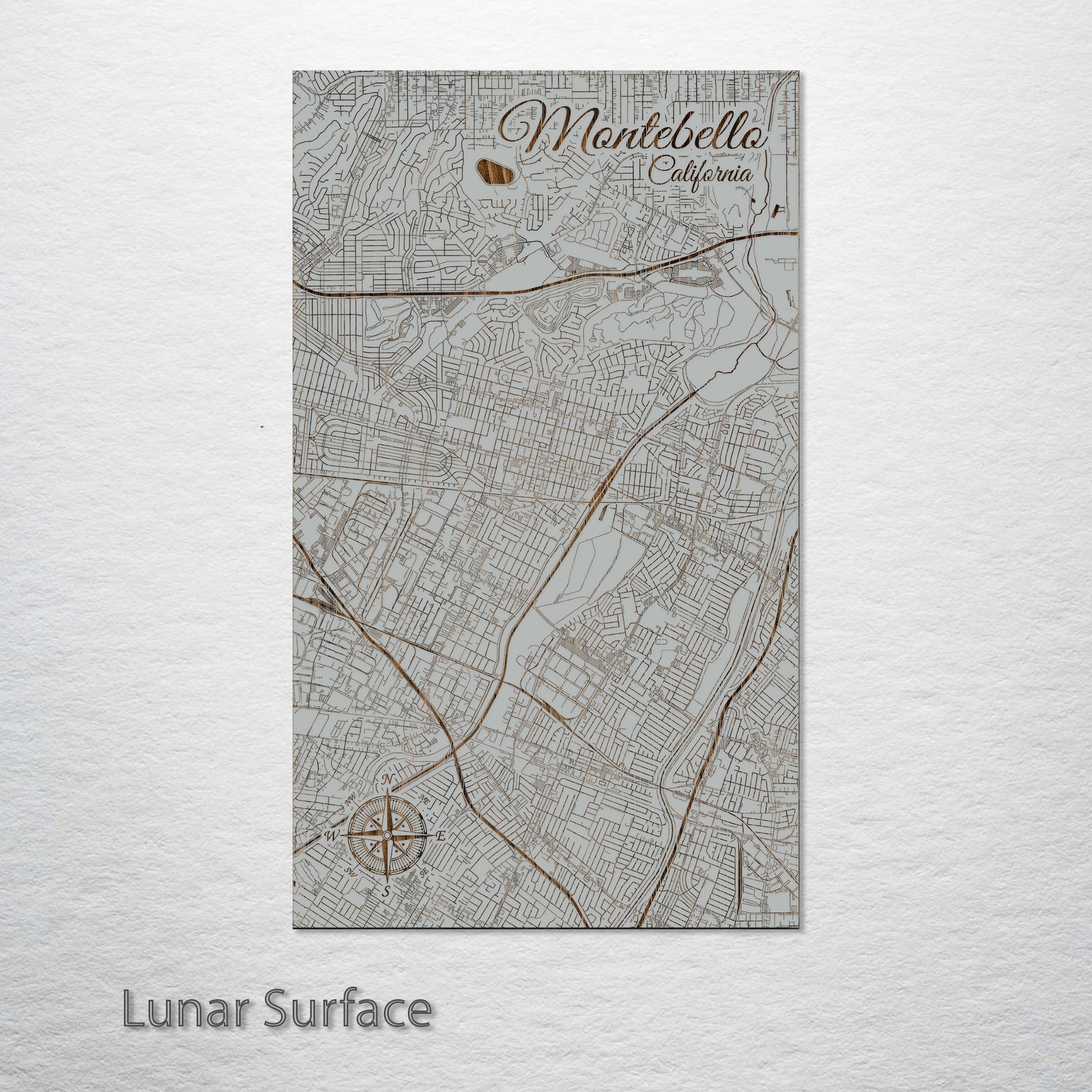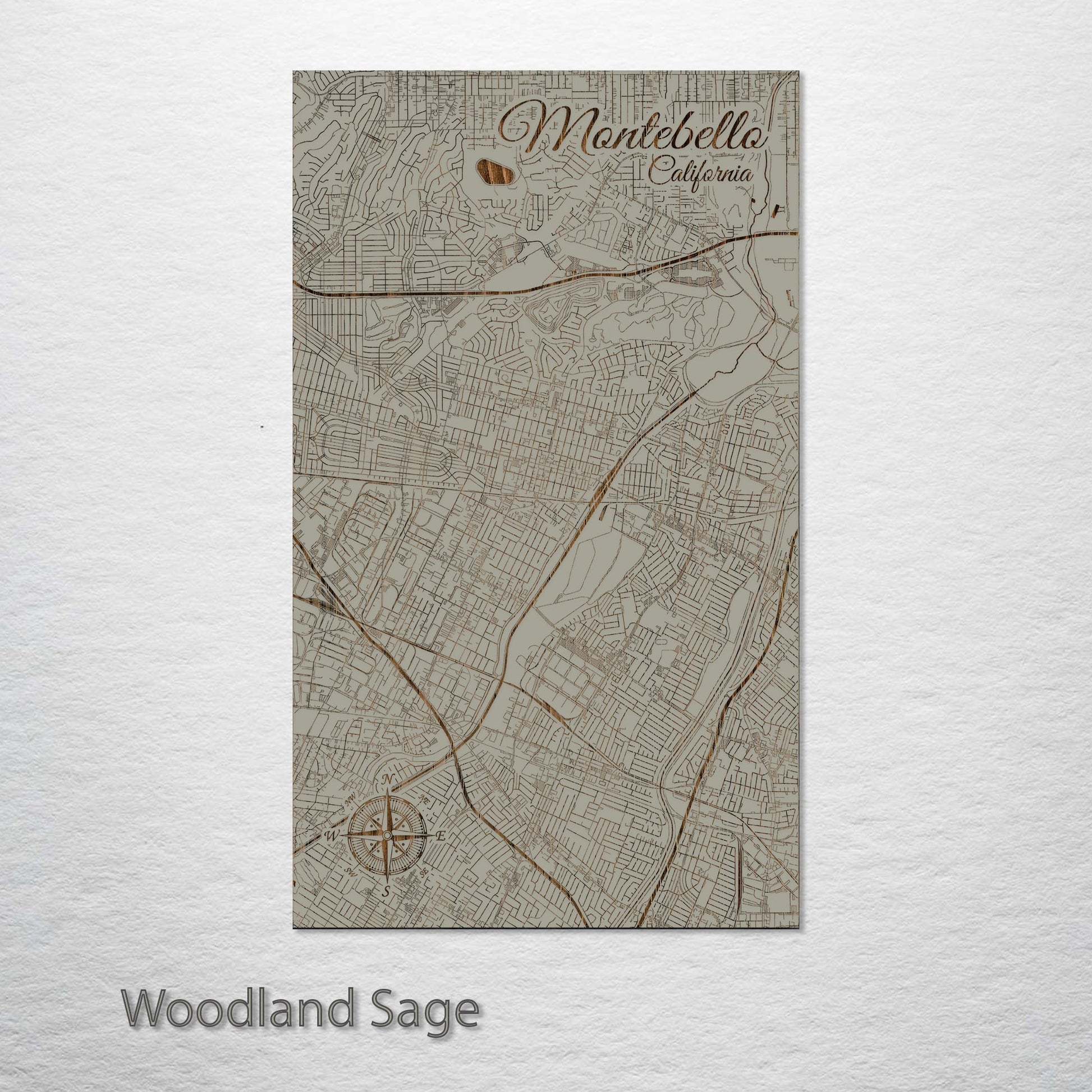 This is a street map of Montebello, CA designed by Fire & Pine artists.