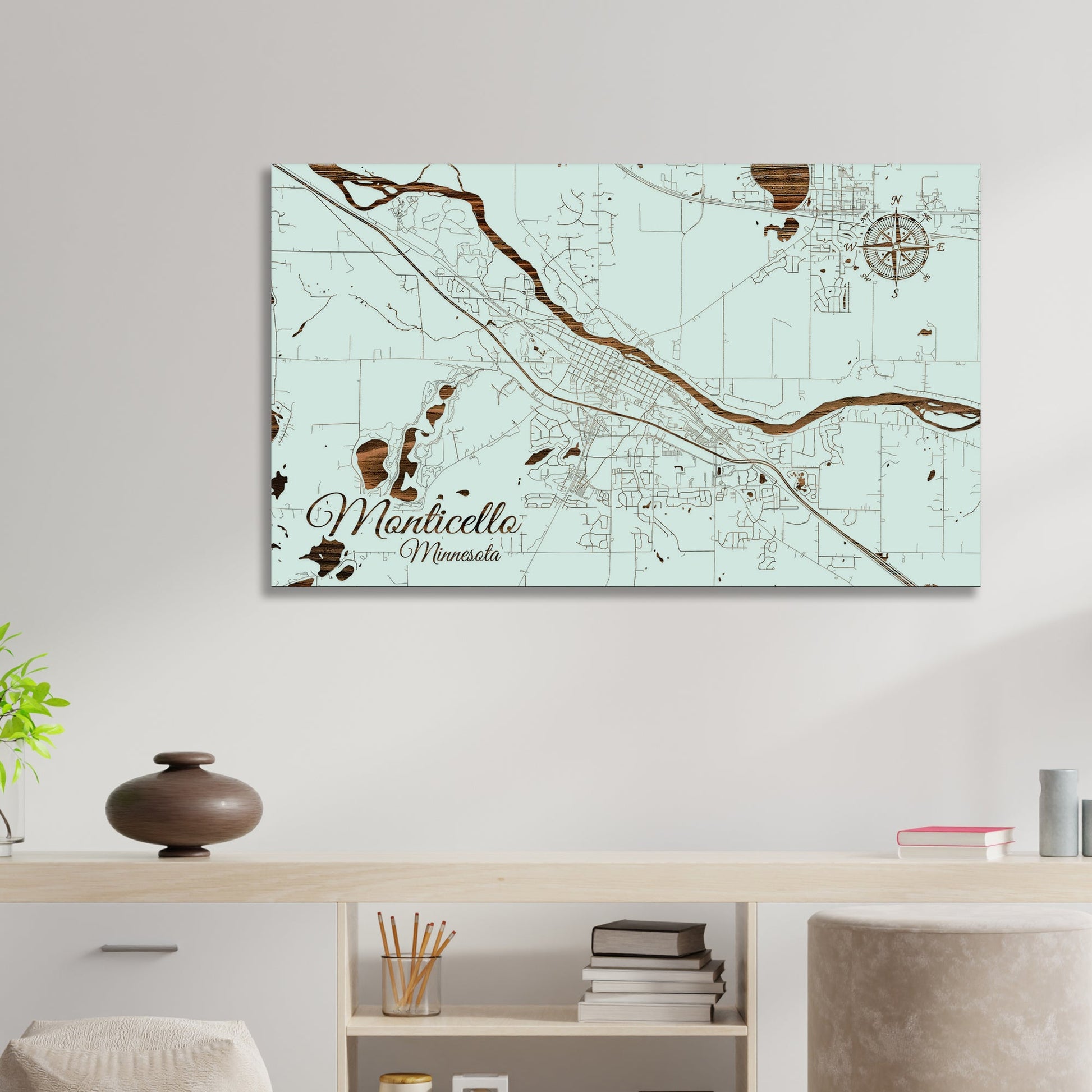 This is a street map of Monticello, MN designed by Fire & Pine artists.