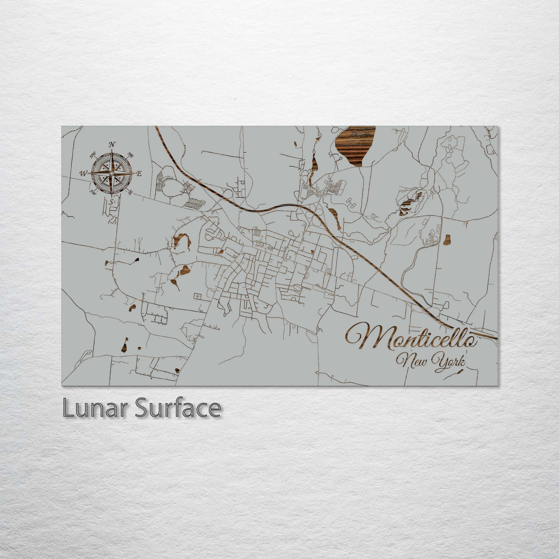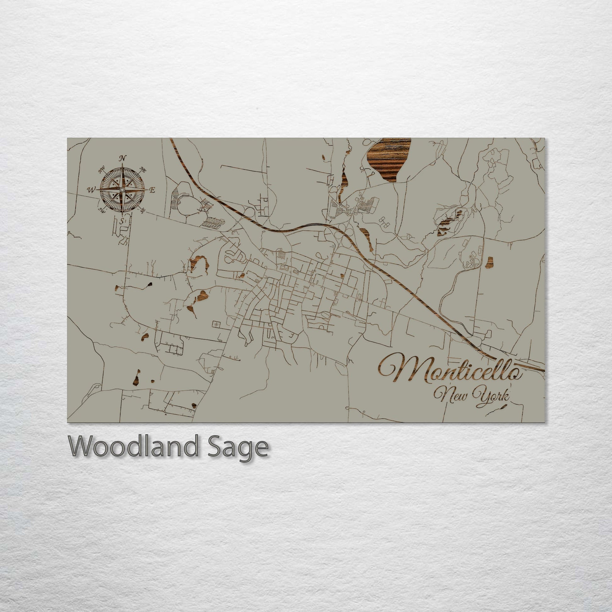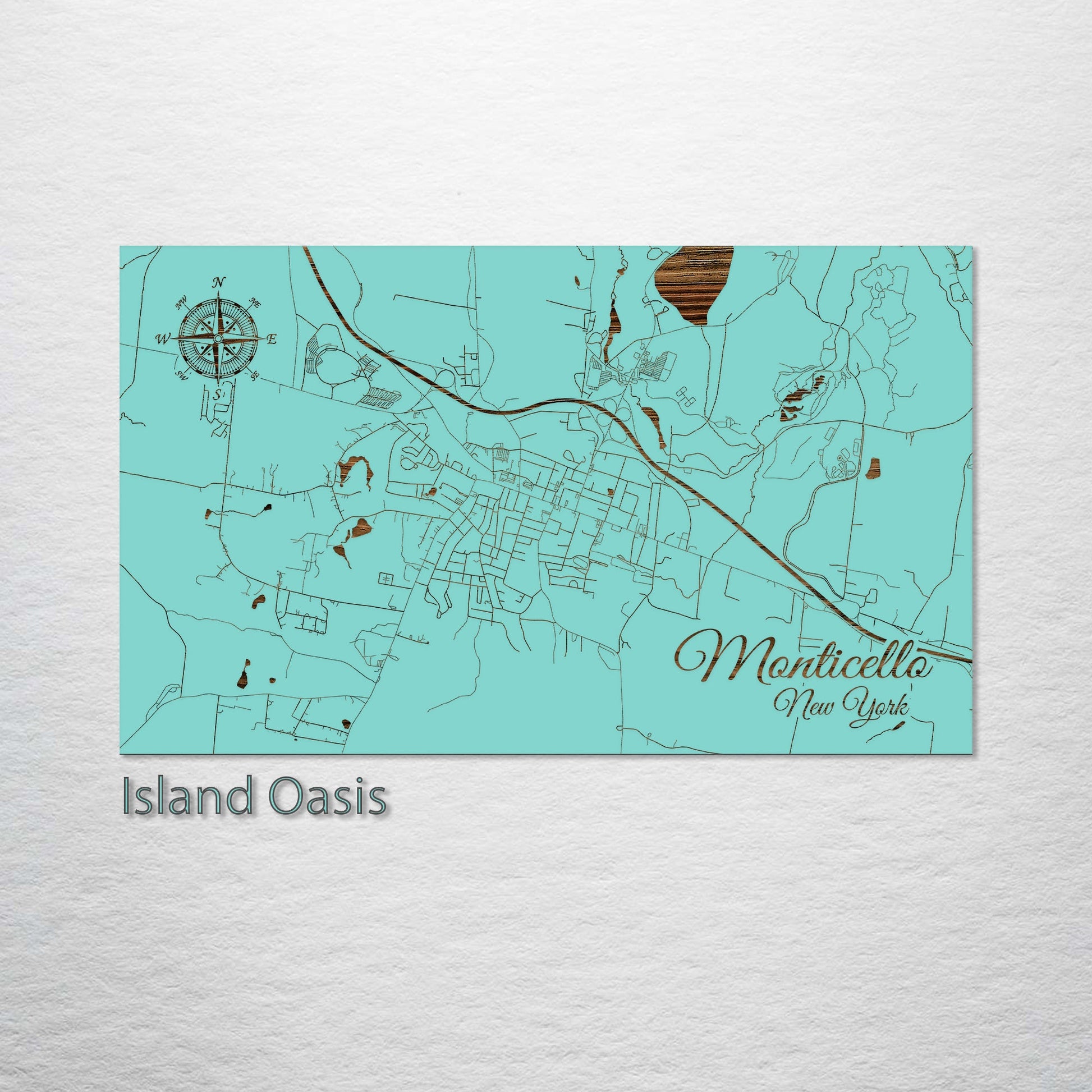 This is a street map of Monticello, NY designed by Fire & Pine artists.