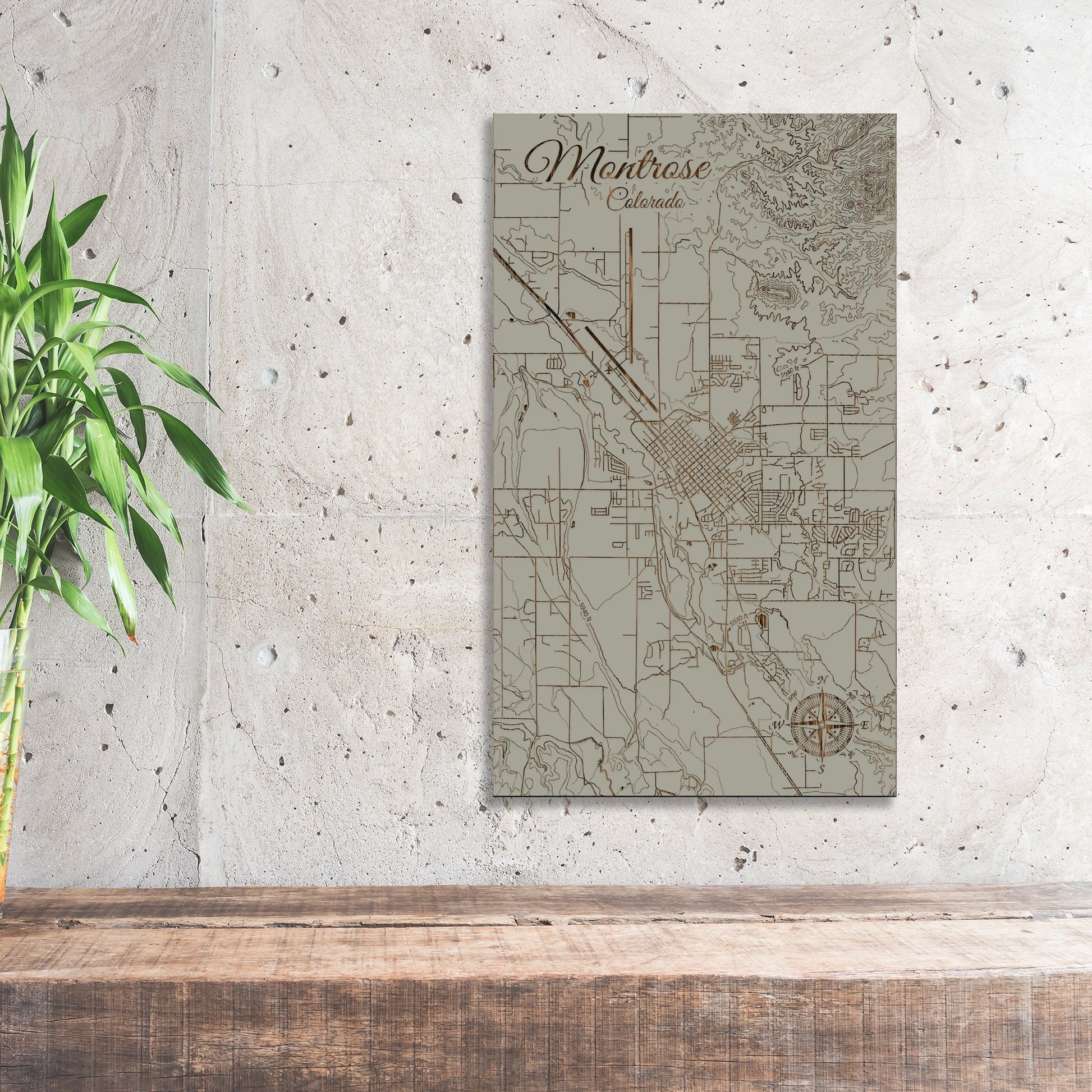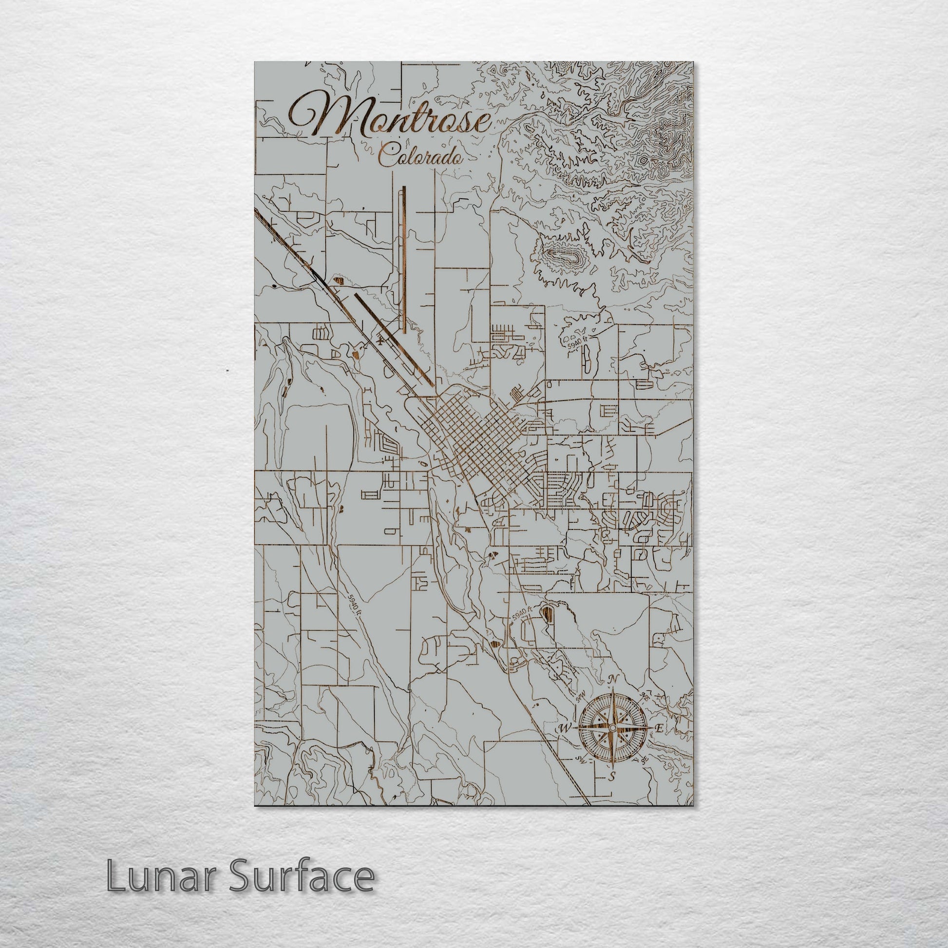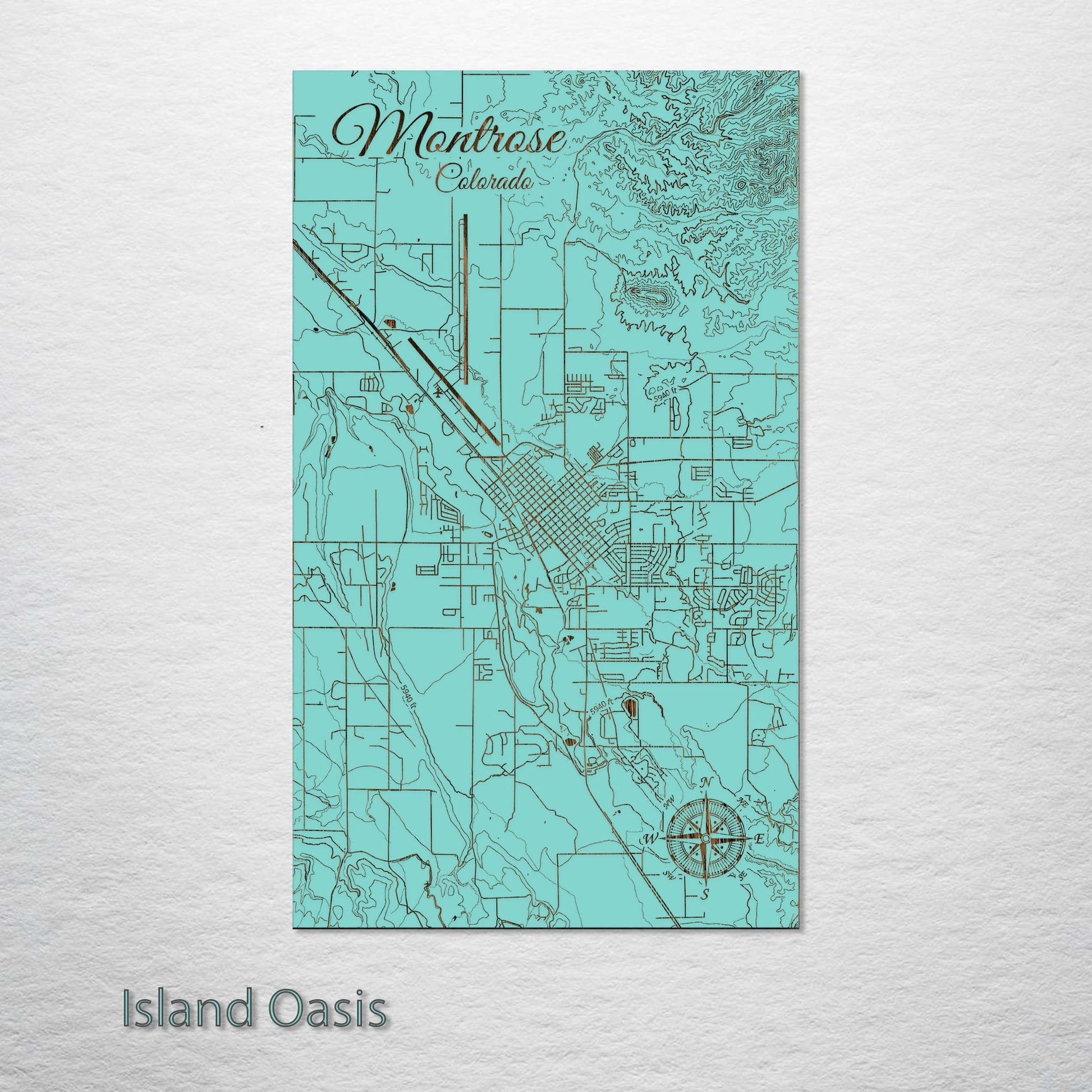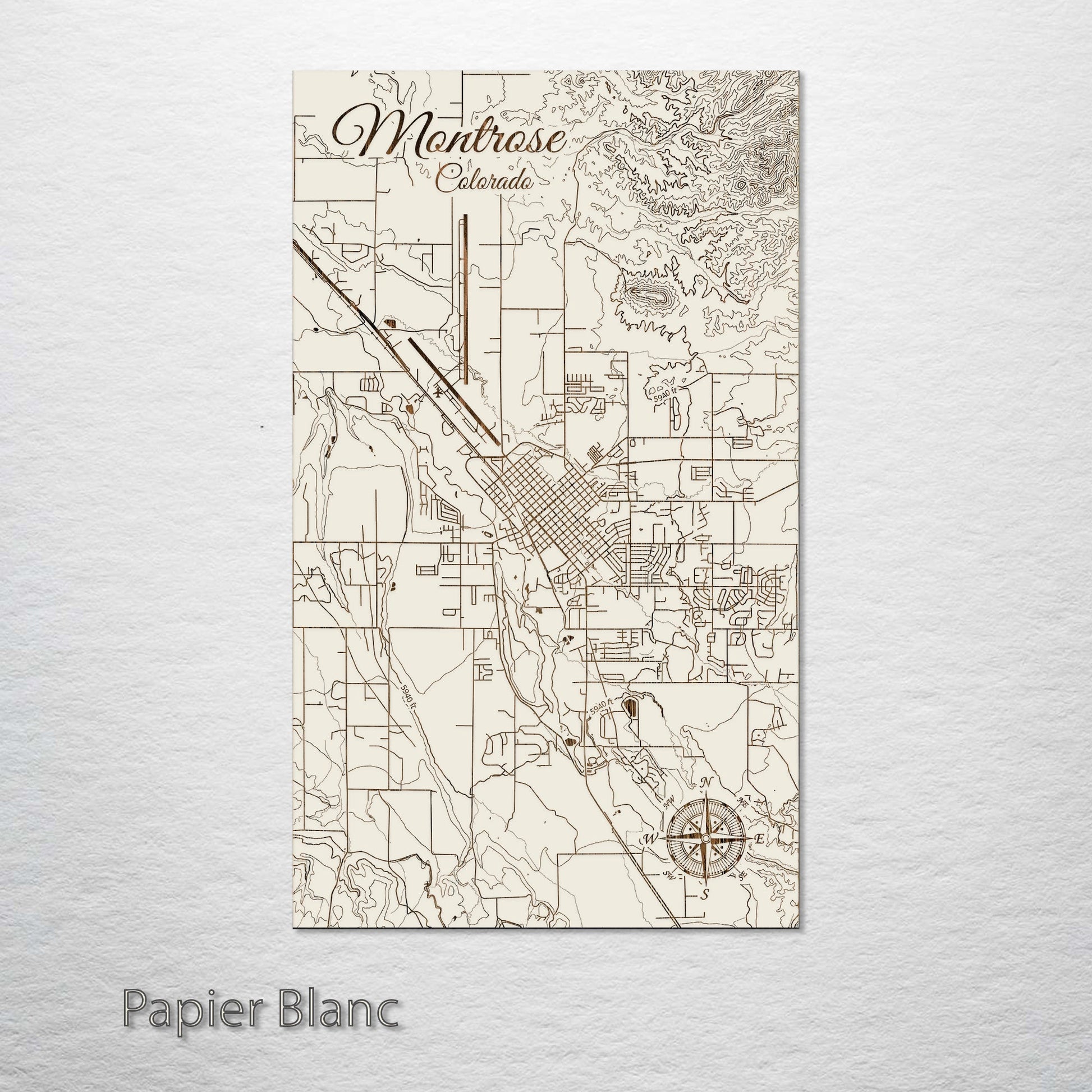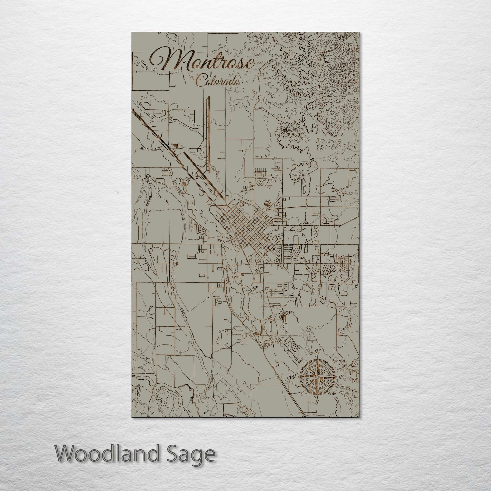 This is a street map of Montrose, CO designed by Fire & Pine artists.