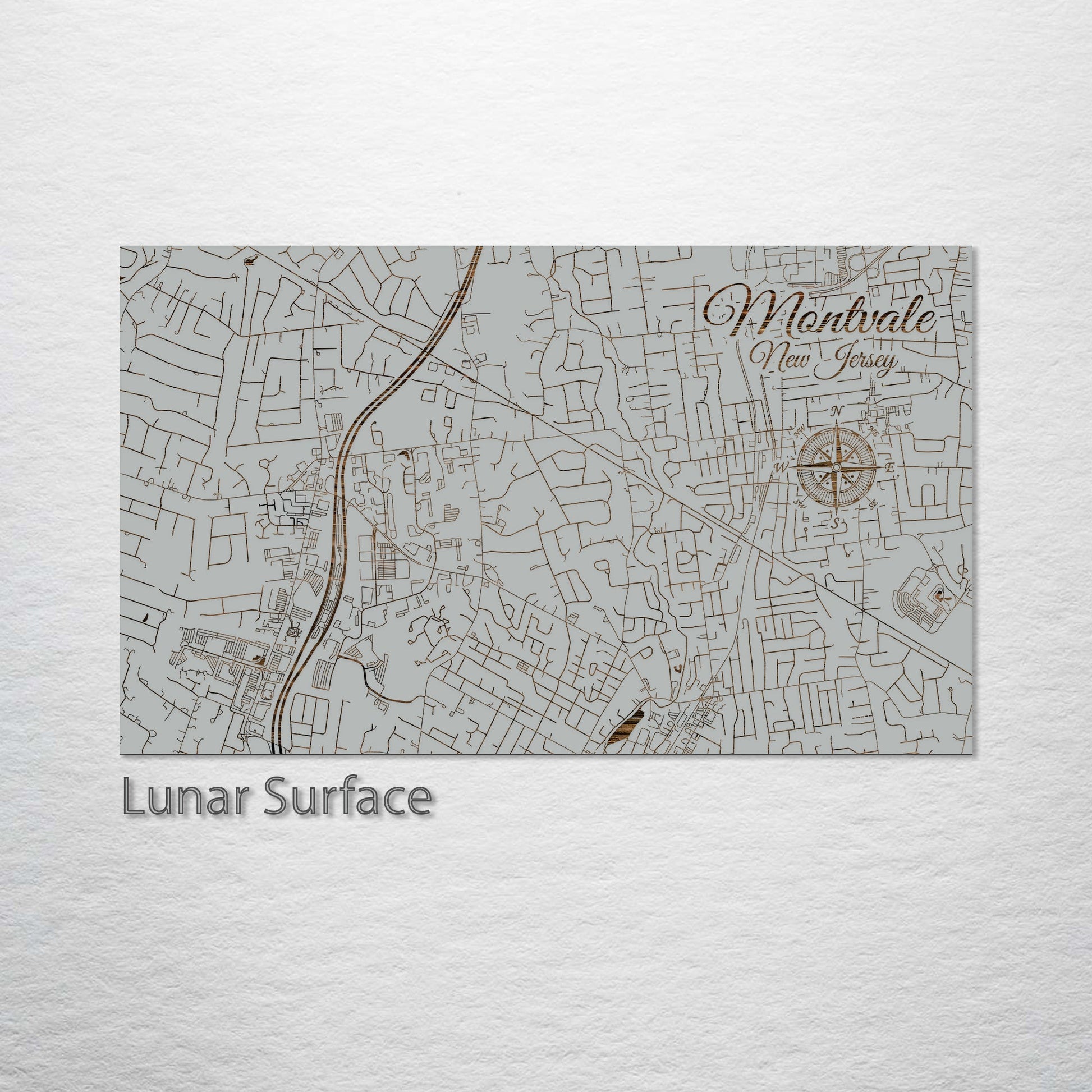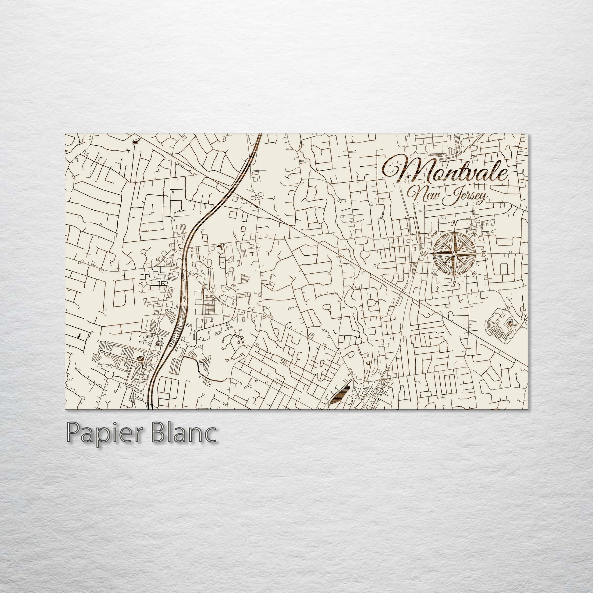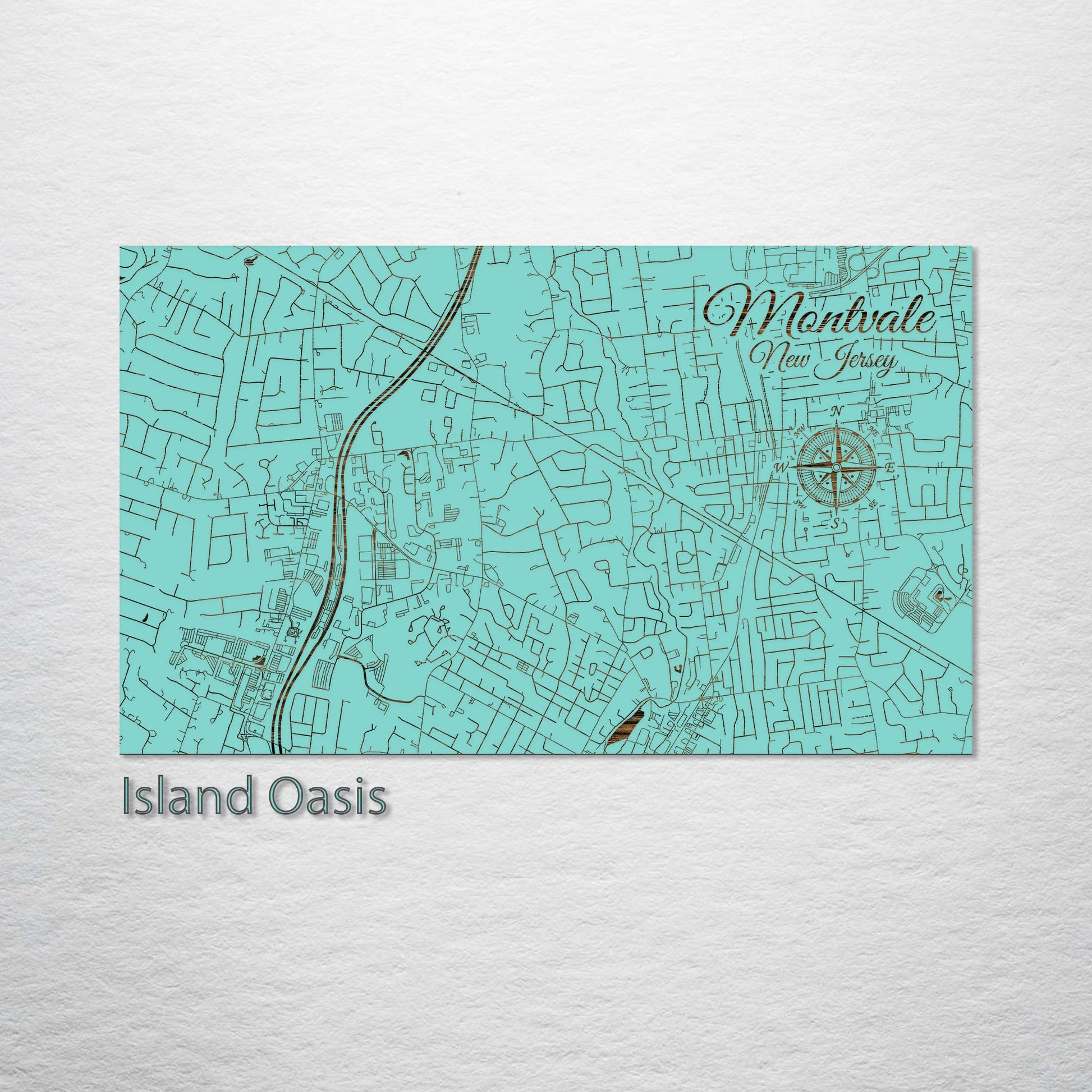 This is a street map of Montvale, NJ designed by Fire & Pine artists.