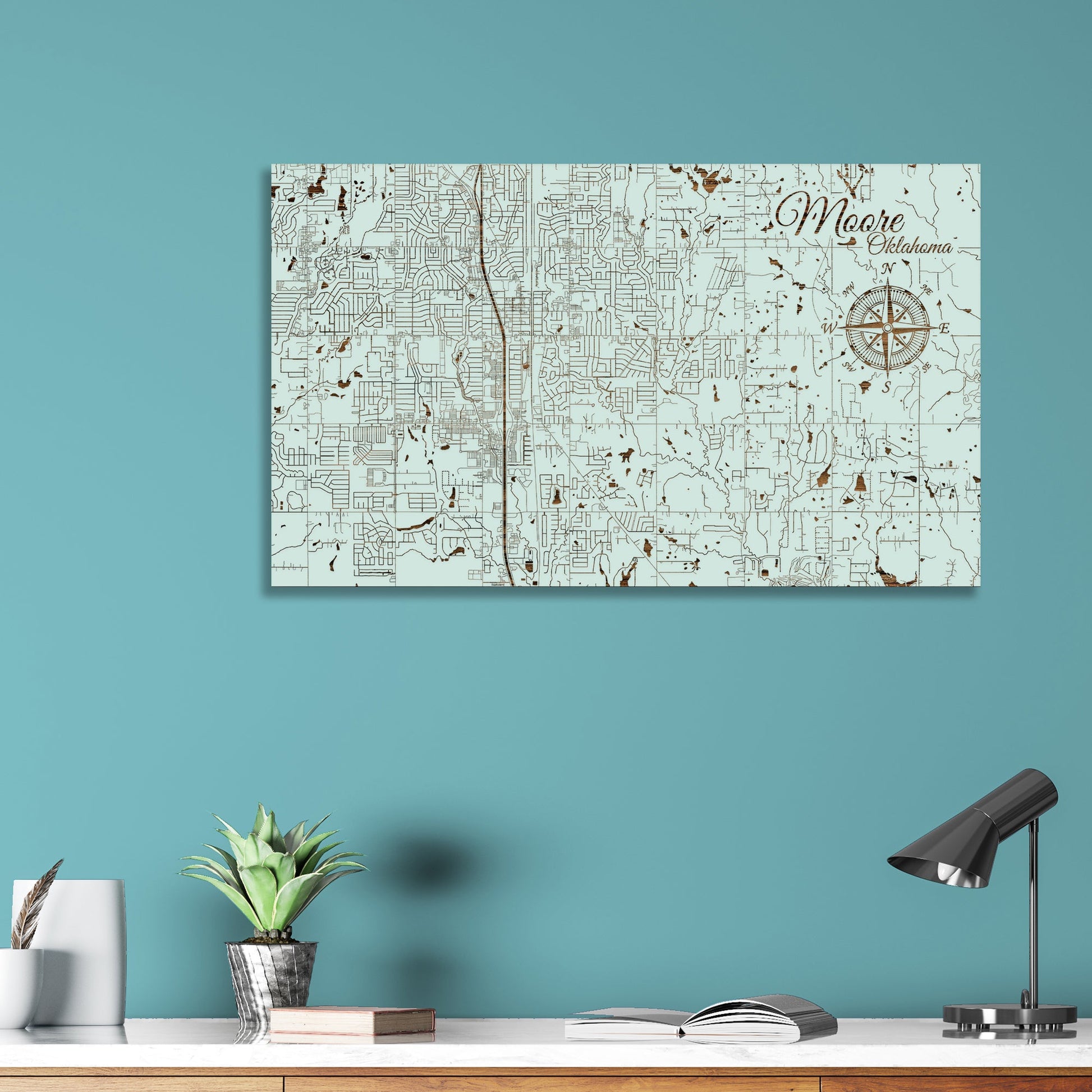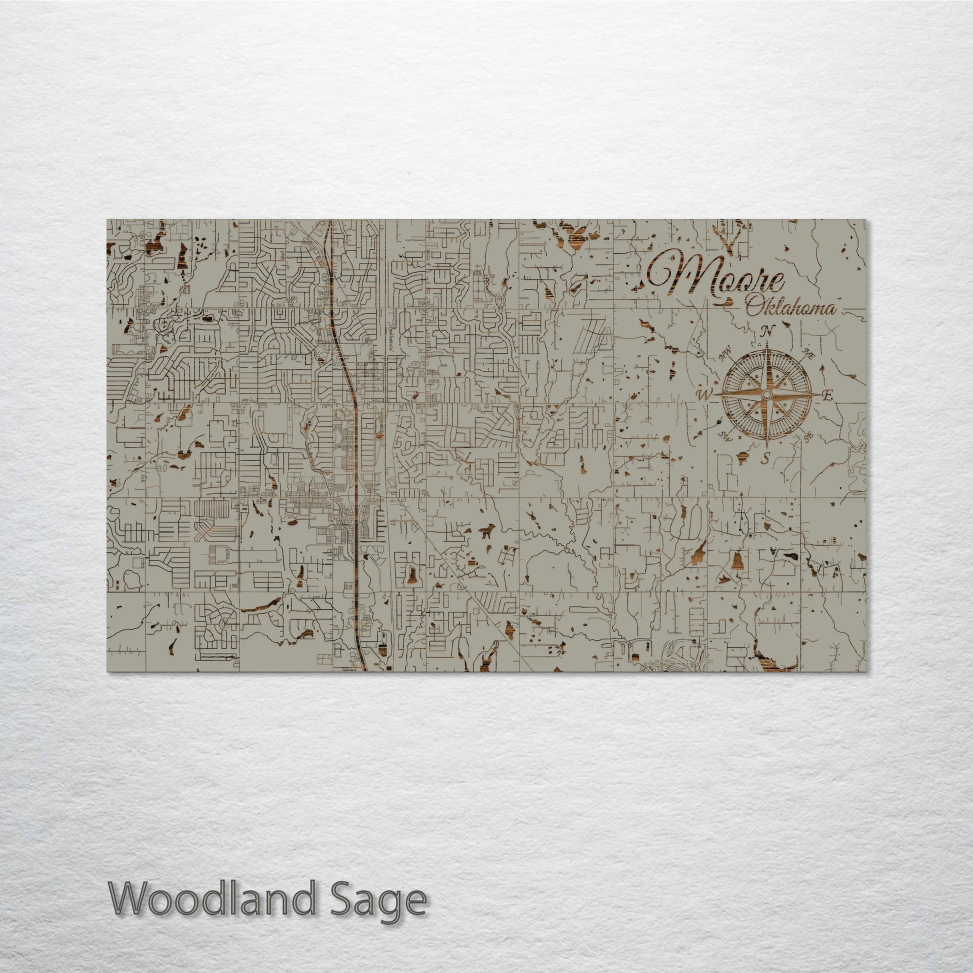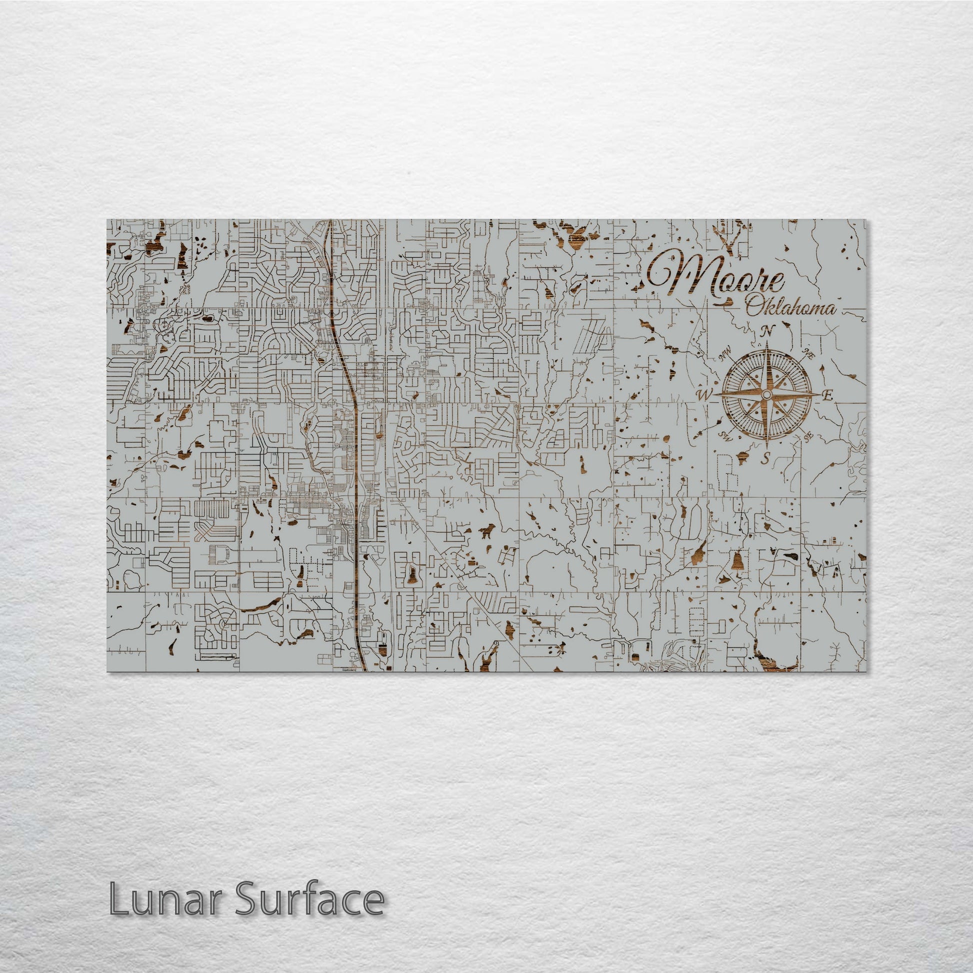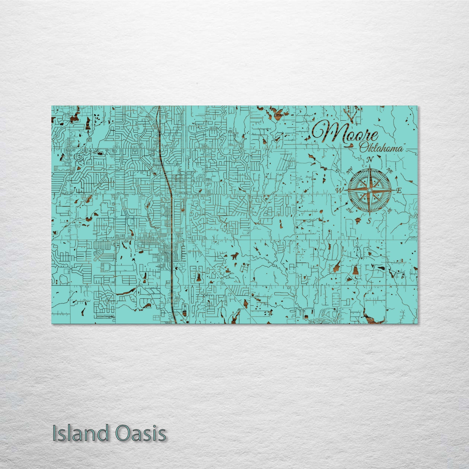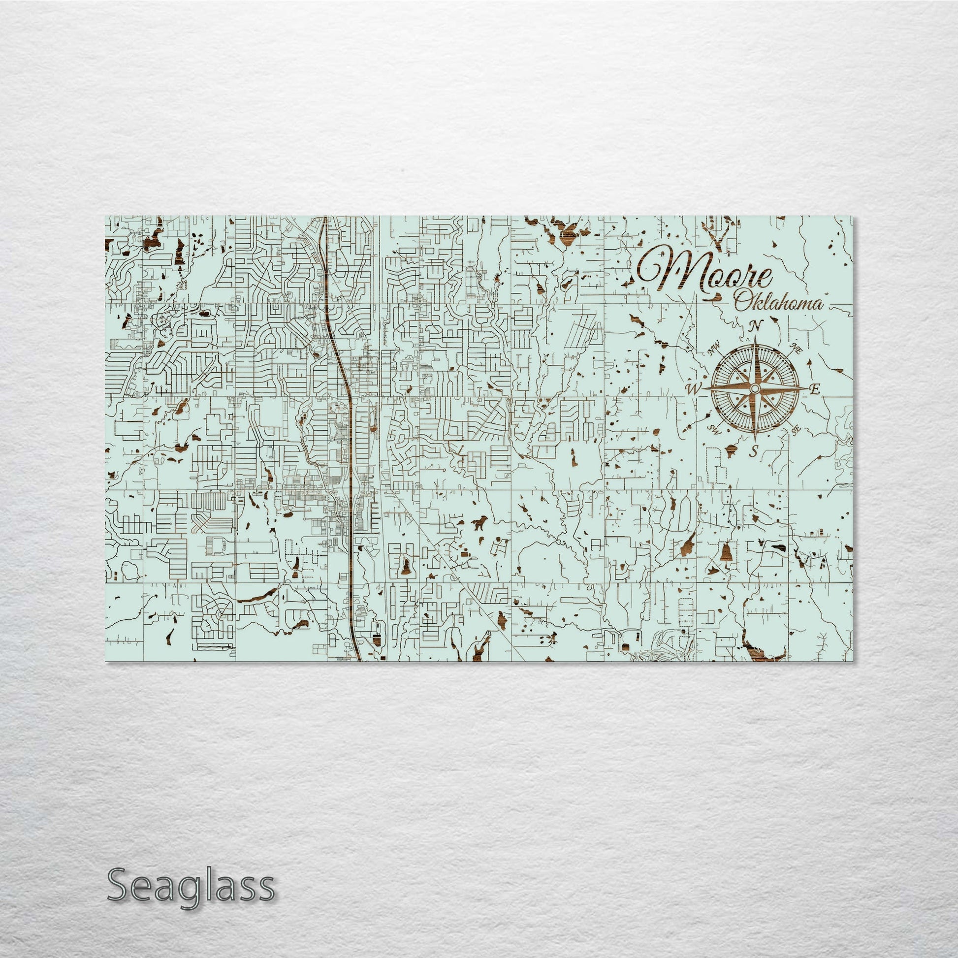 This is a street map of Moore, OK designed by Fire & Pine artists.