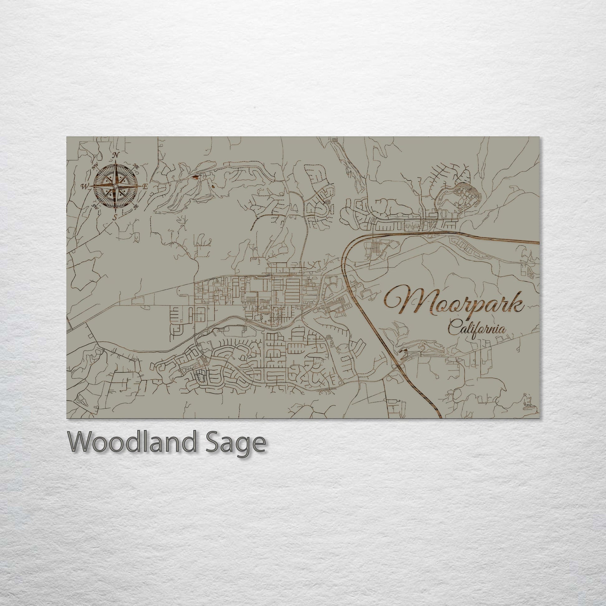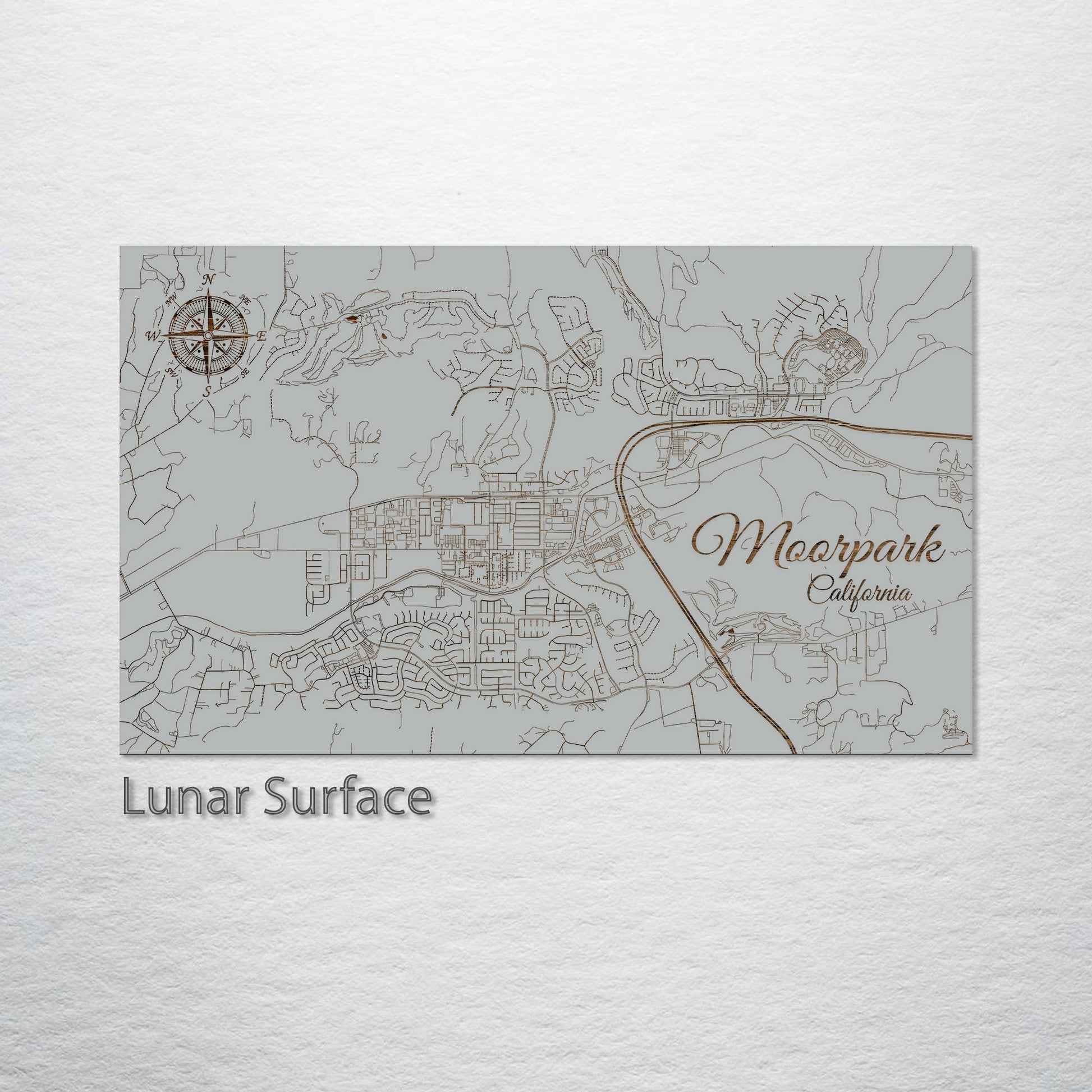 The wood-engraved Moorpark, California street map is a standout addition to any art enthusiast's collection. Crafted with precision from top-notch pine wood, its detailed street depictions offer a unique visual appeal. An excellent choice for those who appreciate the artistry of maps or the distinctive character of Moorpark.
