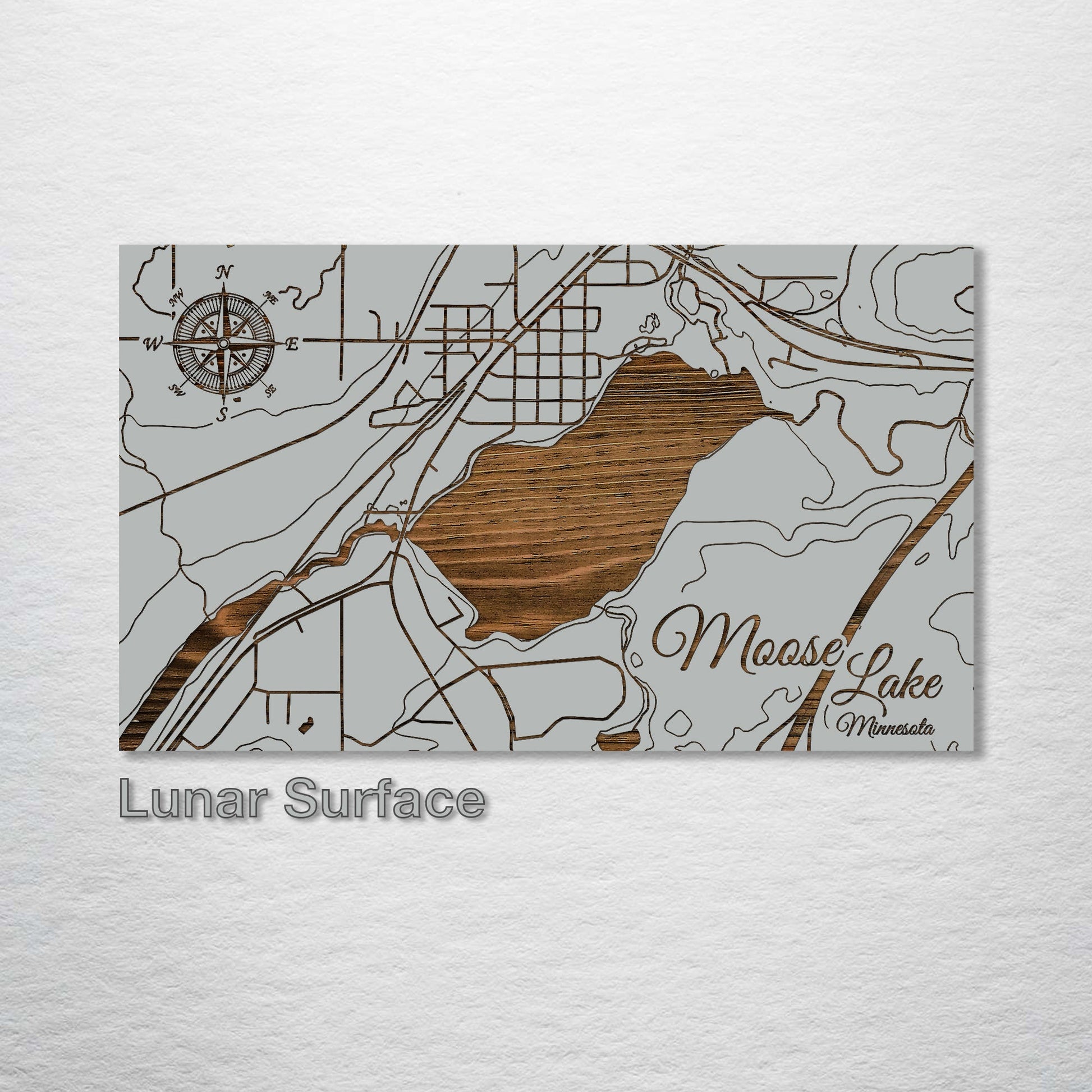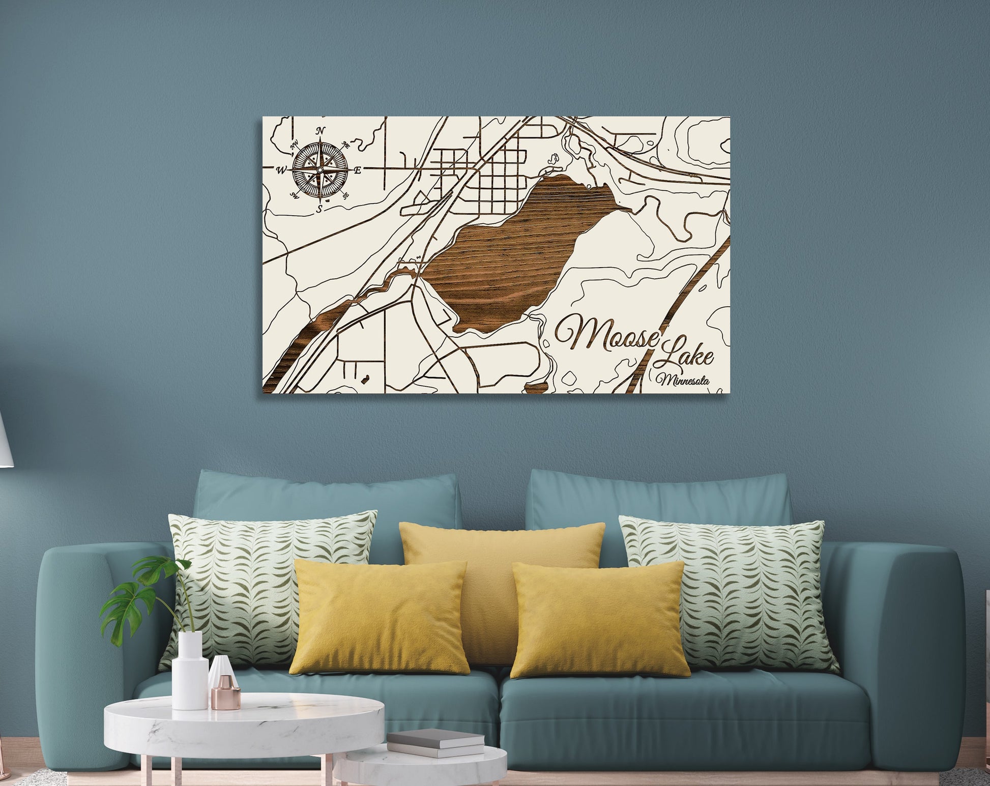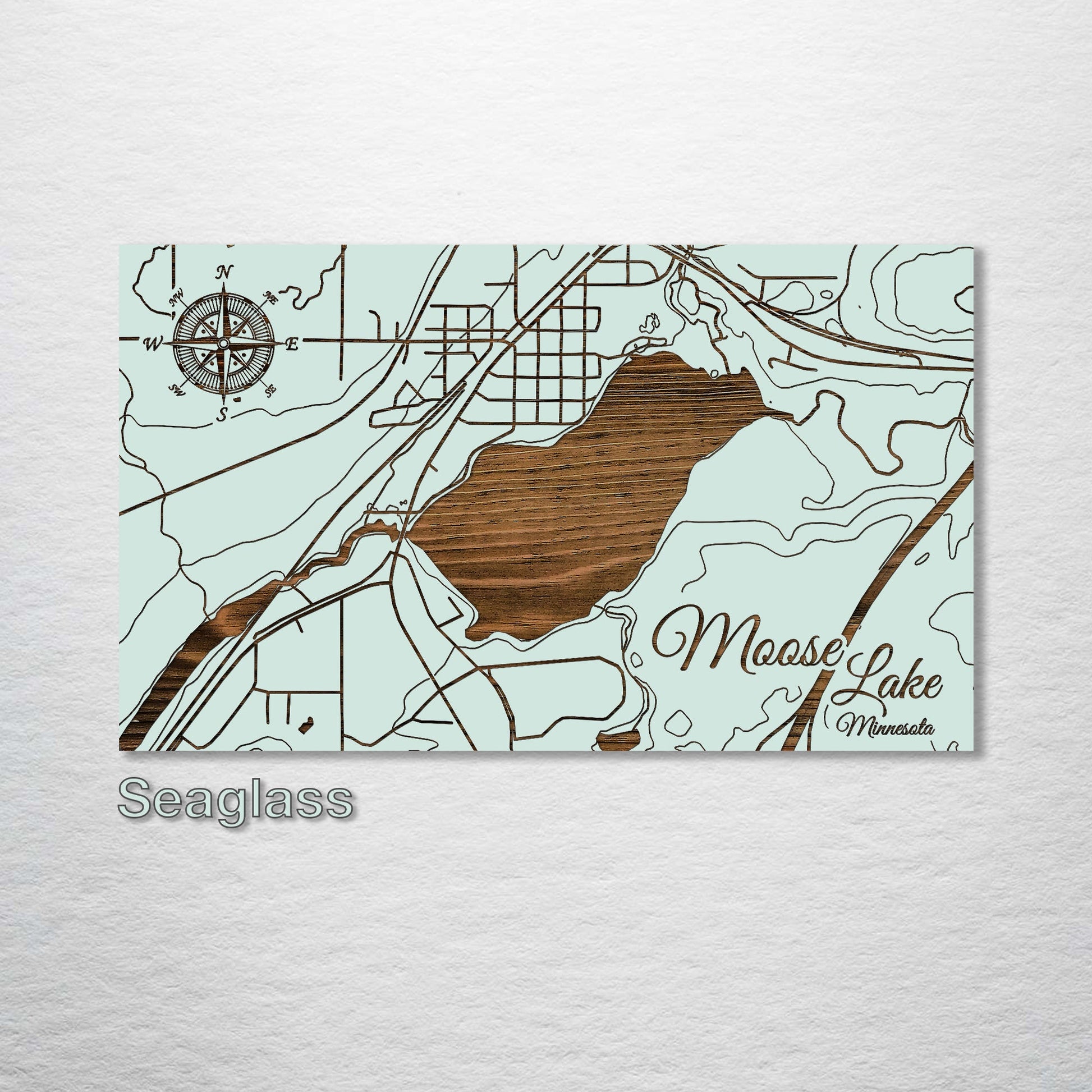 This is a map showing Moose Lake in Minnesota designed by Fire & Pine artists.