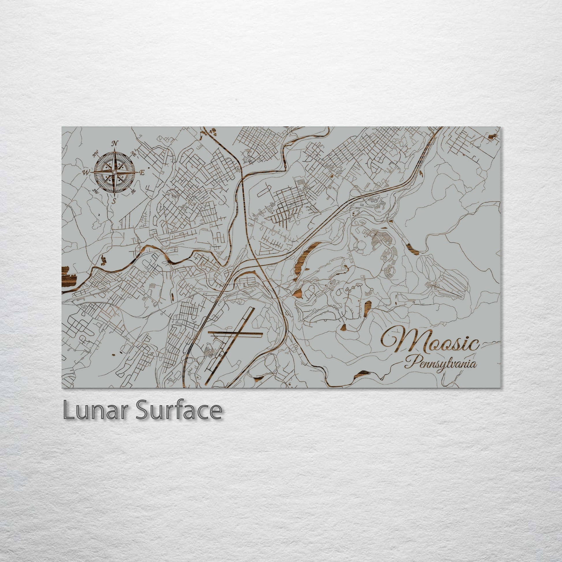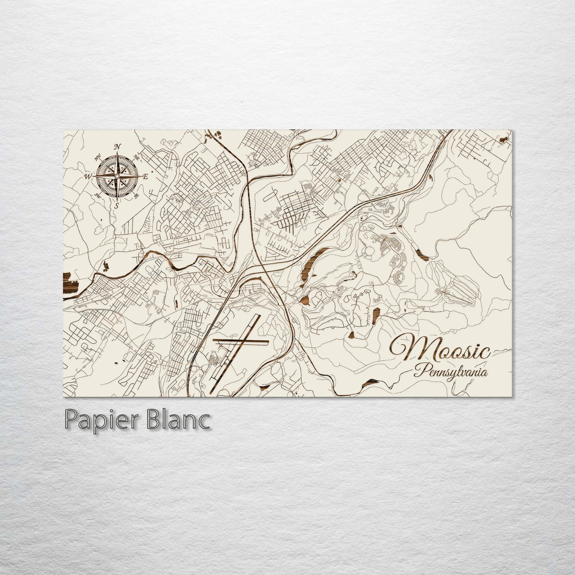 This is a street map of Moosic, PA designed by Fire & Pine artists.
