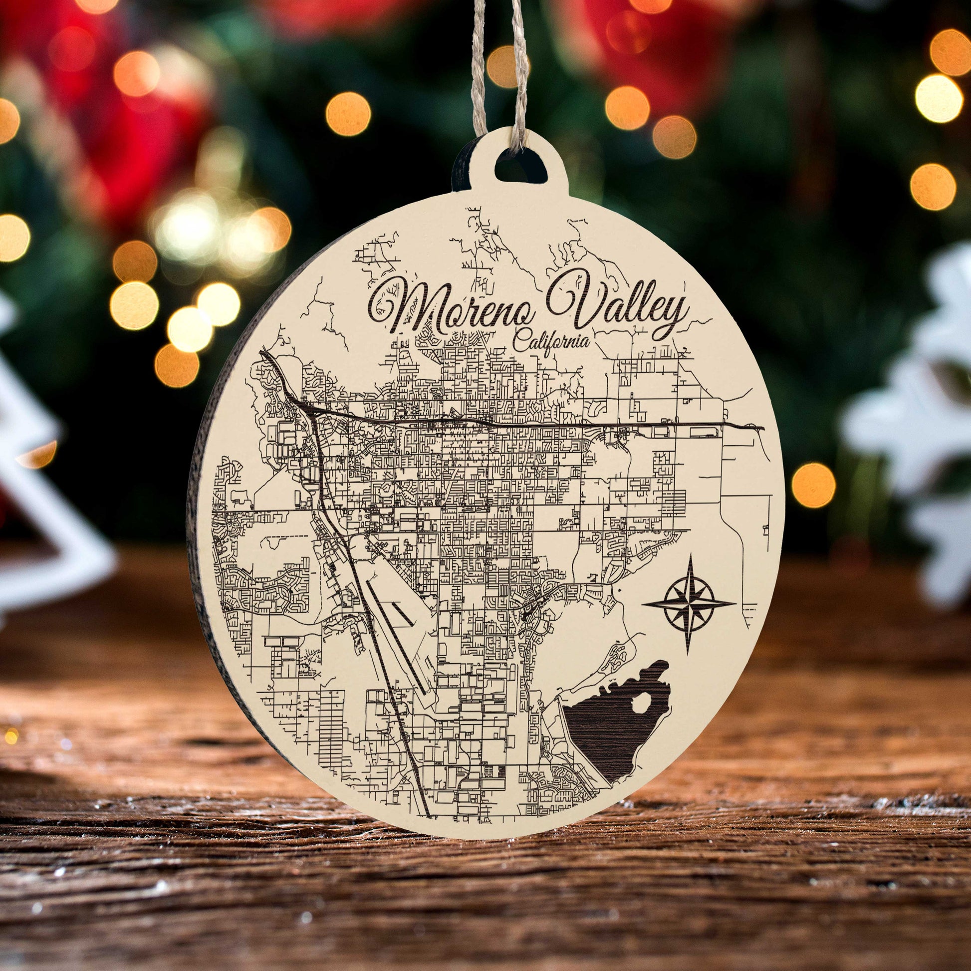 Order Your Moreno Valley, California Wooden Map Ornament Today!