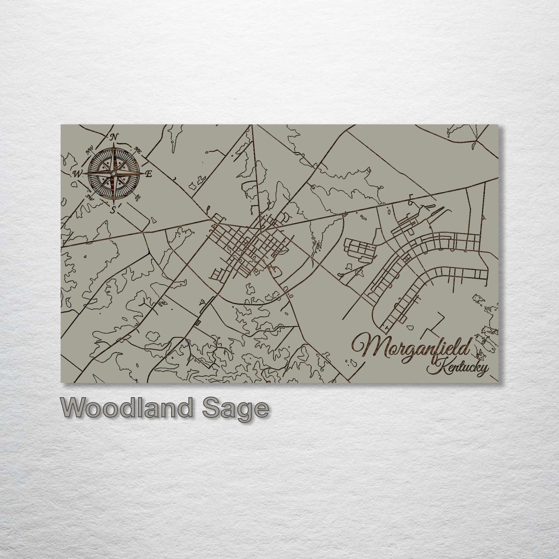 This is a map of Morganfield, Kentucky designed by Fire & Pine artists.