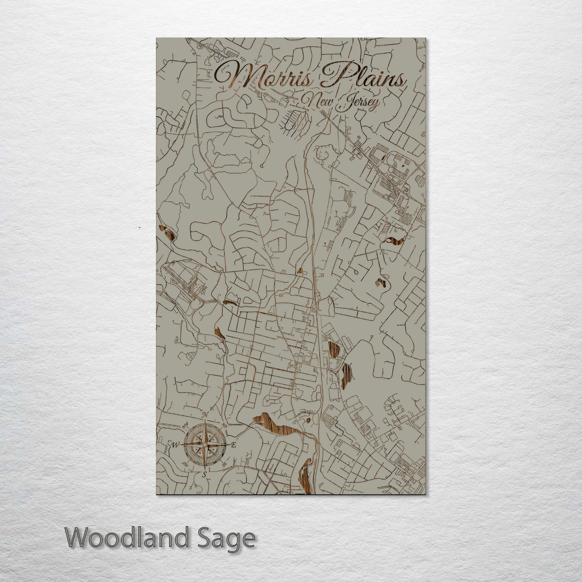 This is a street map of Morris Plains, NJ designed by Fire & Pine artists.
