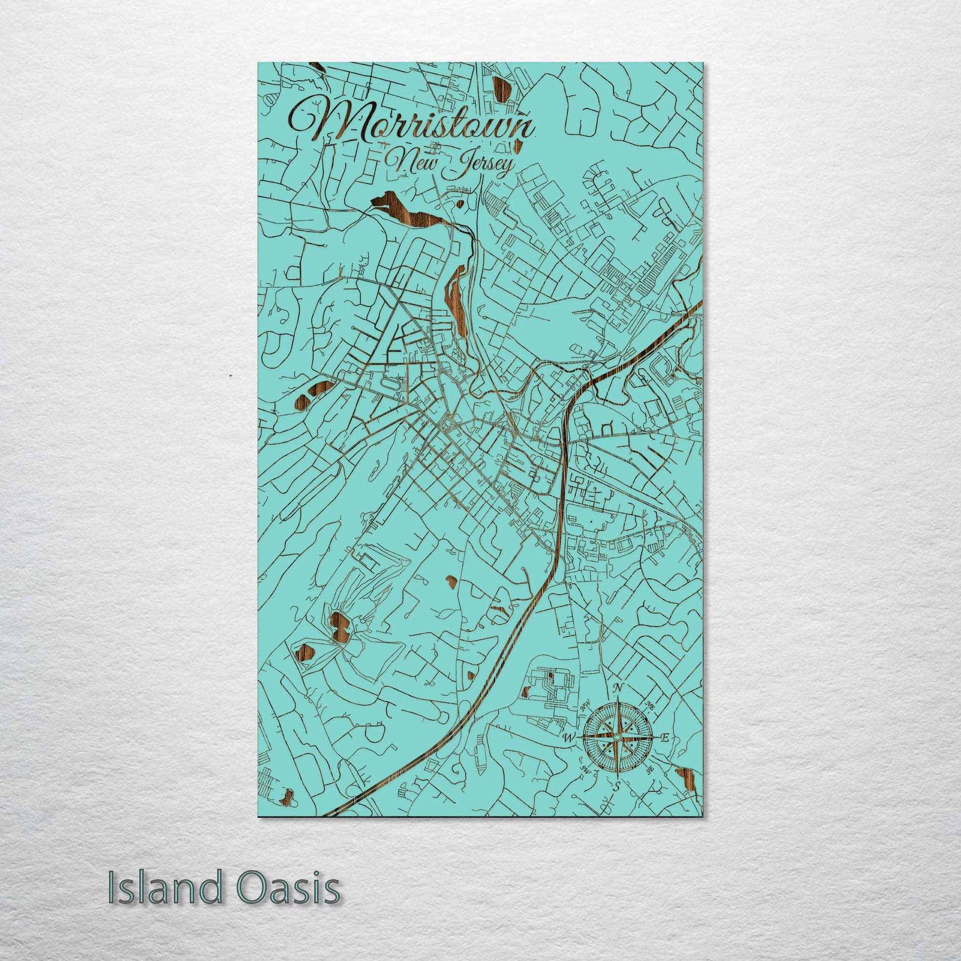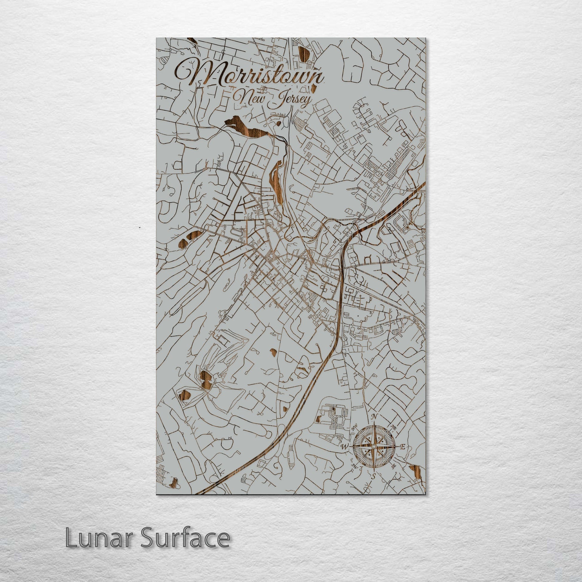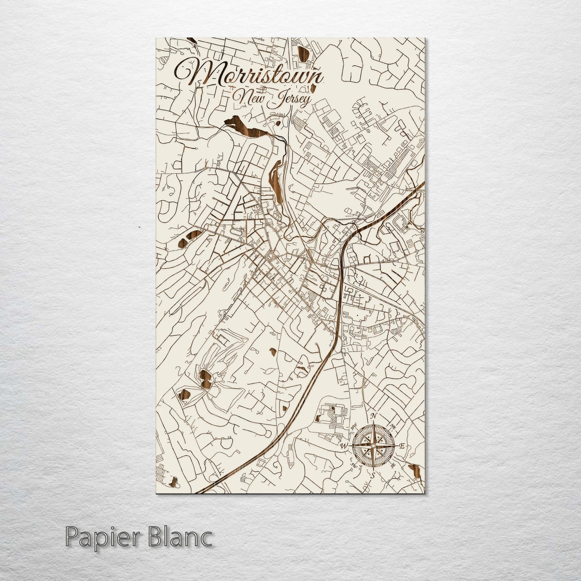 This is a street map of Morristown, NJ designed by Fire & Pine artists.