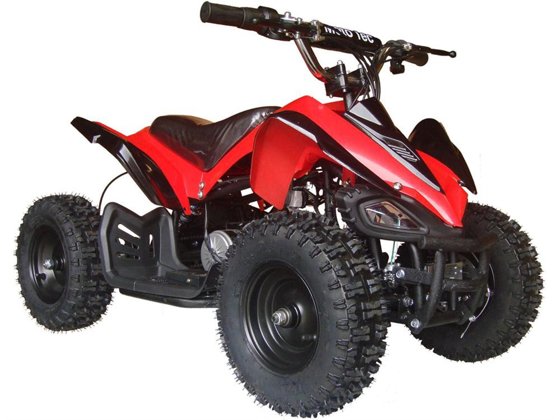 The MotoTec 24v Mini Quad v2 is the ultimate kids atv! Great for driveway and backyard fun, cruise over bumps and speed through dirt trails with ease. Comes standard with front & rear suspension, front & rear brakes and large 13-inch knobby pneumatic tires.
