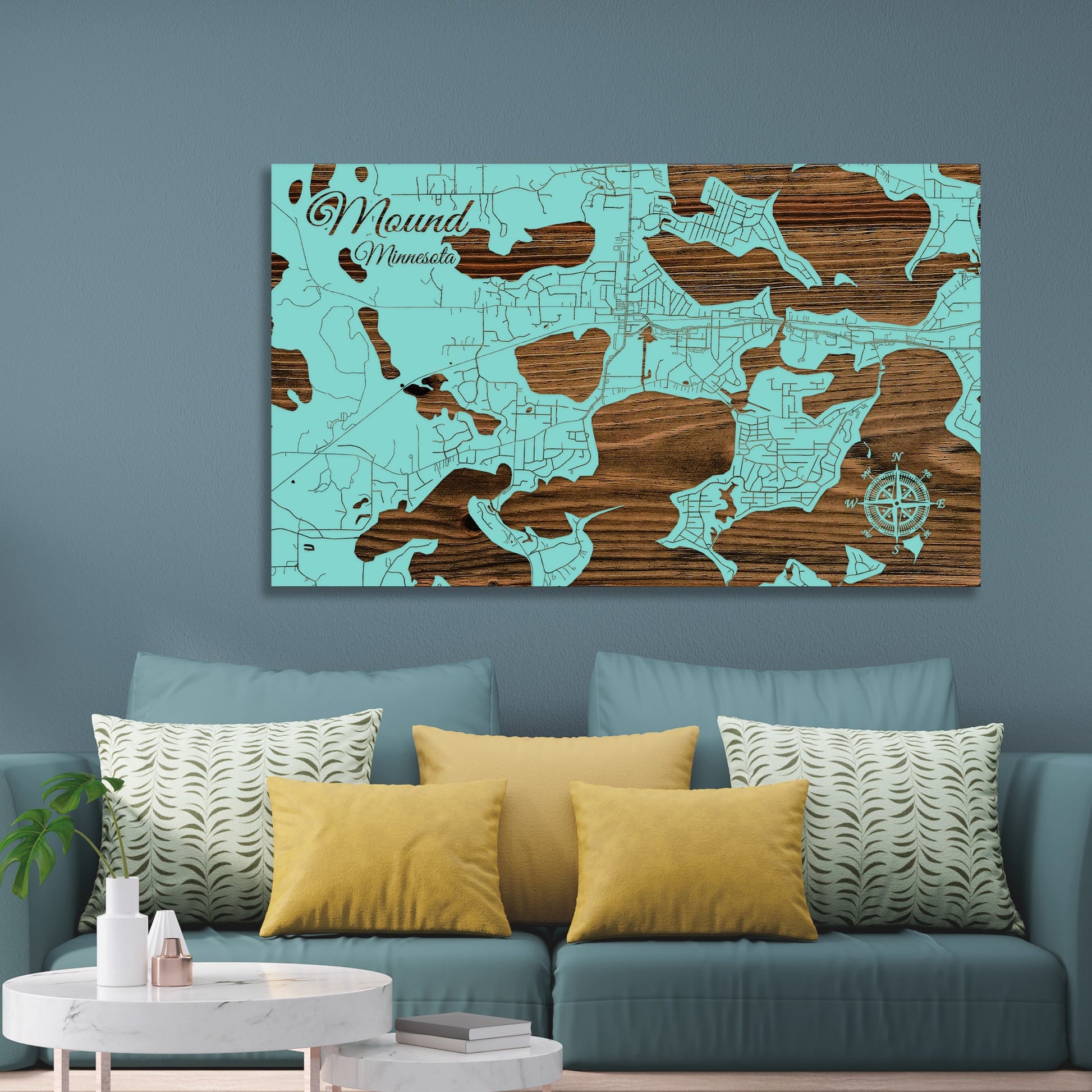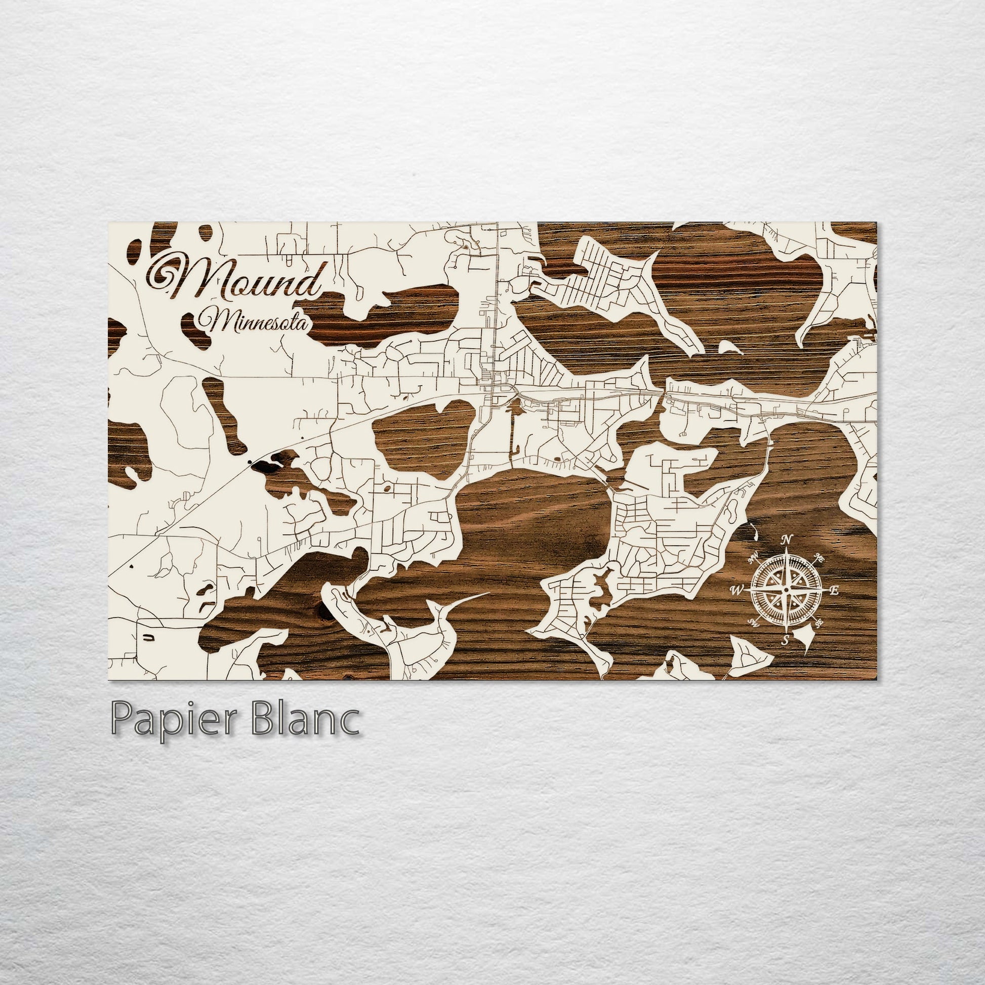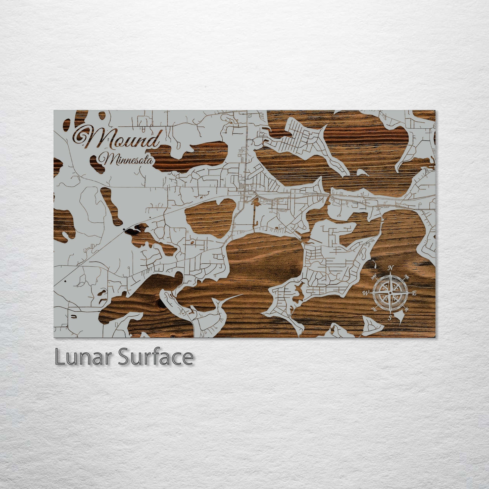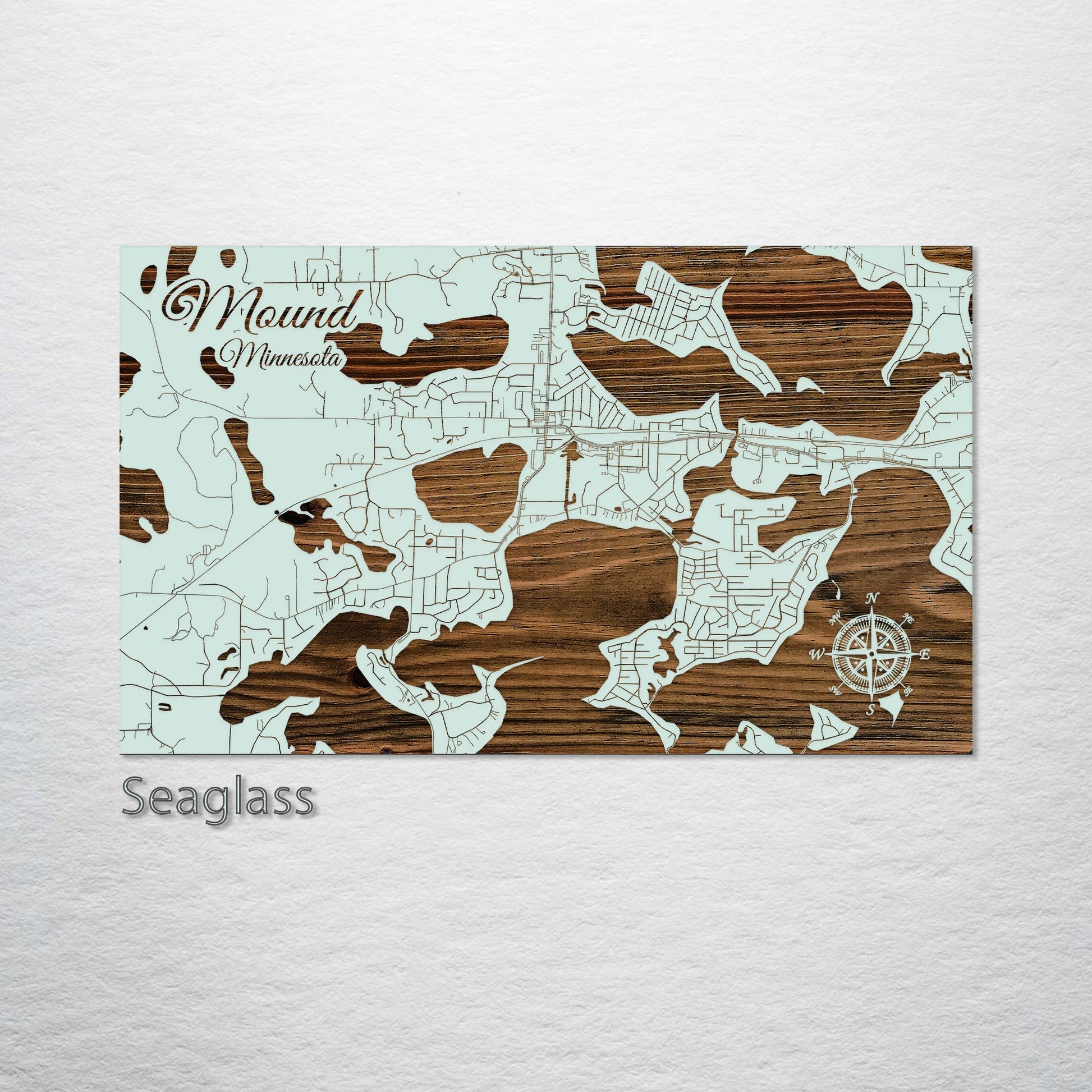 This is a street map of Mound, MN designed by Fire & Pine artists.