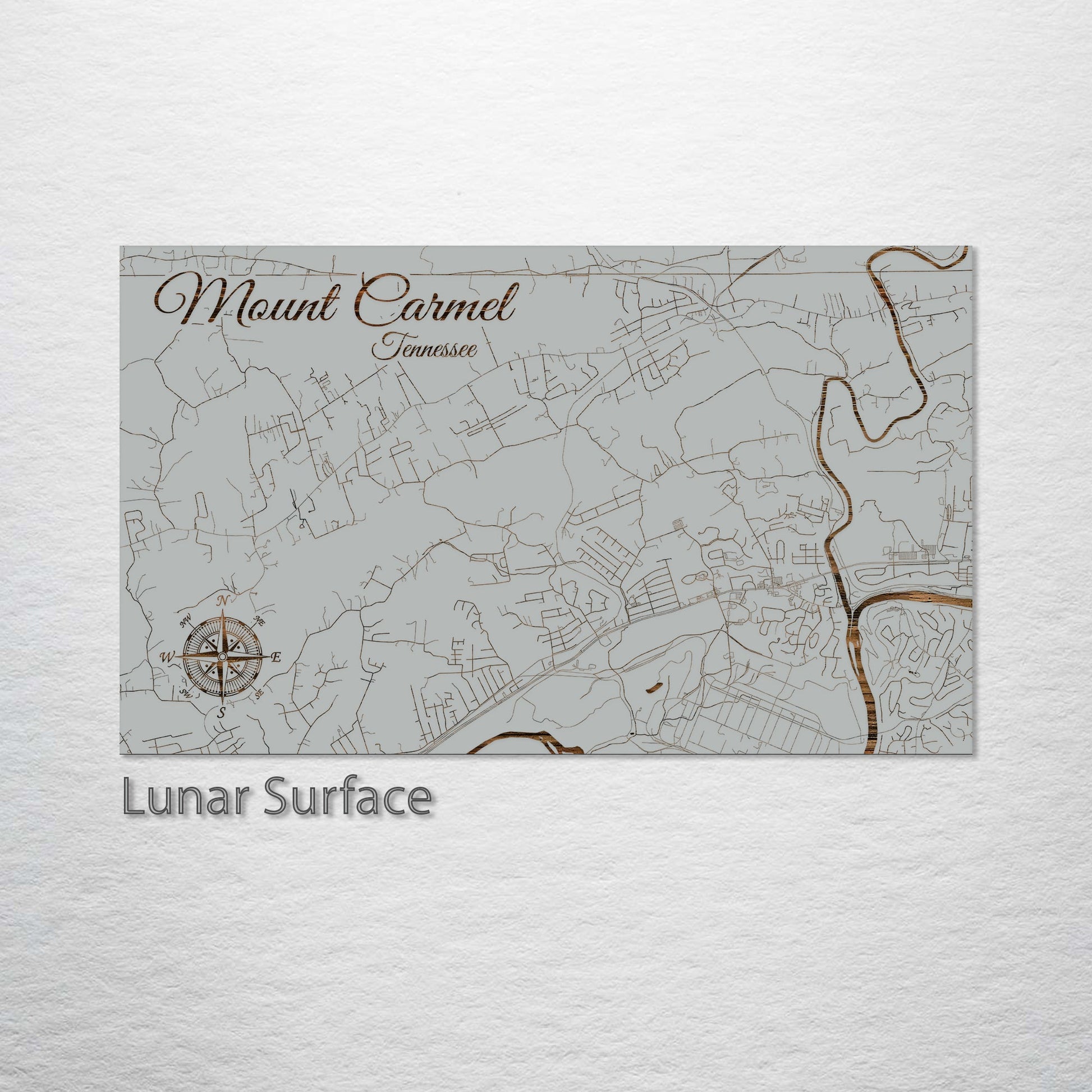 This is a street map of Mount Carmel, TN designed by Fire & Pine artists.