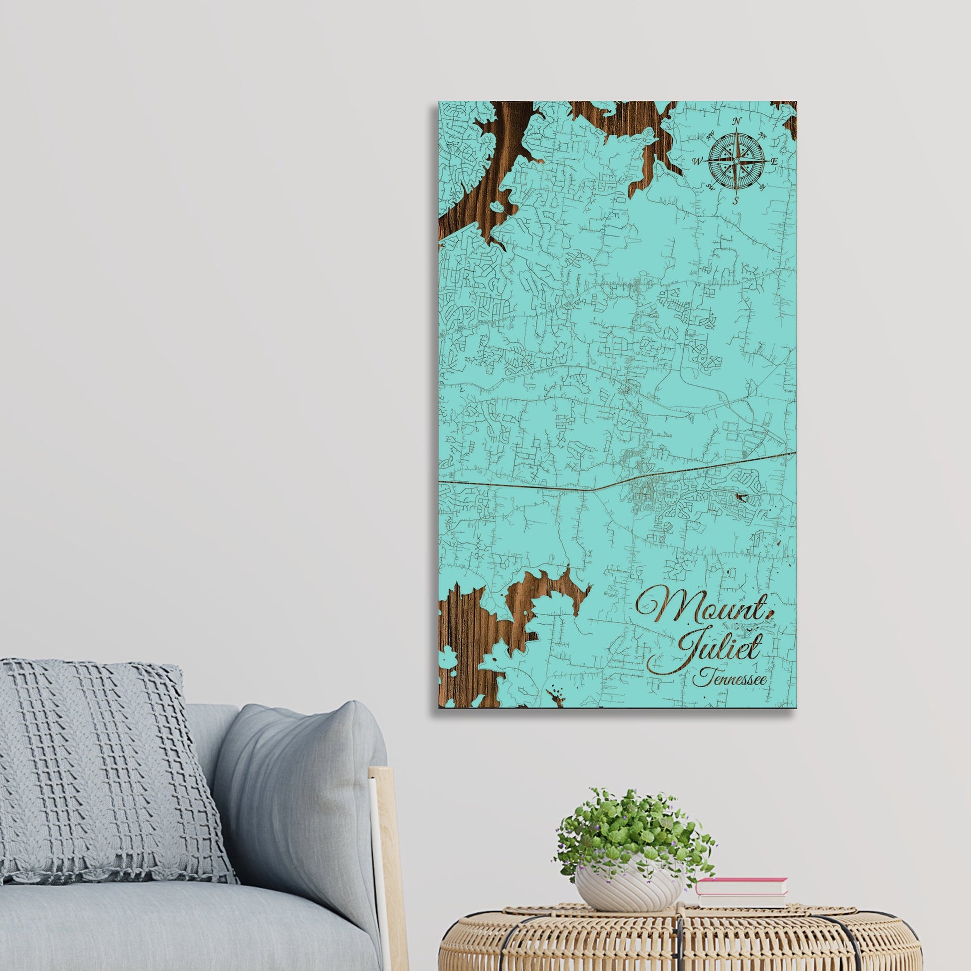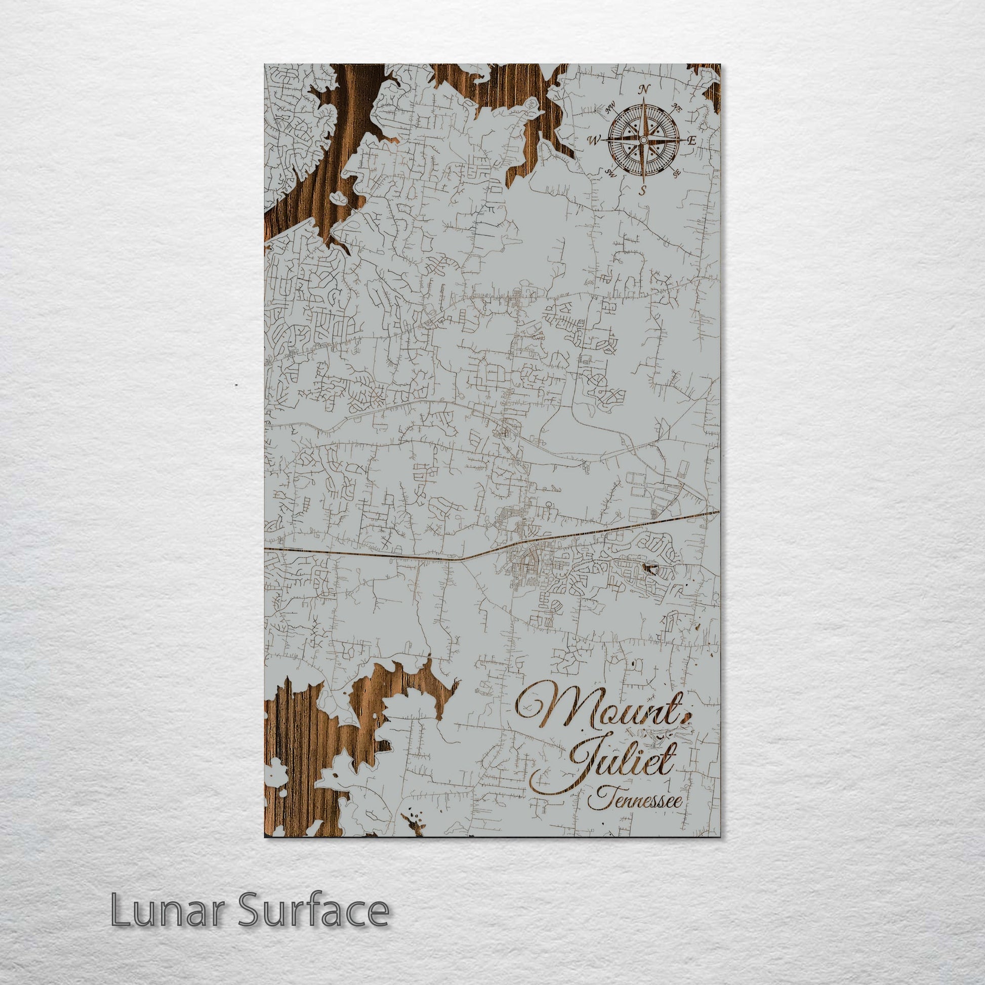 This is a street map of Mount Juliet, TN designed by Fire & Pine artists.