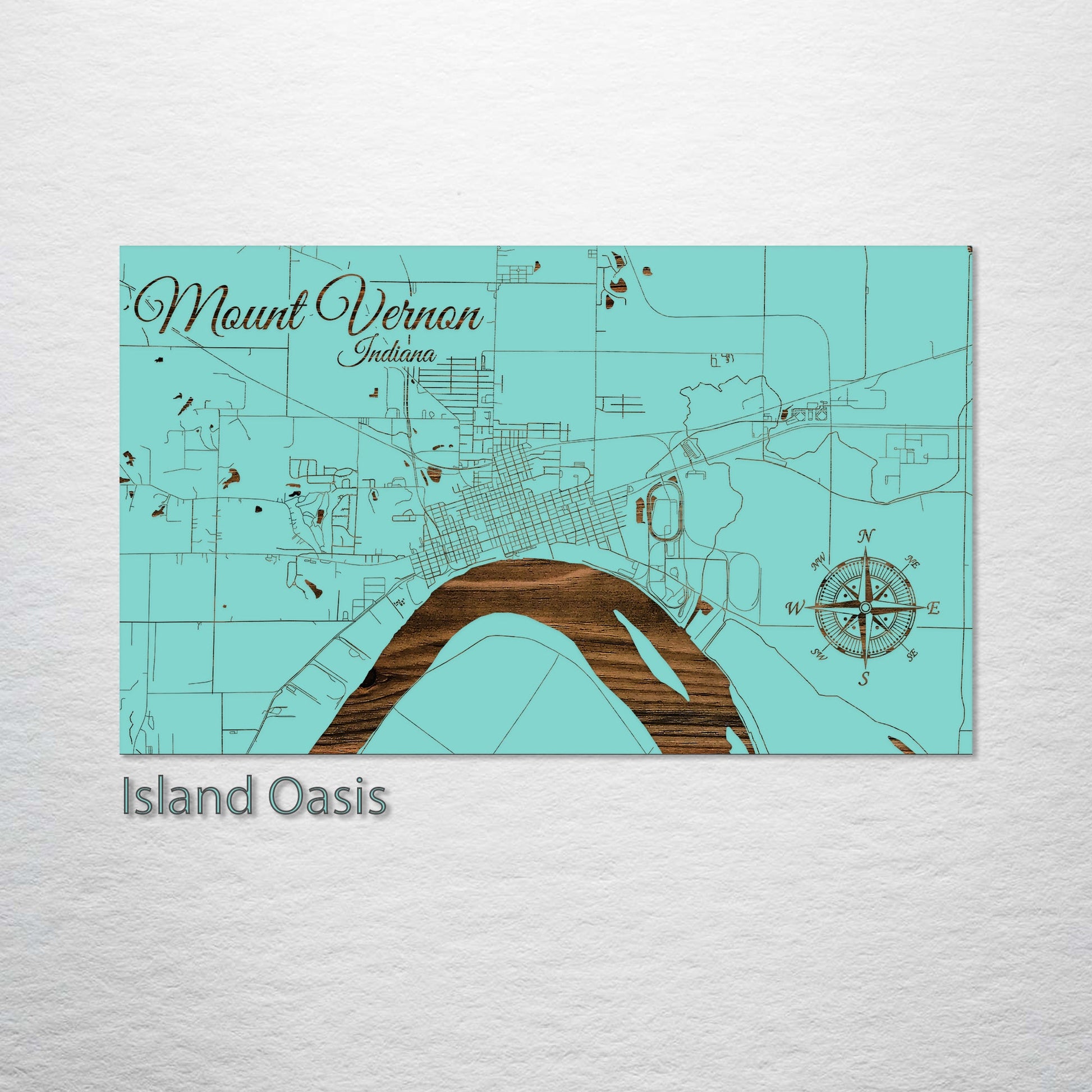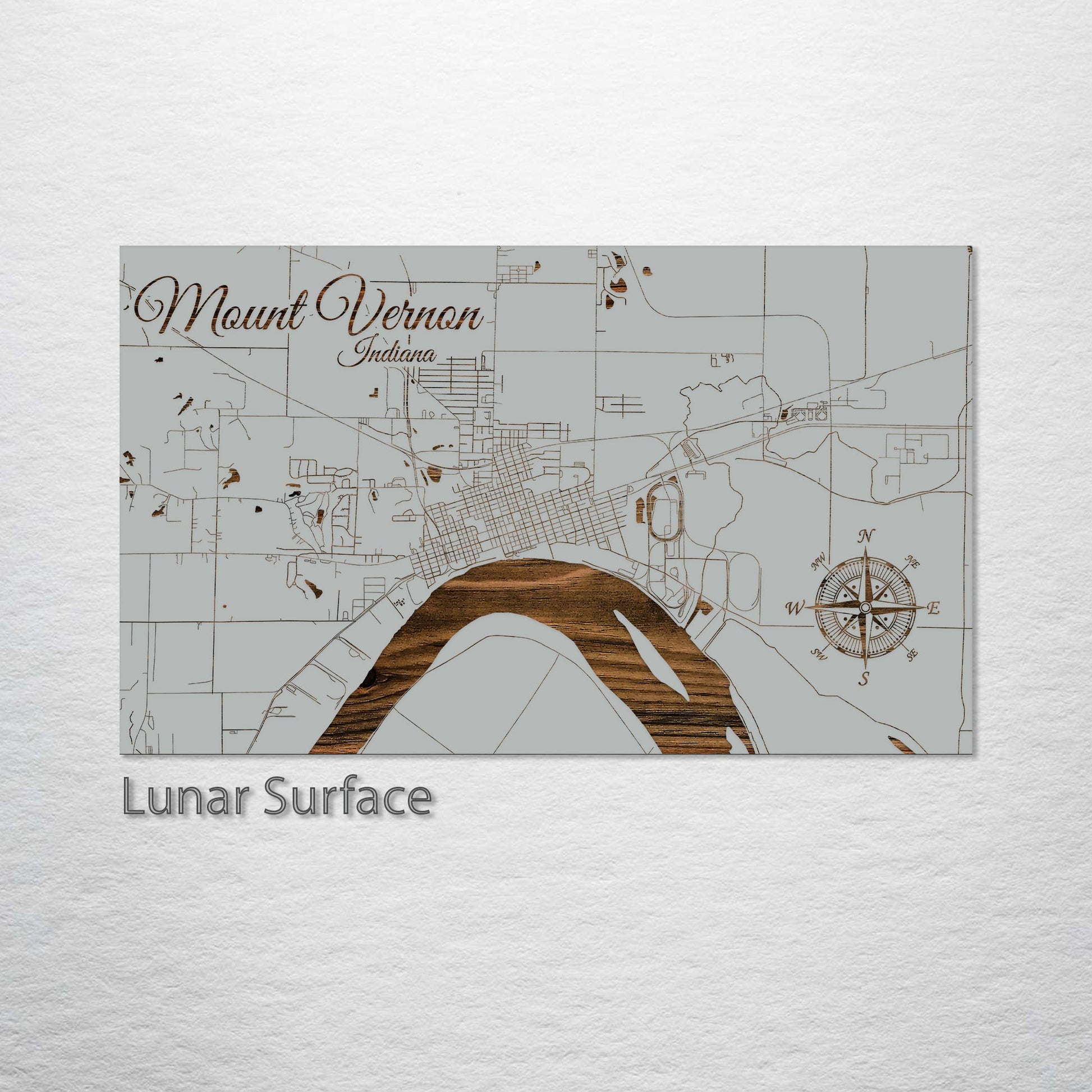 Ideal Gift for Small Town Map Aficionados: The Mount Vernon, Indiana, wood-engraved street map is a notable addition to any art collection. Expertly crafted from high-quality pine wood, this piece elegantly captures the streets of Mount Vernon, offering a standout artistic display. It's perfect for those who appreciate the charm of small-town maps, the intricacies of geographic layouts, and the unique character of Mount Vernon.