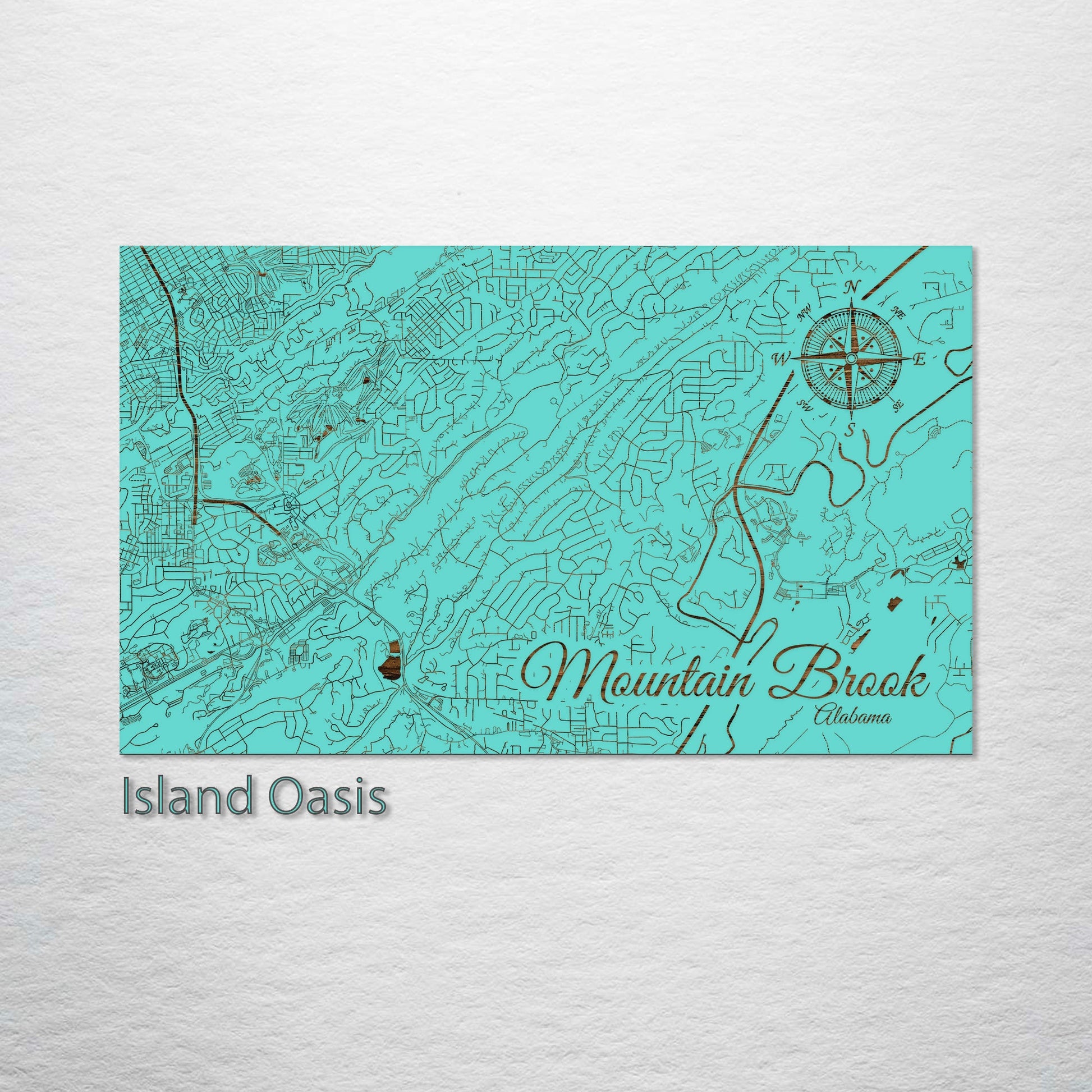 This is a street map of Mountain Brook, AL designed by Fire & Pine artists.