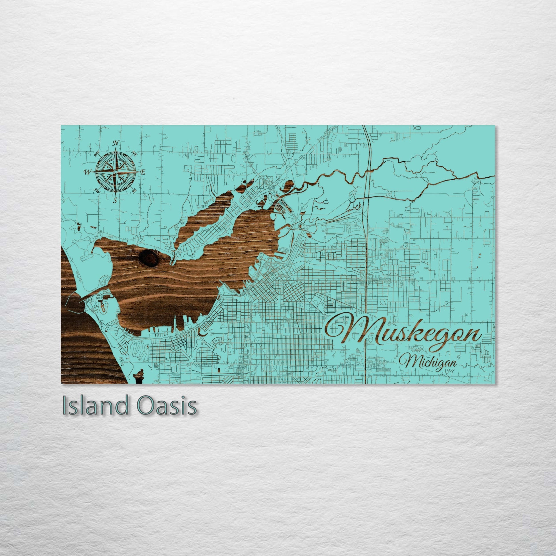 This is a street map of Muskegon, MI designed by Fire & Pine artists.