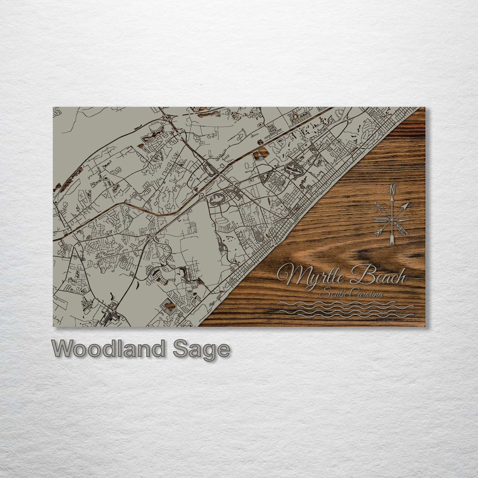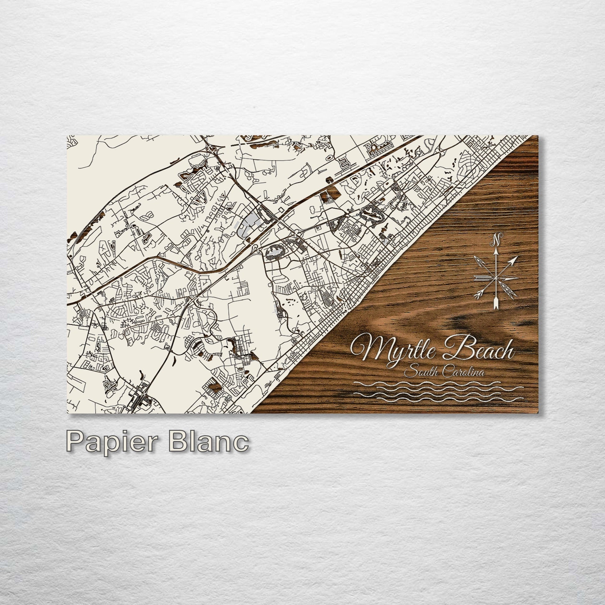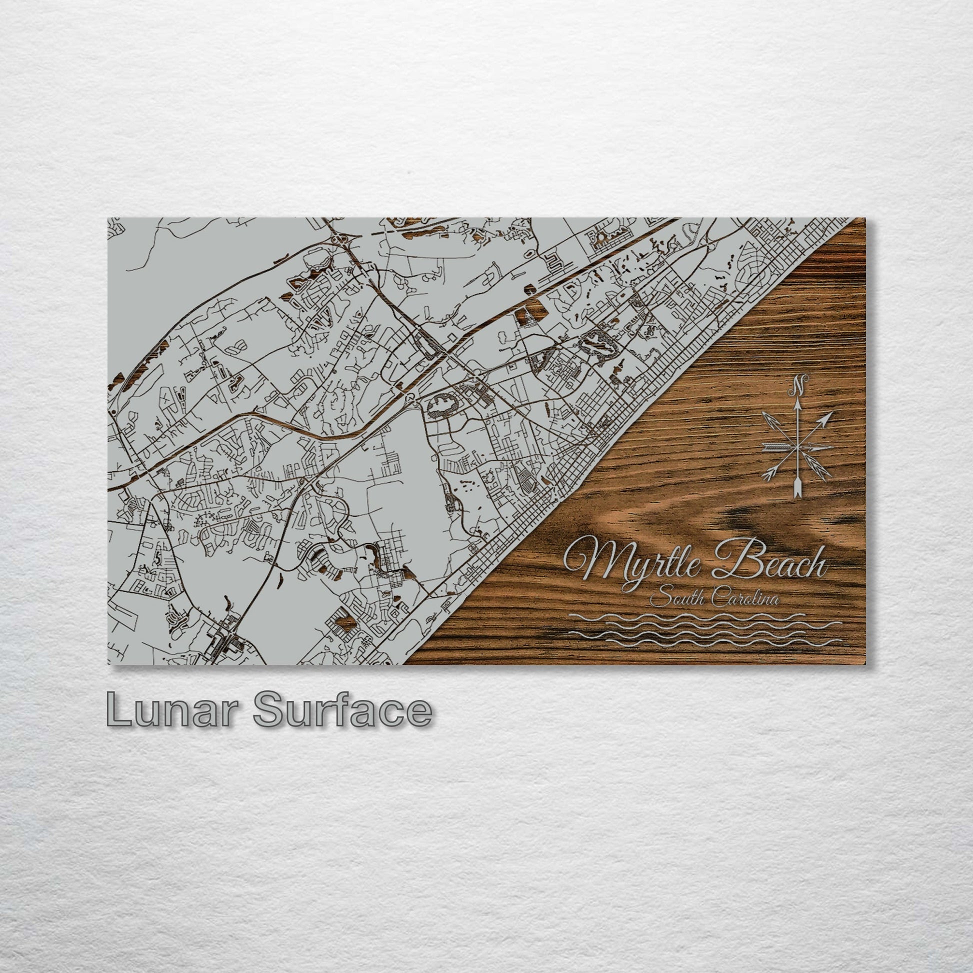 Exquisite Gift for Lovers of Cartographic Art: This wood-engraved Myrtle Beach, South Carolina street map is a splendid addition to any art enthusiast's collection. Finely crafted from the highest quality pine wood, its intricate street patterns are expertly brought to life, presenting a visually captivating piece. It's perfect for those with an affinity for geographic layouts and the aesthetic depiction of street maps.