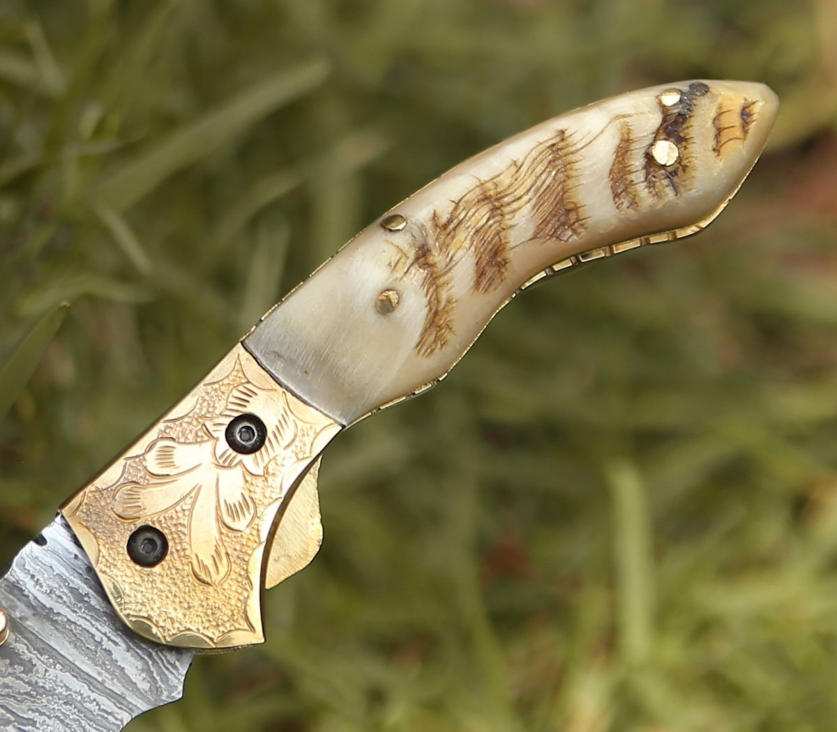The elegant handle is made using real ram horn scales. It has been sealed to prevent cracking or drying and preserve the handle for lifetime comes with Under lock folding mechanism.