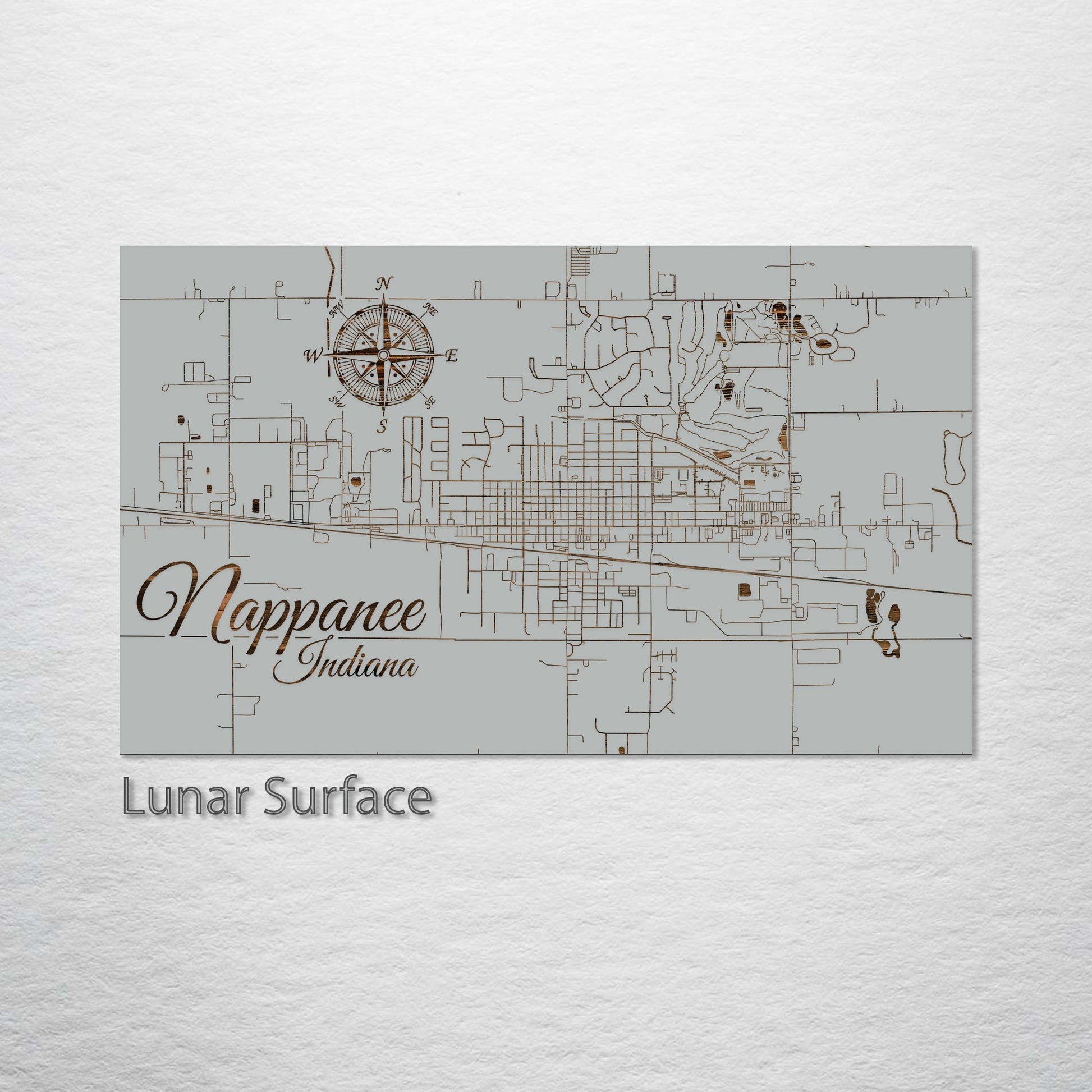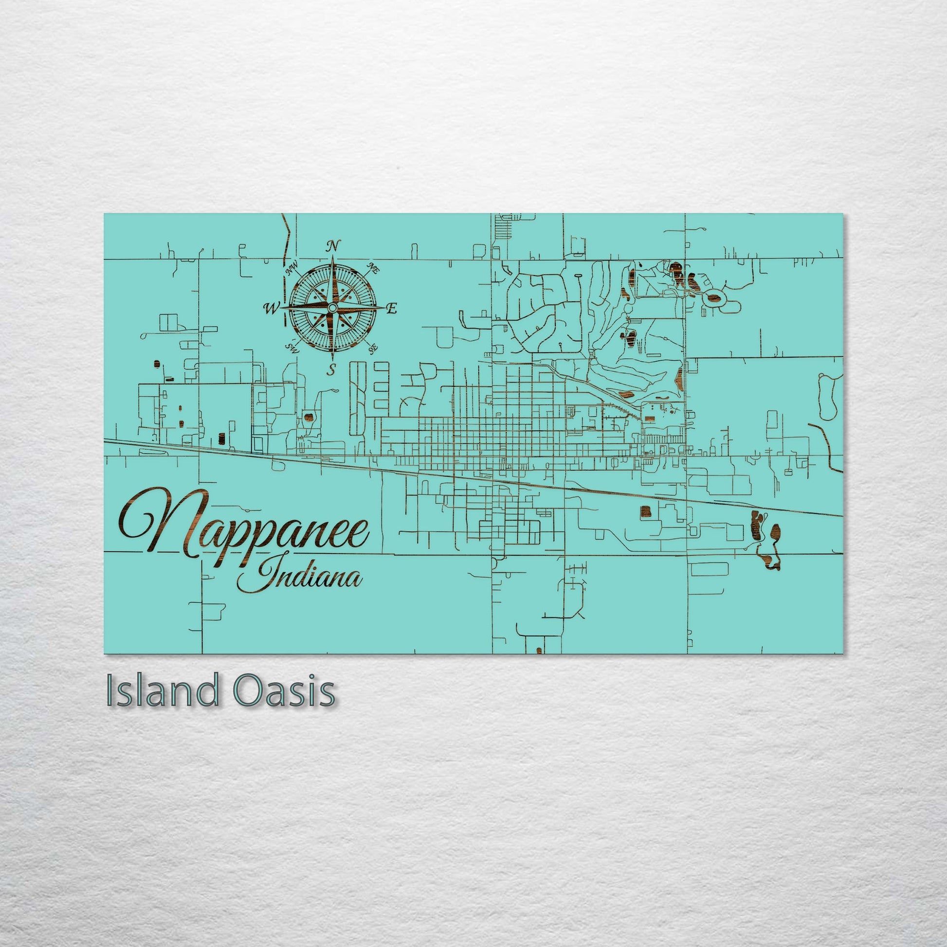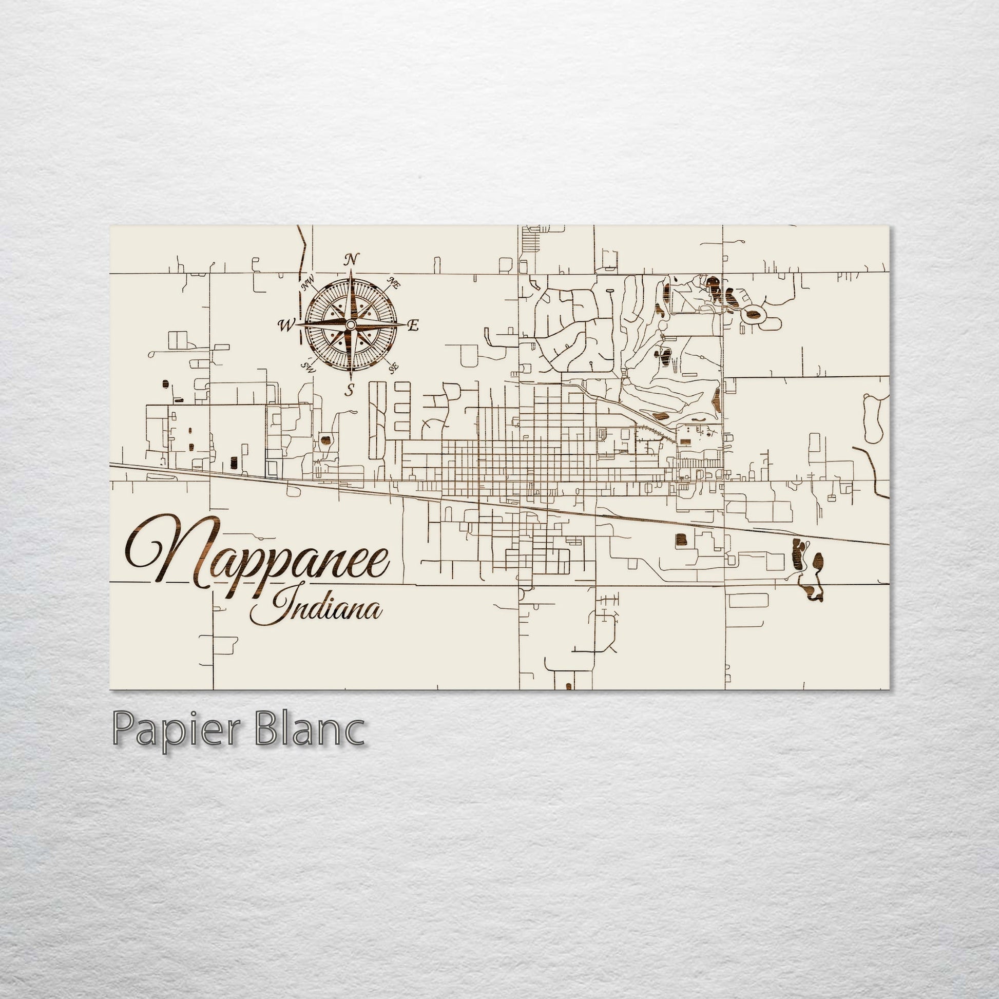 Perfect Gift for Small Town Map Collectors: Nappanee, Indiana, wood-engraved street map is a unique addition to any art enthusiast's collection. Expertly crafted from superior pine wood, this artwork beautifully captures the charming streets of Nappanee, presenting a visually impressive piece. It's ideal for those who have a fondness for small town maps, the art of geographic layouts, and the quaint allure of Nappanee.
