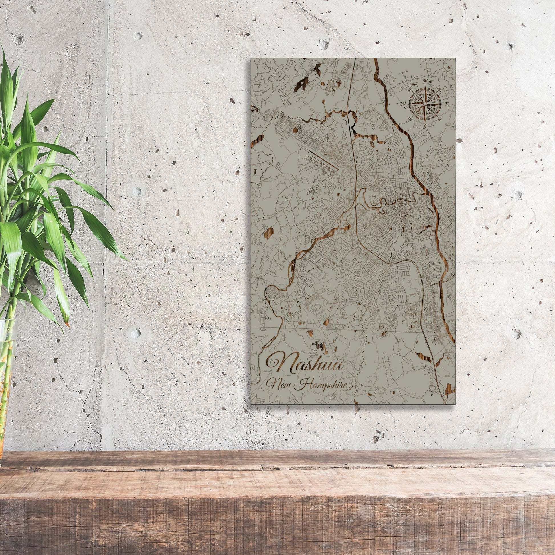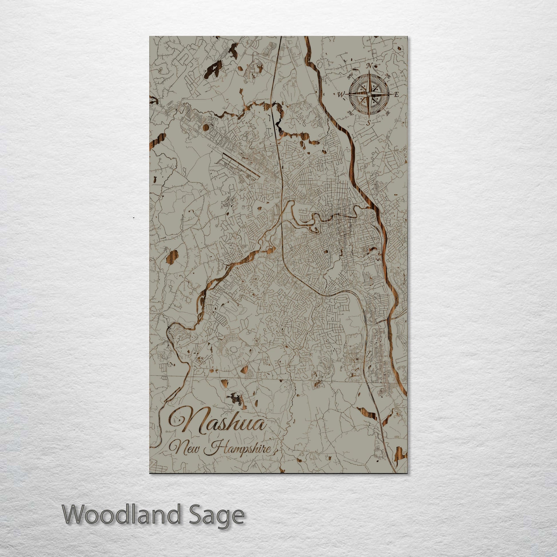 This is a street map of Nashua, NH designed by Fire & Pine artists.