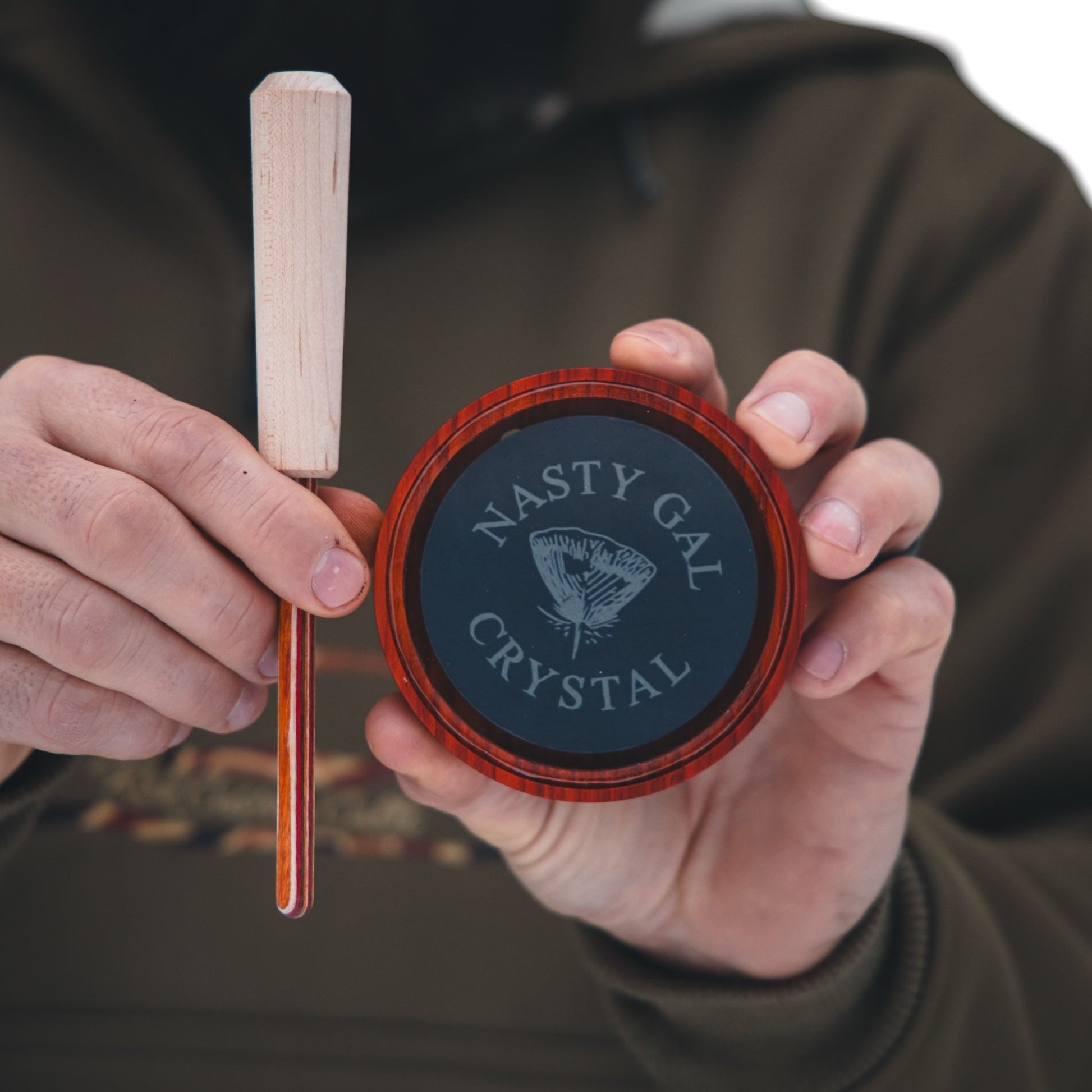 The Nasty Gal Crystal features a premium Paducah pot paired with a slate sound board and a high-quality crystal surface. This carefully engineered combination produces sharp, high front-end yelps that seamlessly roll into a deep, raspy backend—capturing the raw, untamed sound of a wild hen.