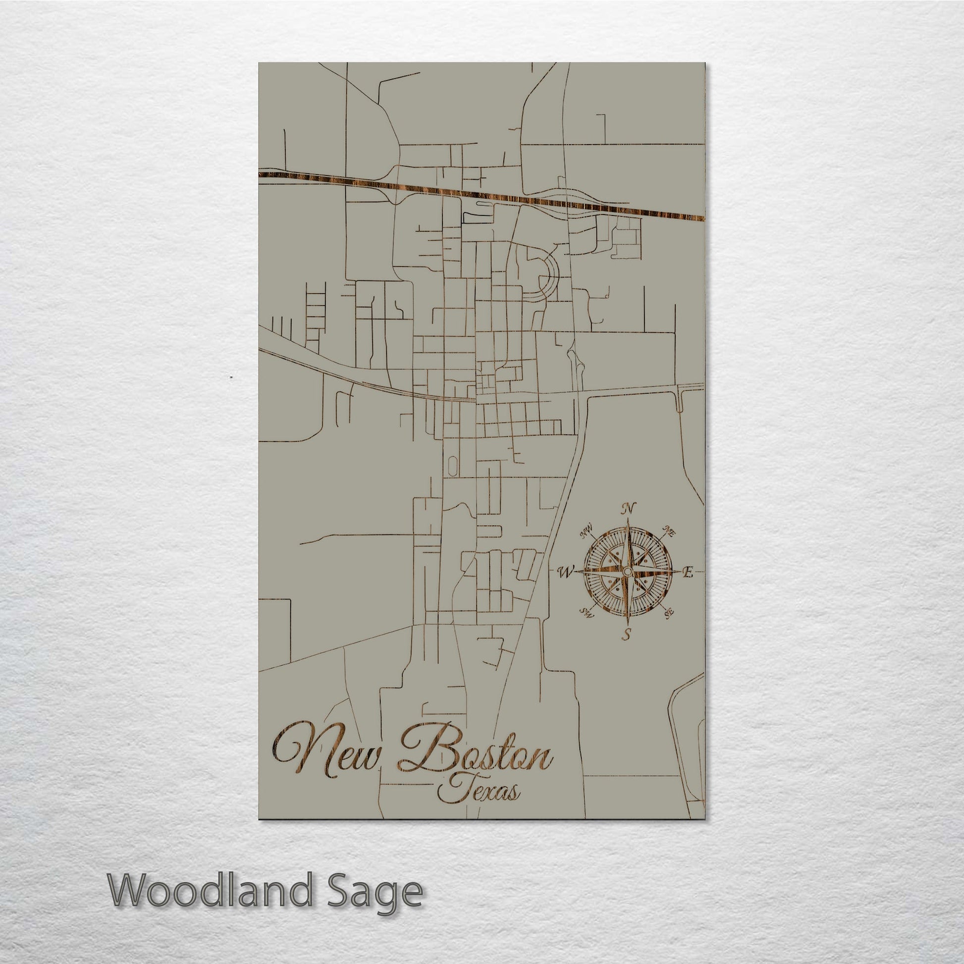 This is a street map of New Boston, TX designed by Fire & Pine artists.