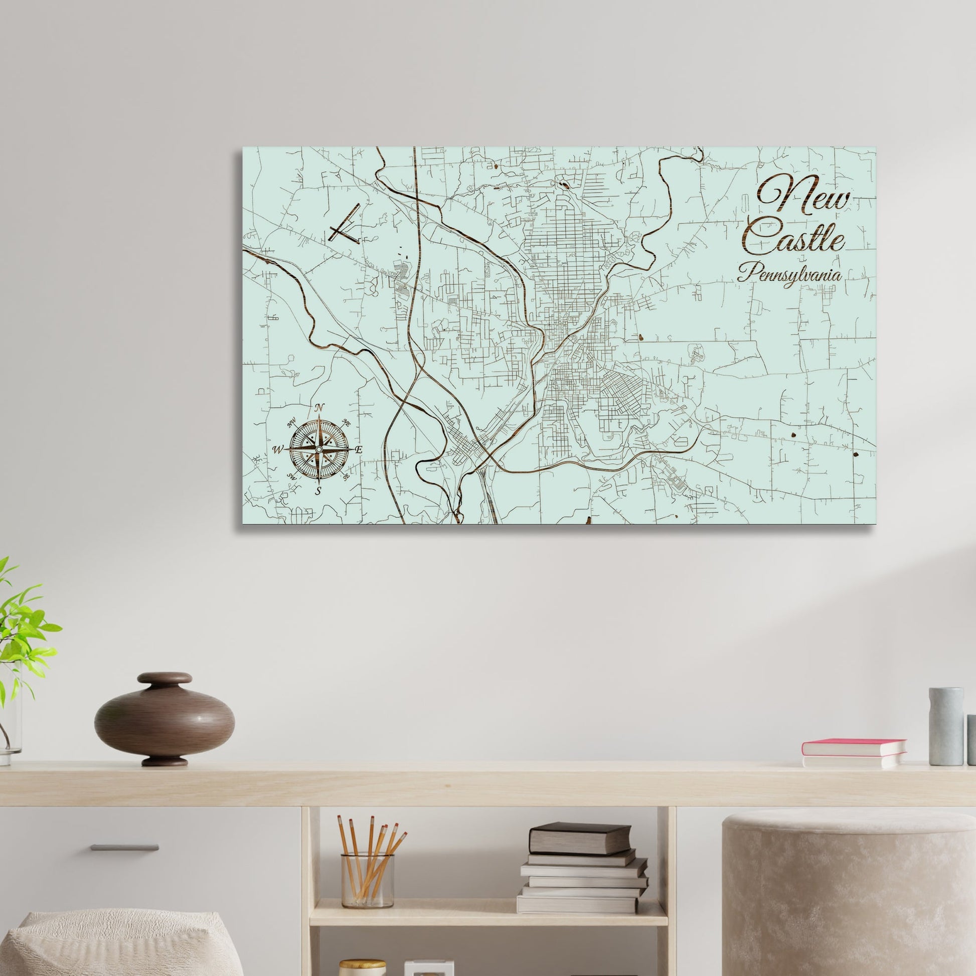 This is a street map of New Castle, PA designed by Fire & Pine artists.