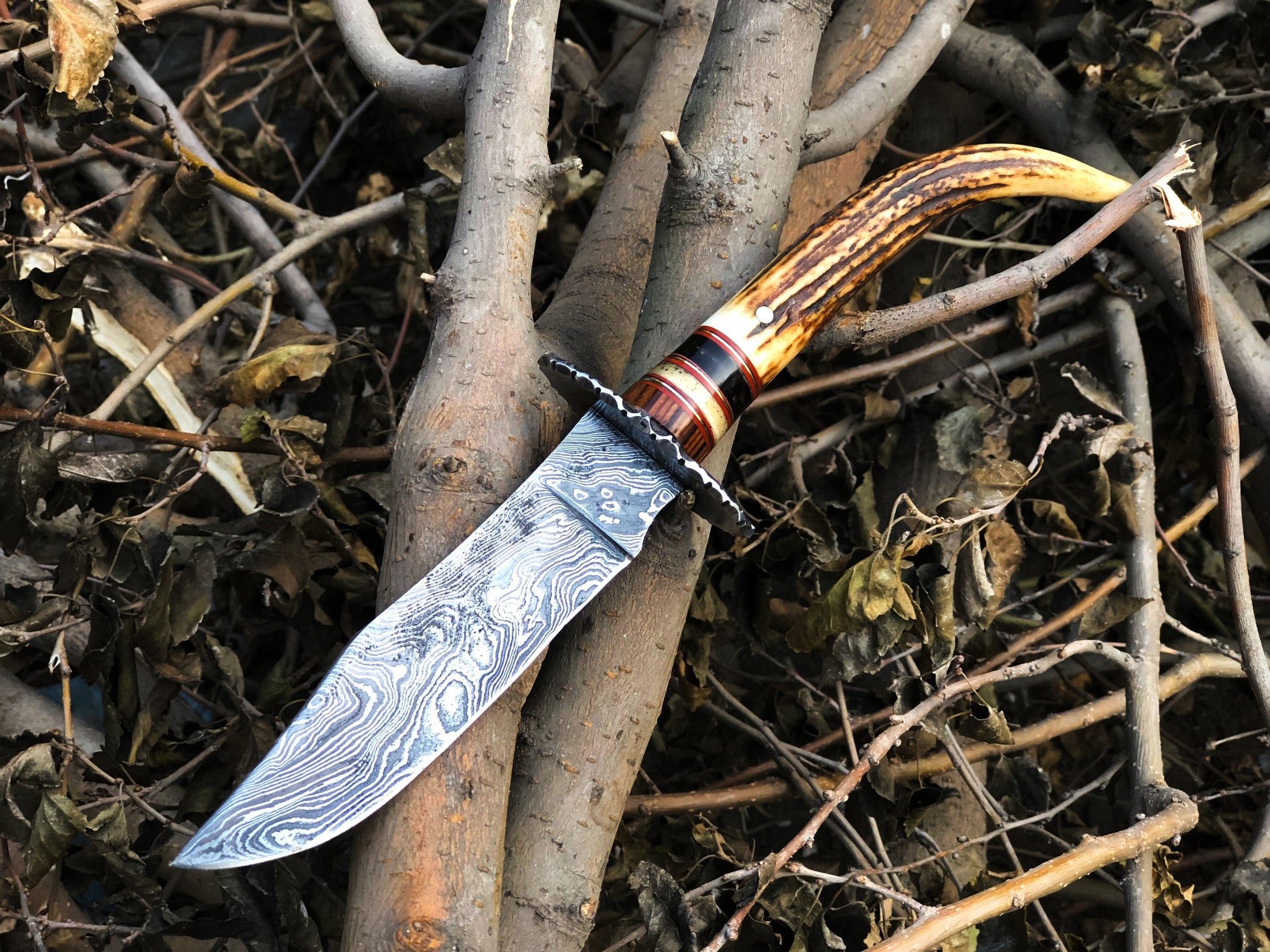 New Custom Handmade Damascus Steel Hunting Skinning Knife