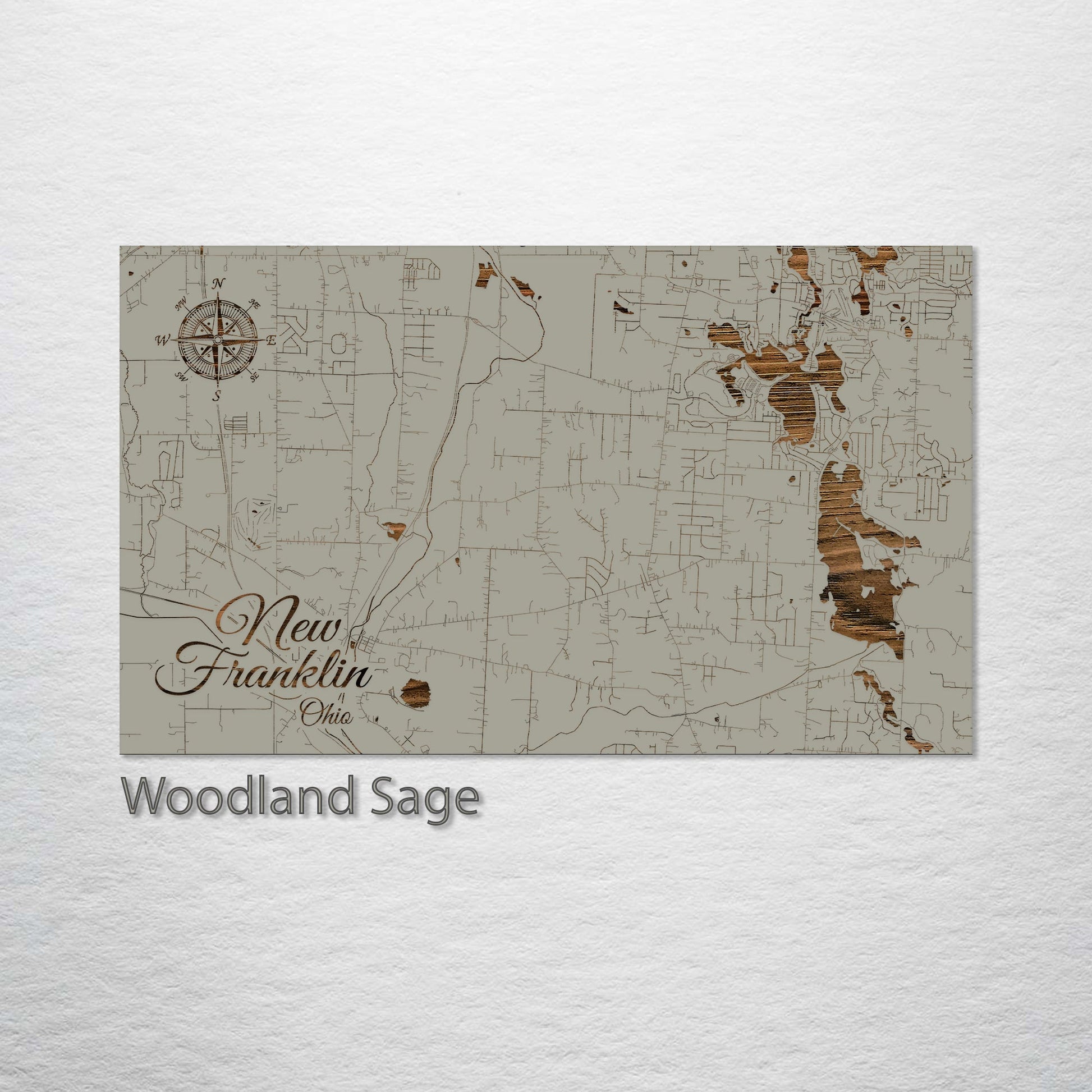This is a street map of New Franklin, OH designed by Fire & Pine artists.