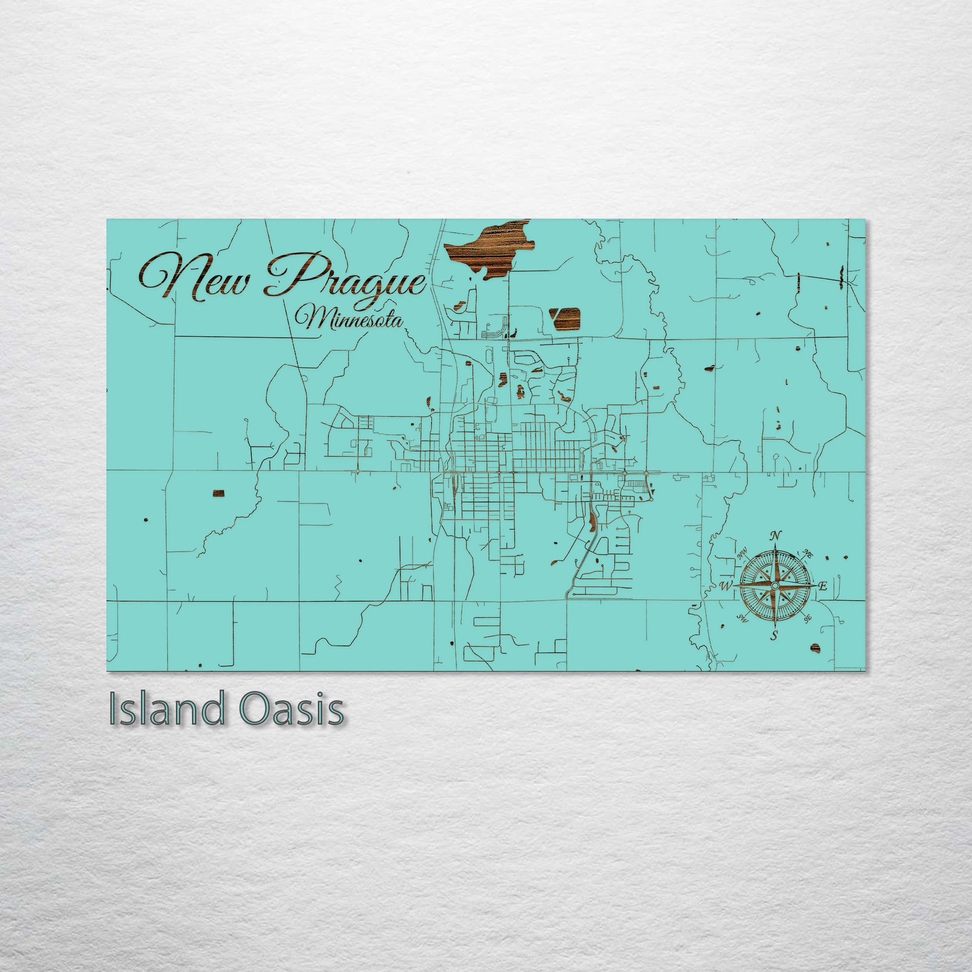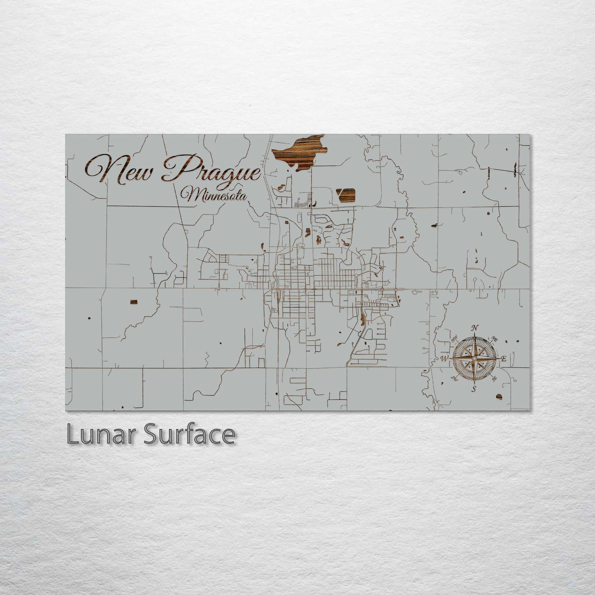 This is a street map of New Prague, MN designed by Fire & Pine artists.