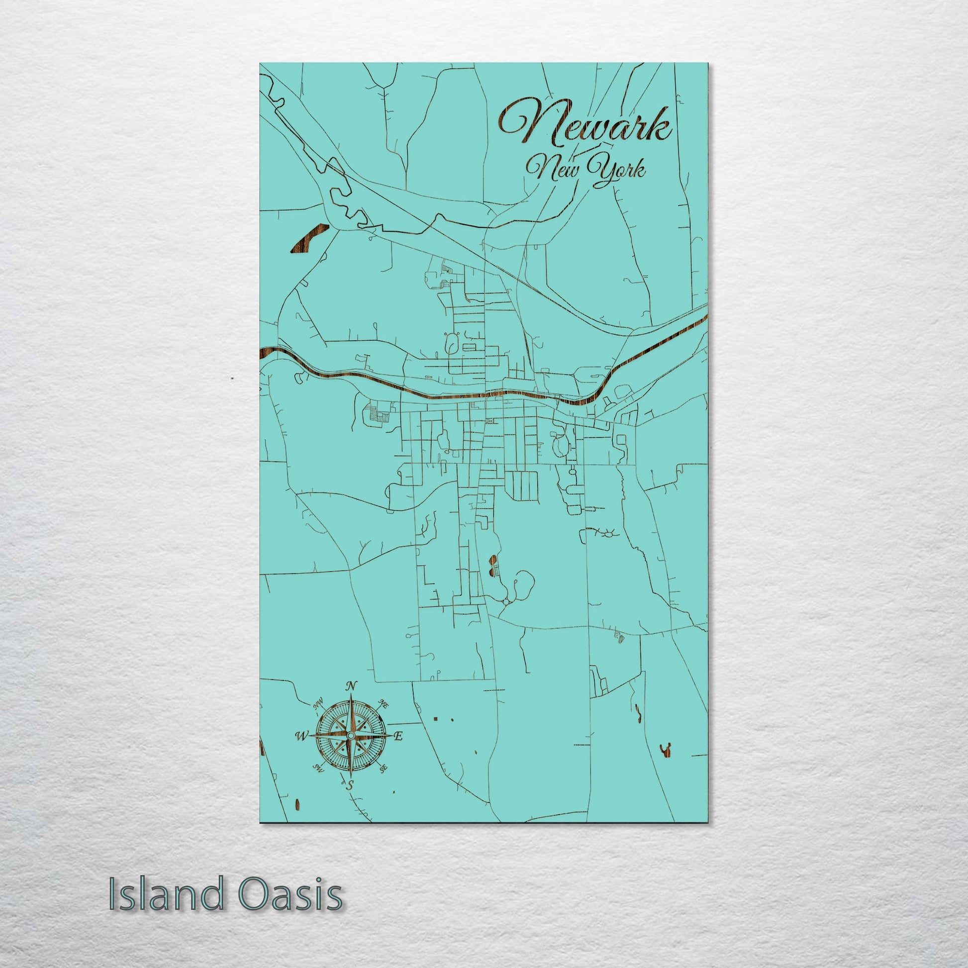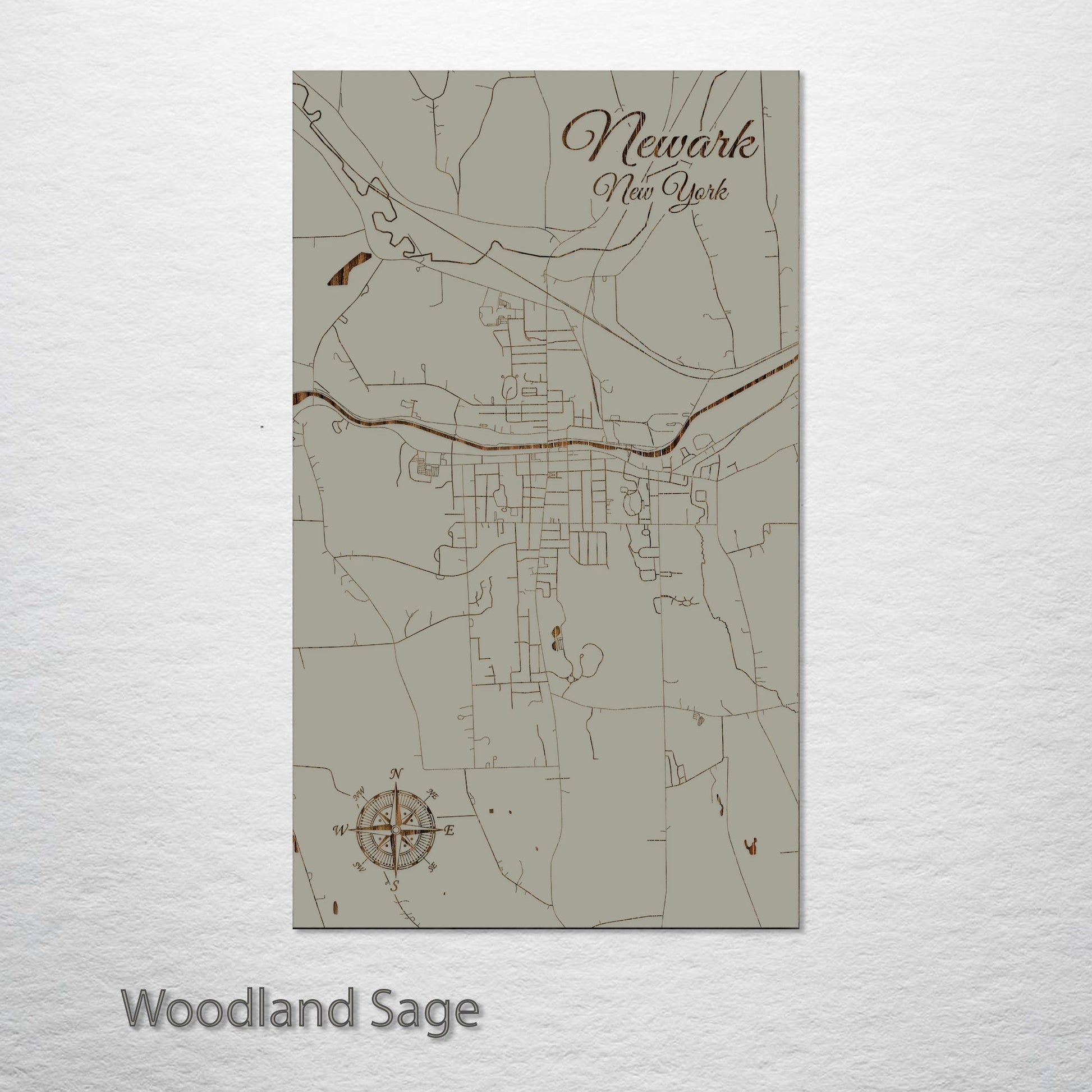 This is a street map of Newark, NY designed by Fire & Pine artists.