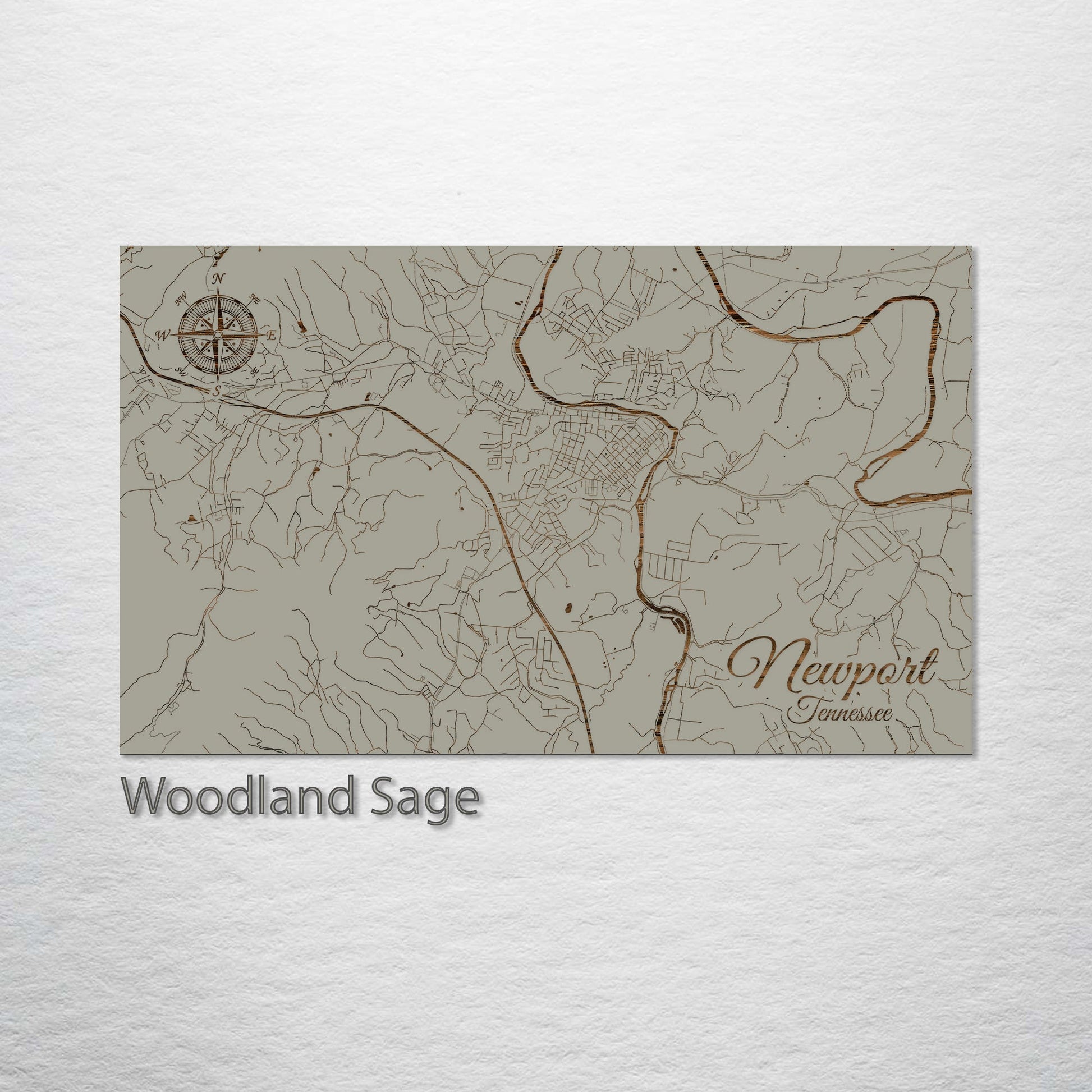 This is a street map of Newport, TN designed by Fire & Pine artists.